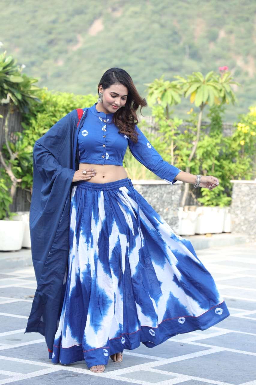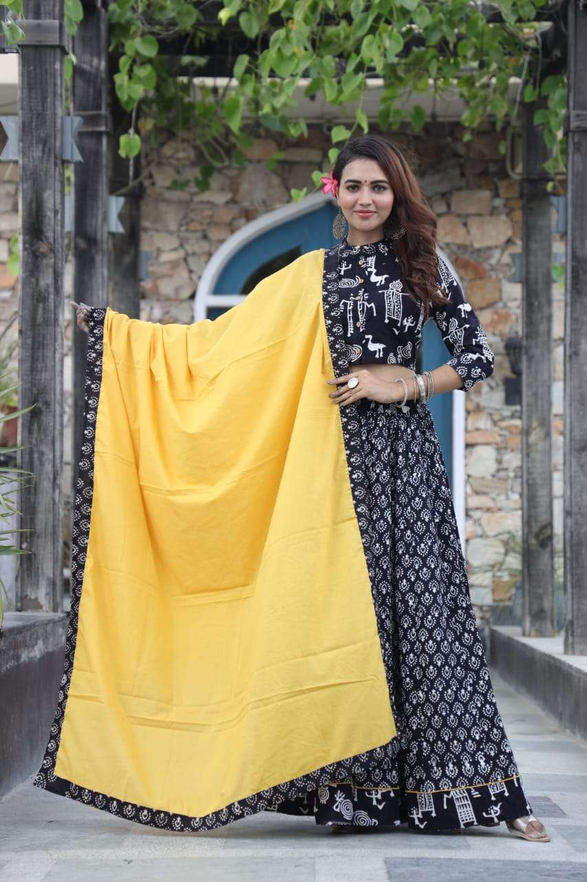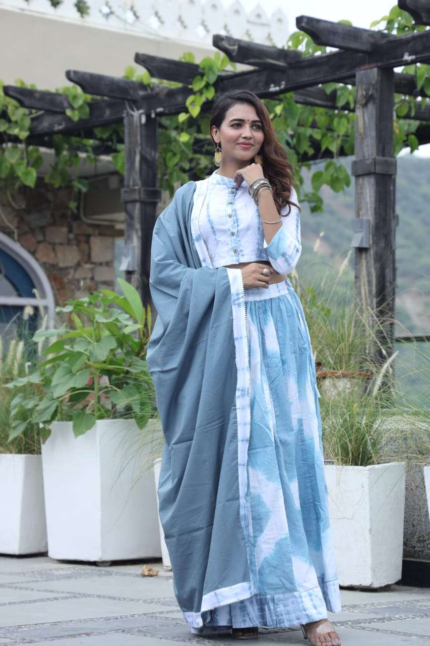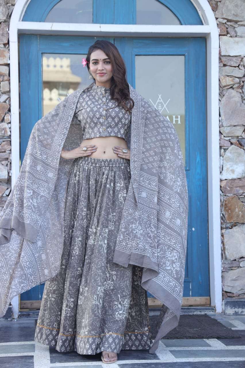 Bagru Hand Block Printed Designer Top & Skirt With Mulmul Dupatta.
