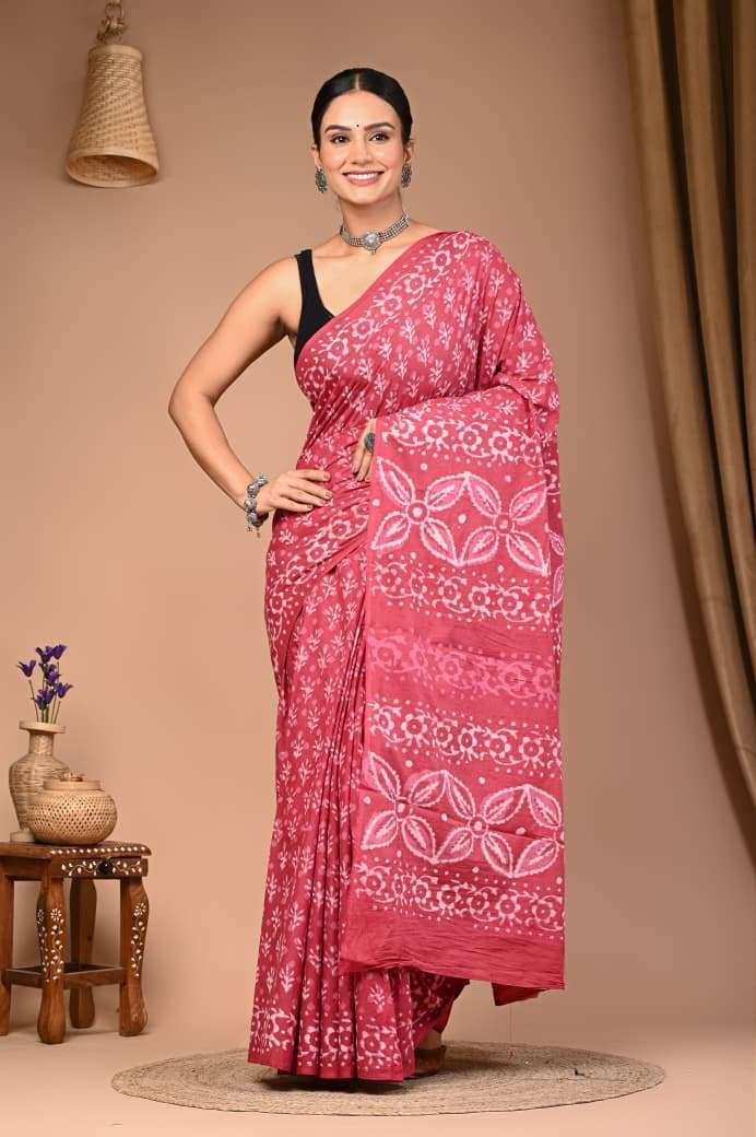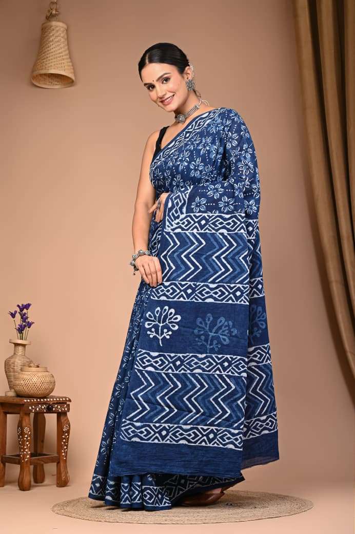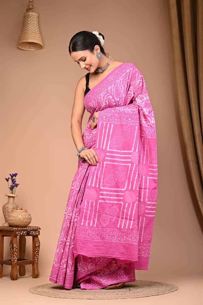Soft pure cotton mulmul Hand block printed saree with blouse.....