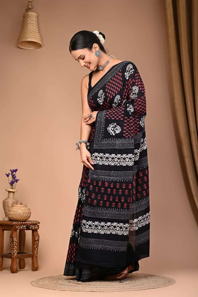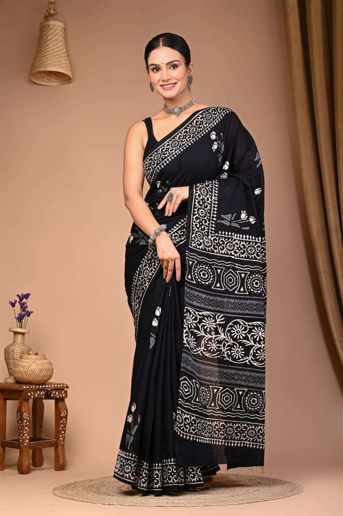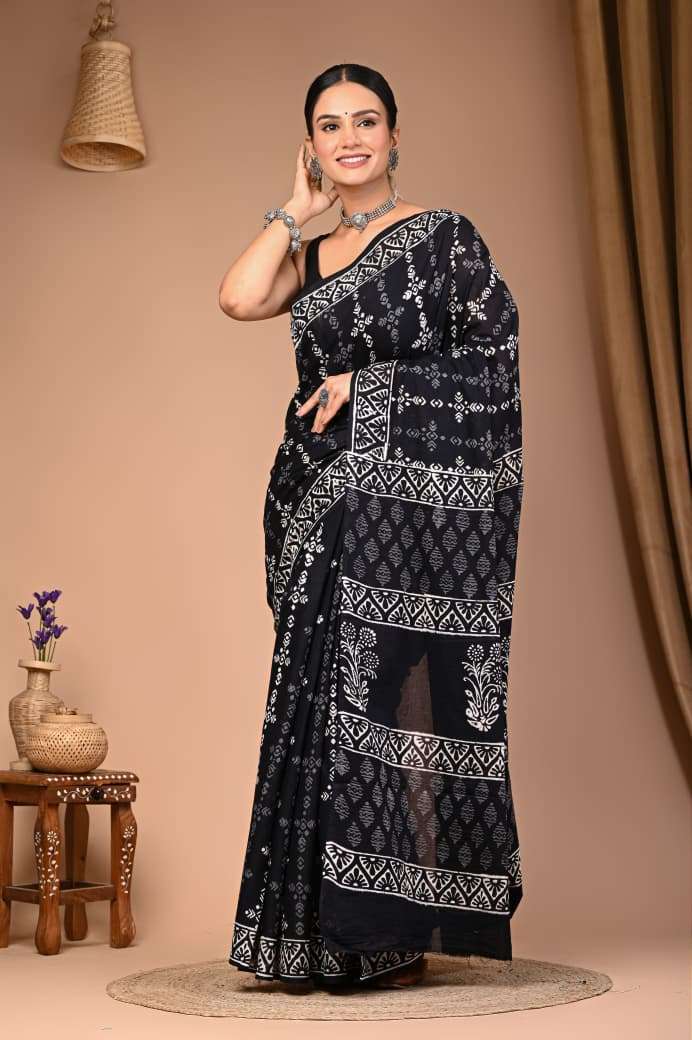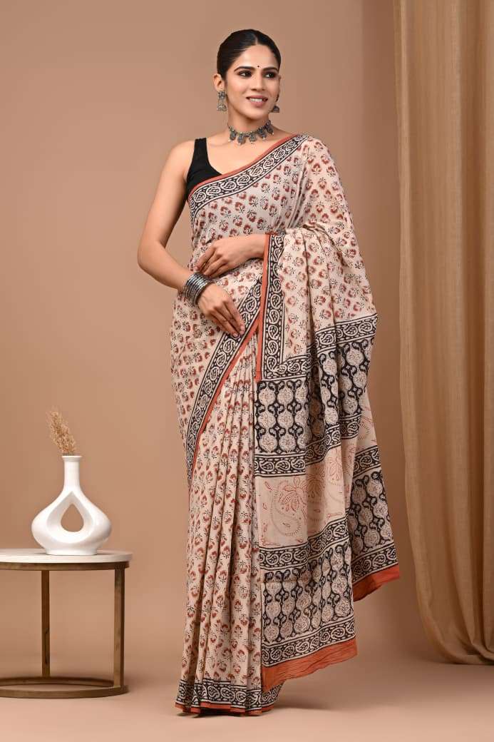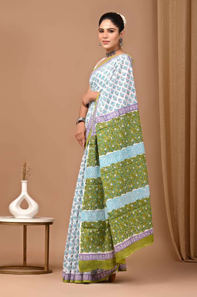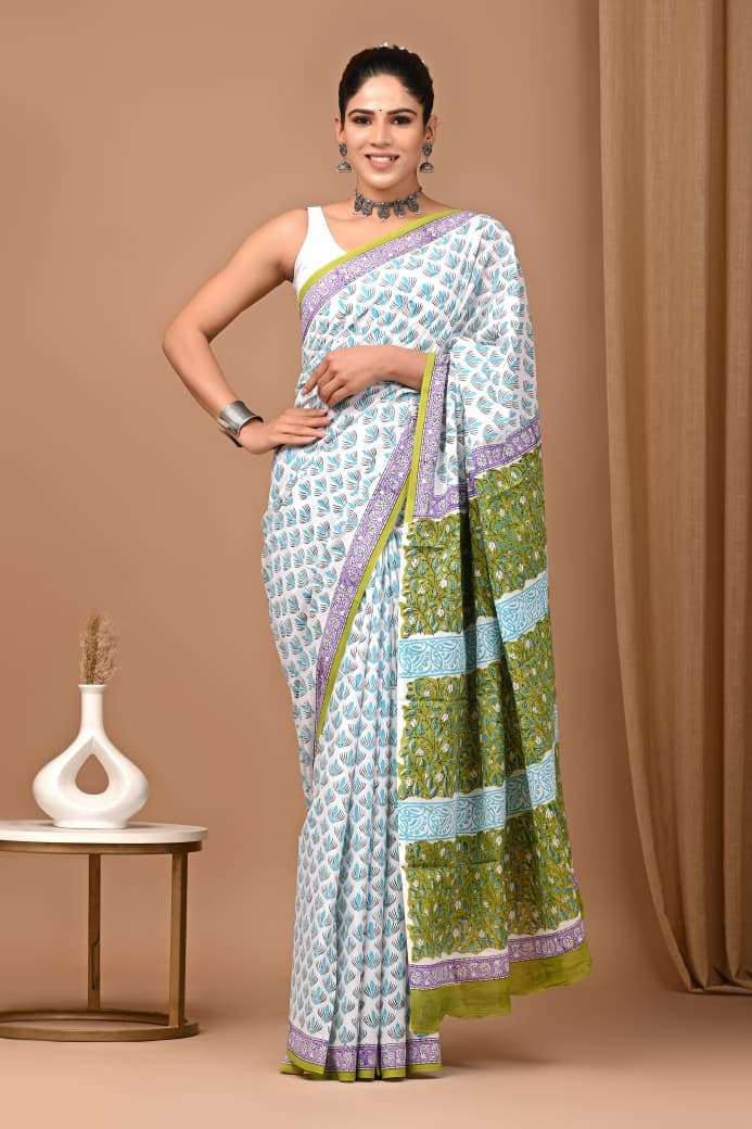 | Catalogue: | Shri Balaji Emporium RF17349 Hand Block Printed Pure Cotton Mulmul Saree |