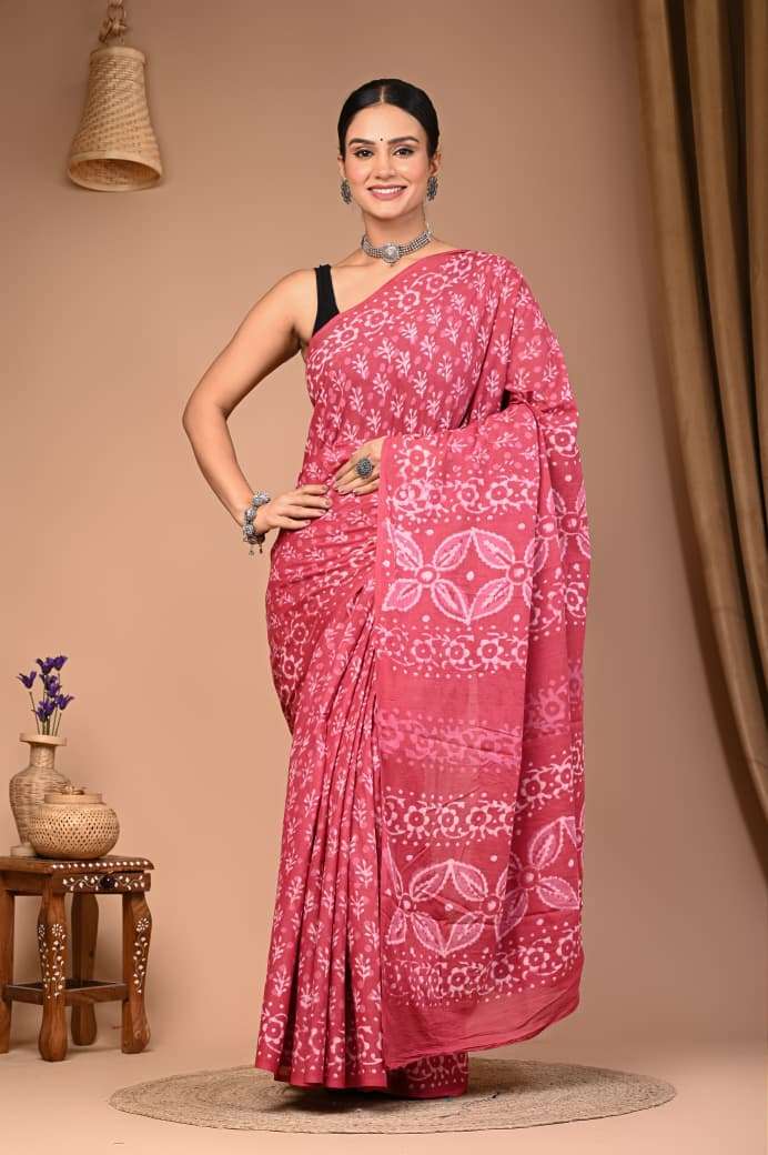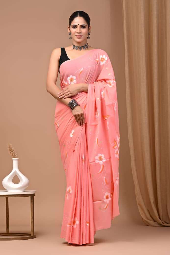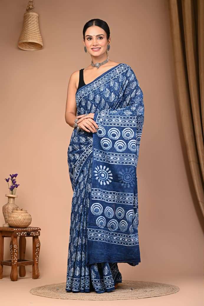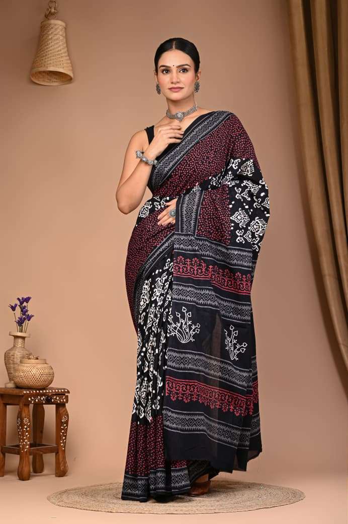 Soft pure cotton mulmul Hand block printed saree with blouse.....
