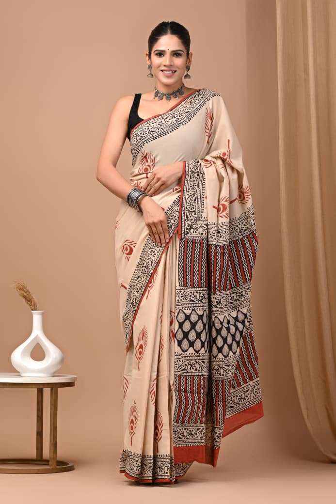 | Catalogue: | Shri Balaji Emporium RF17349 Hand Block Printed Pure Cotton Mulmul Saree |