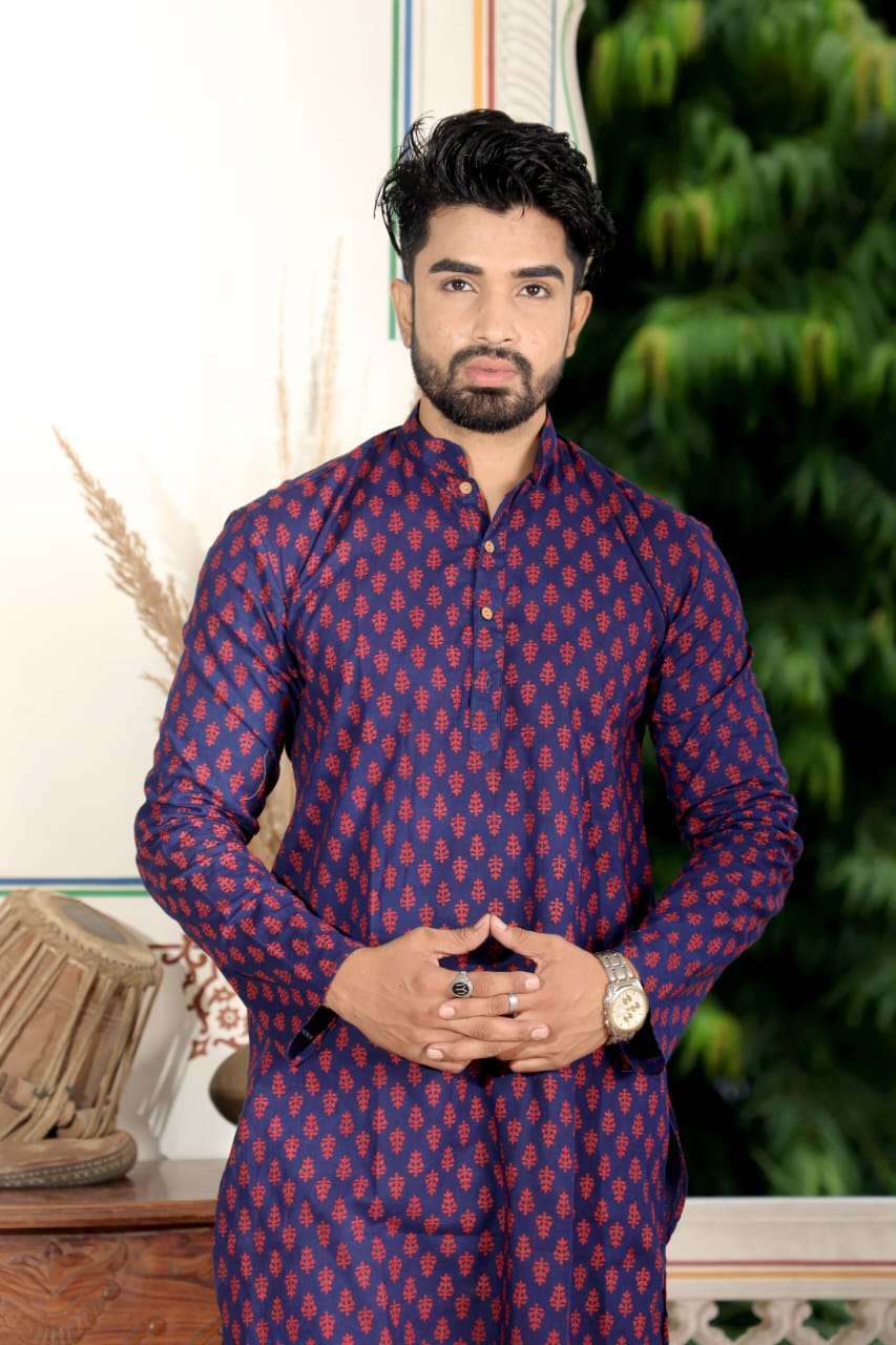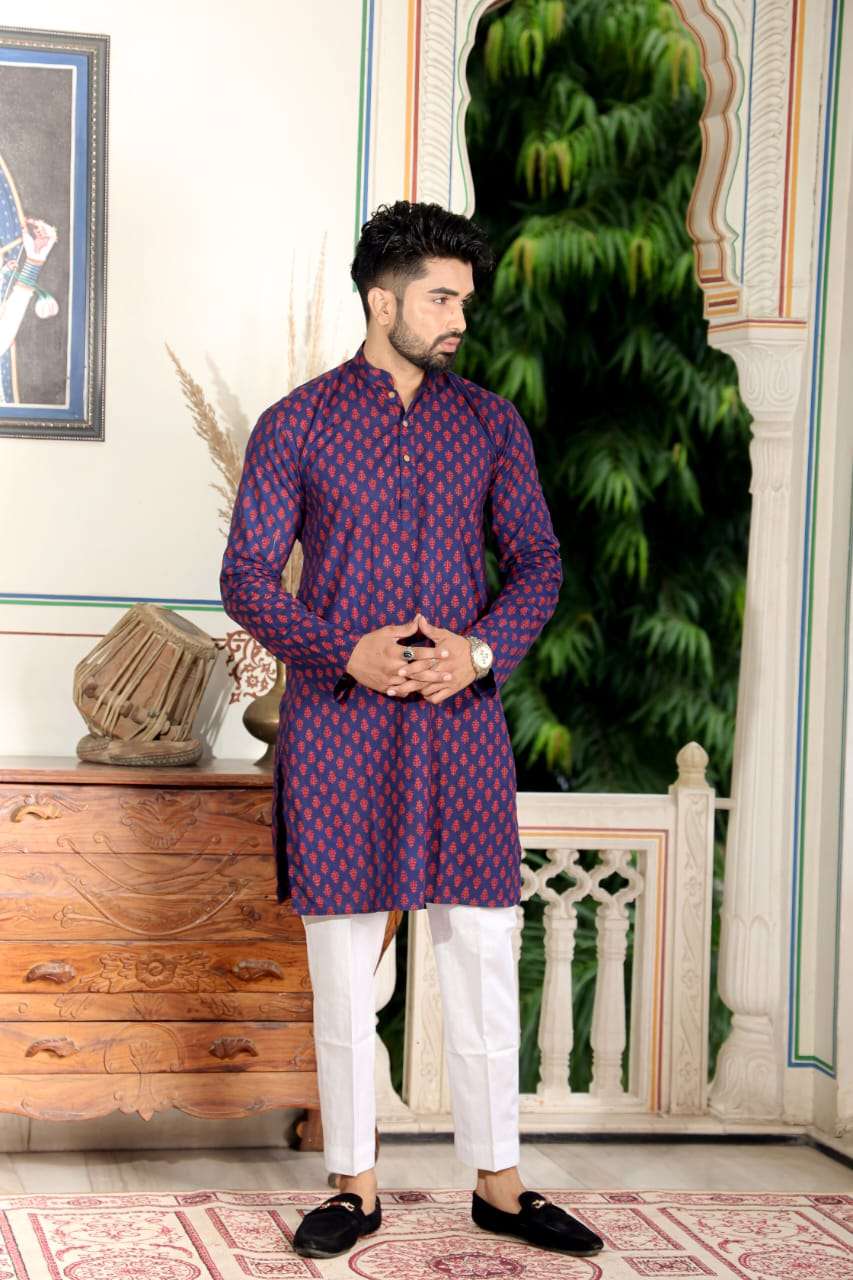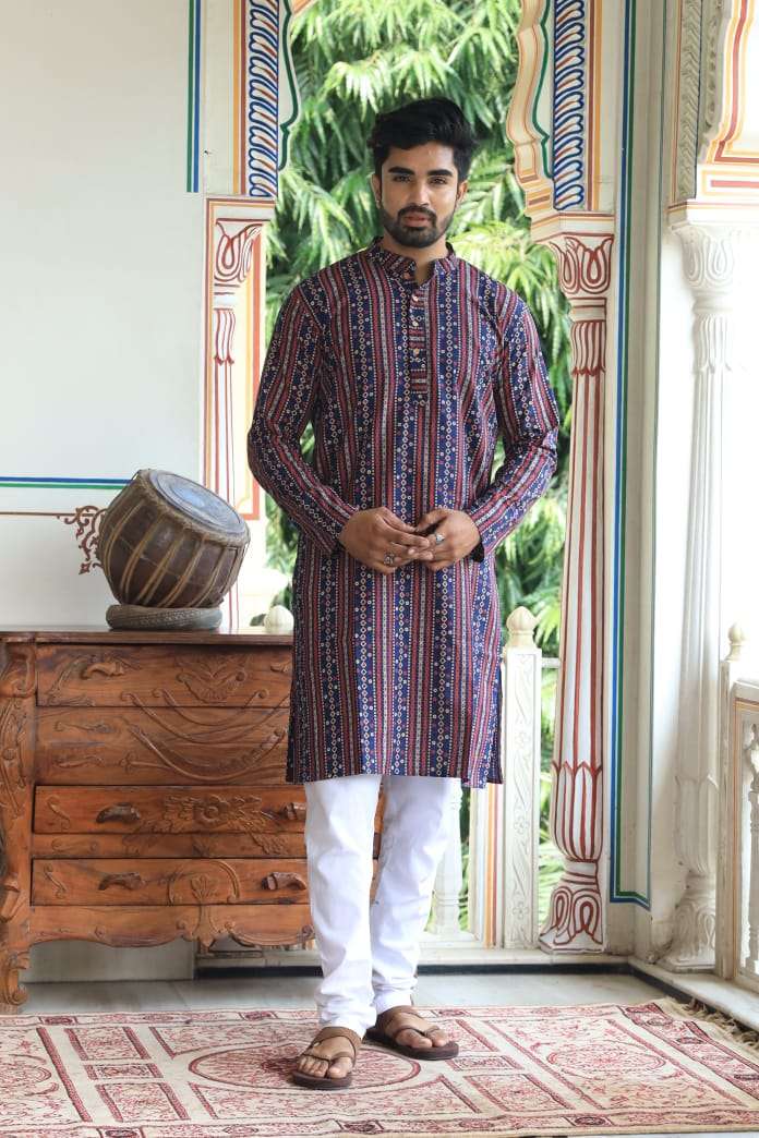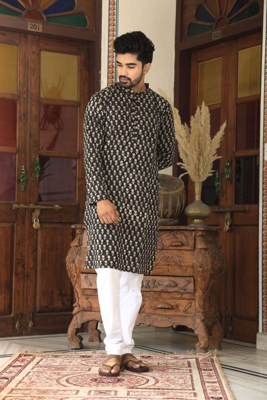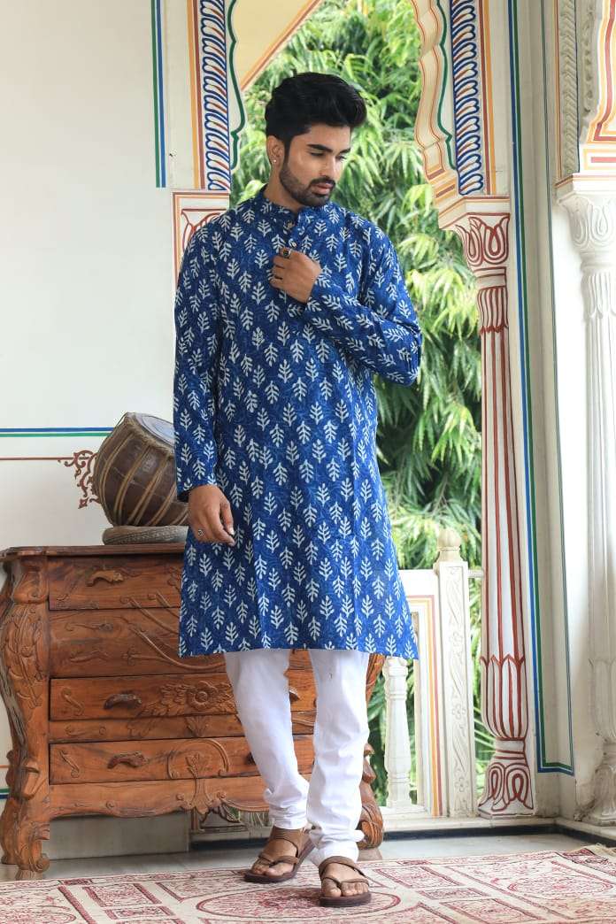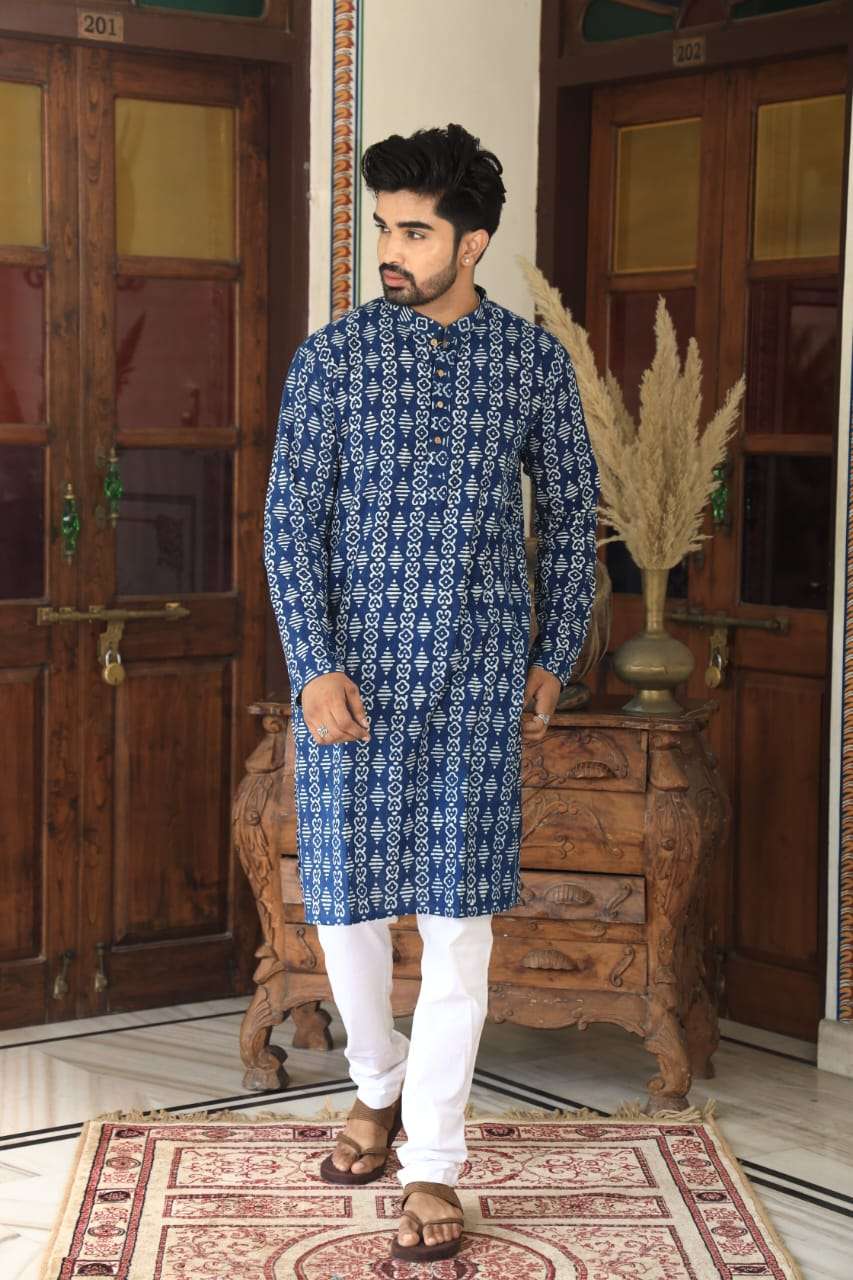 Catalogue: | Shri Balaji Emporium RF17350 Ready to Wear Hand Block Printed Pure Cotton Mens kurta Payzama |