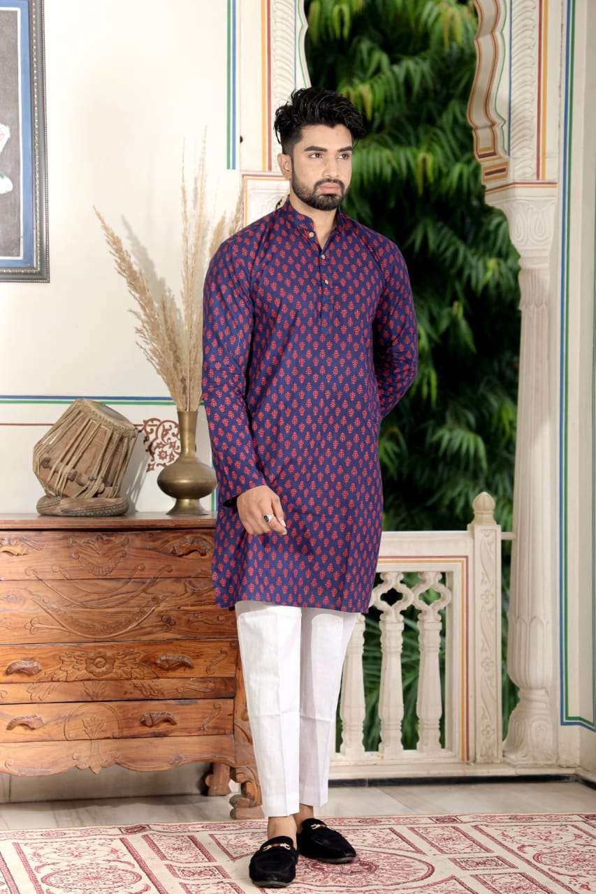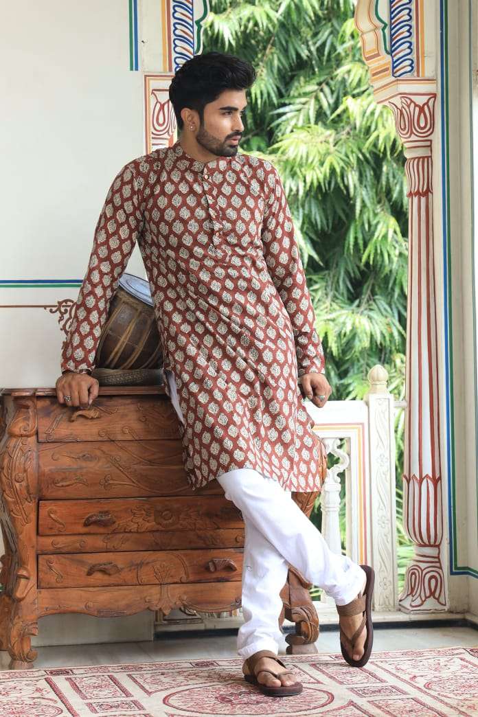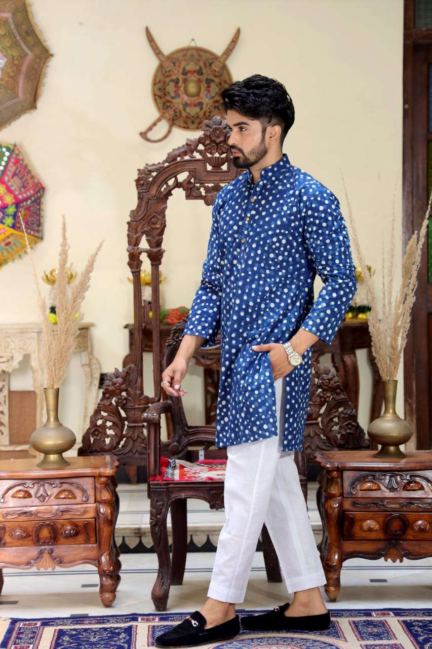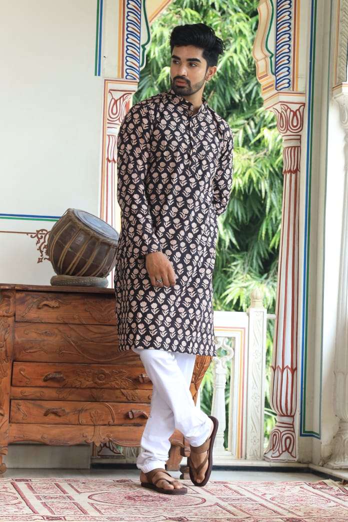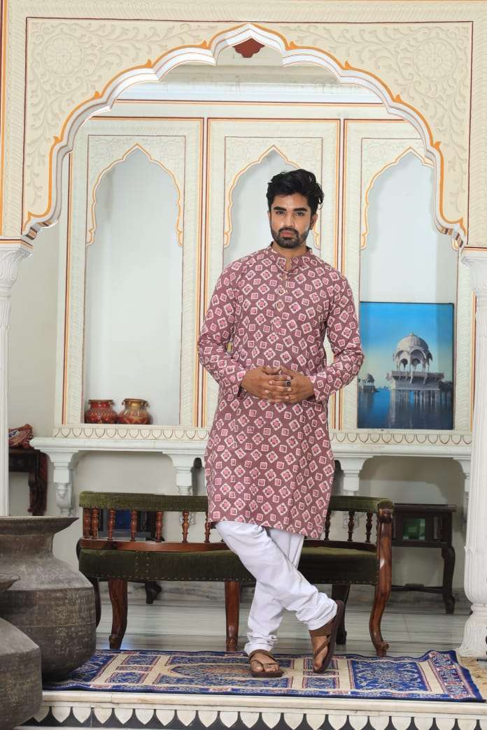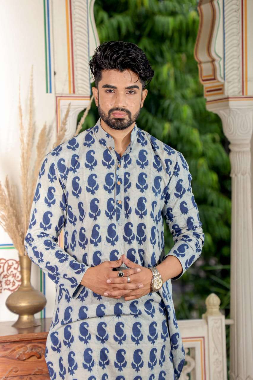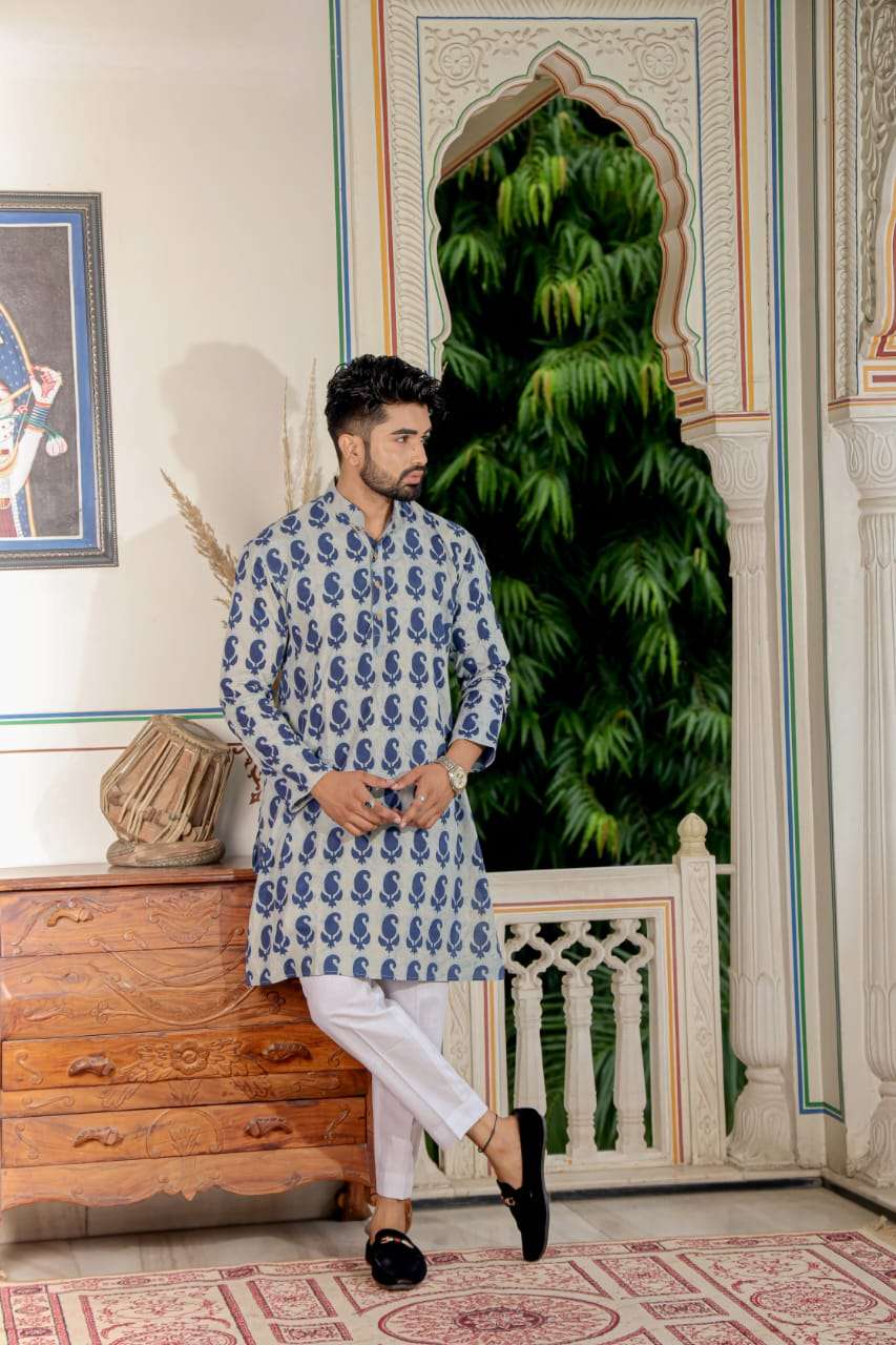 Catalogue: | Shri Balaji Emporium RF17350 Ready to Wear Hand Block Printed Pure Cotton Mens kurta Payzama |