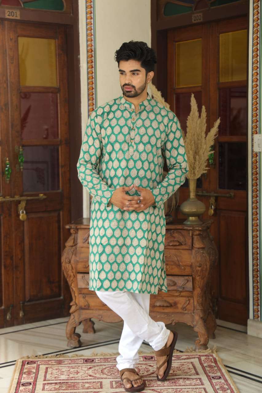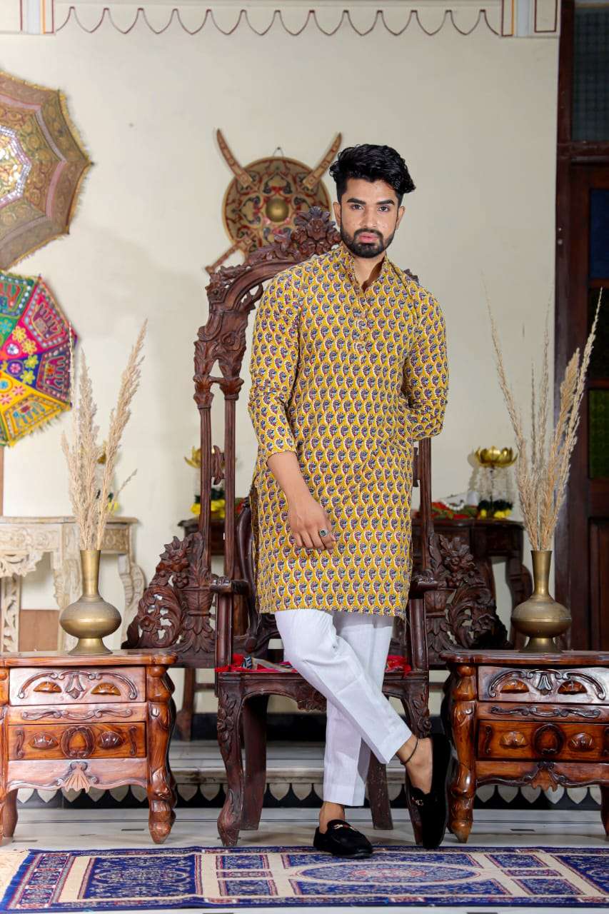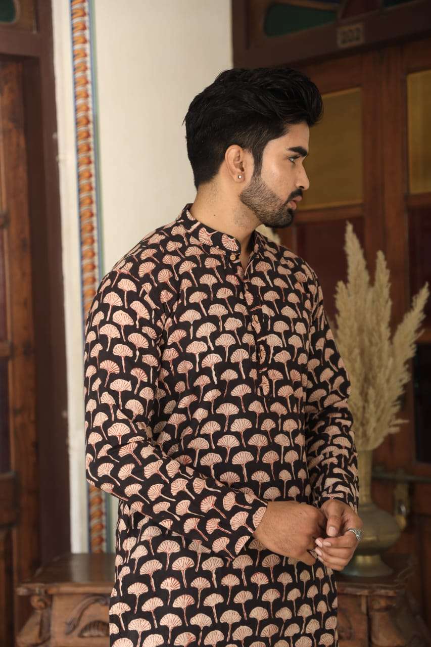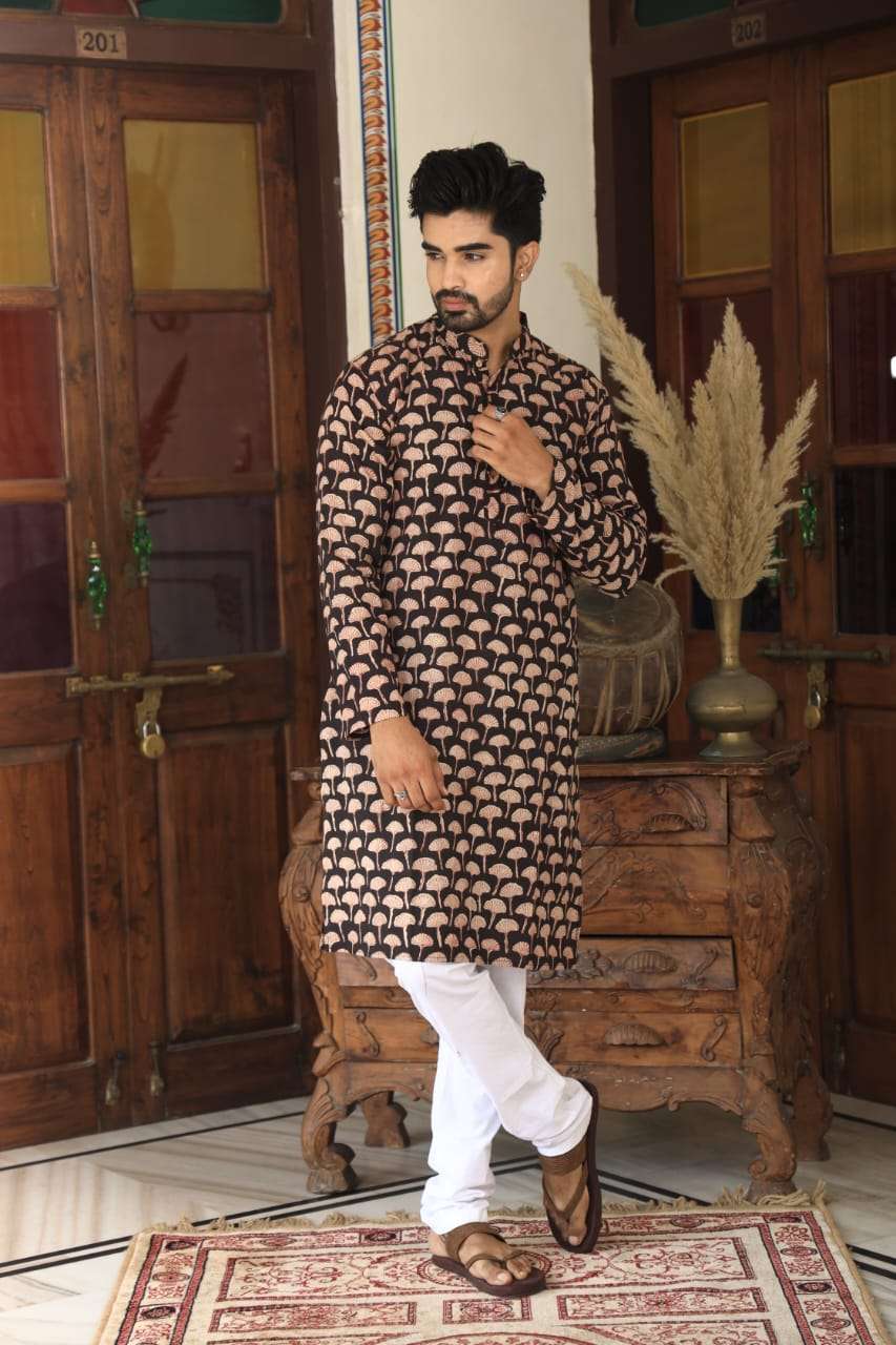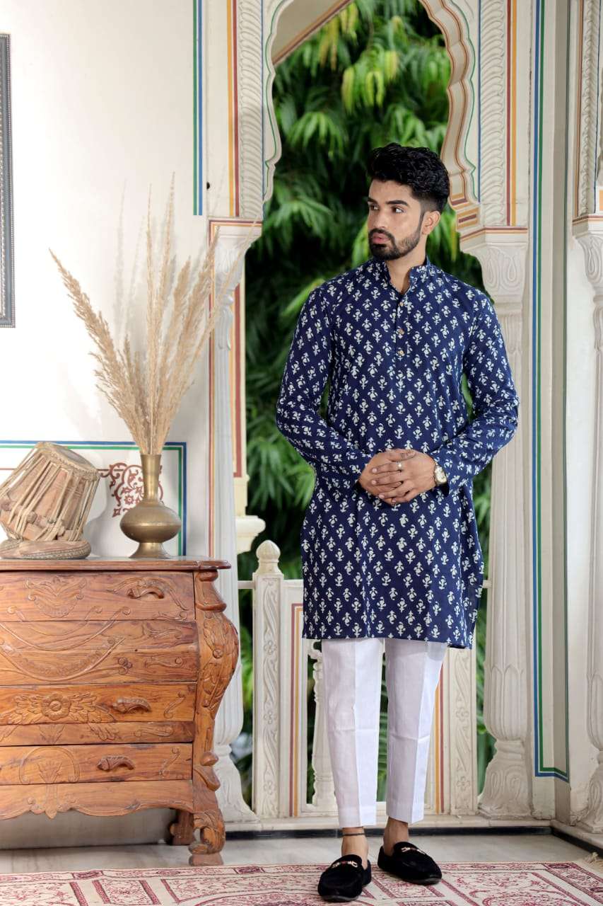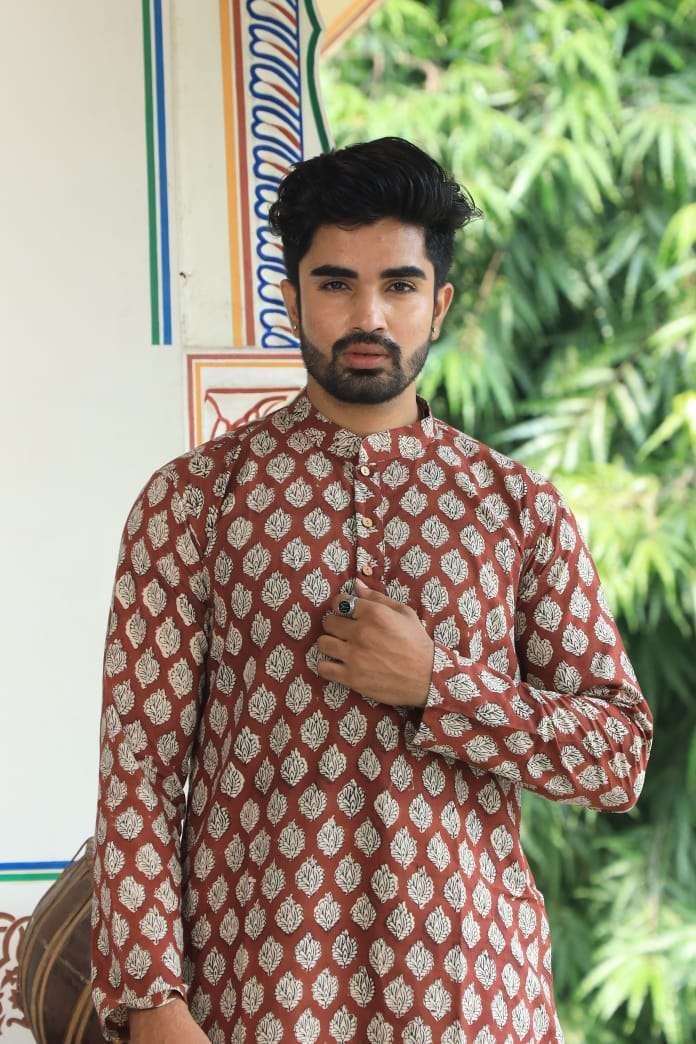 Catalogue: | Shri Balaji Emporium RF17350 Ready to Wear Hand Block Printed Pure Cotton Mens kurta Payzama |