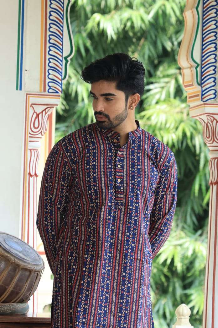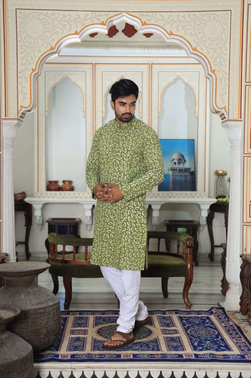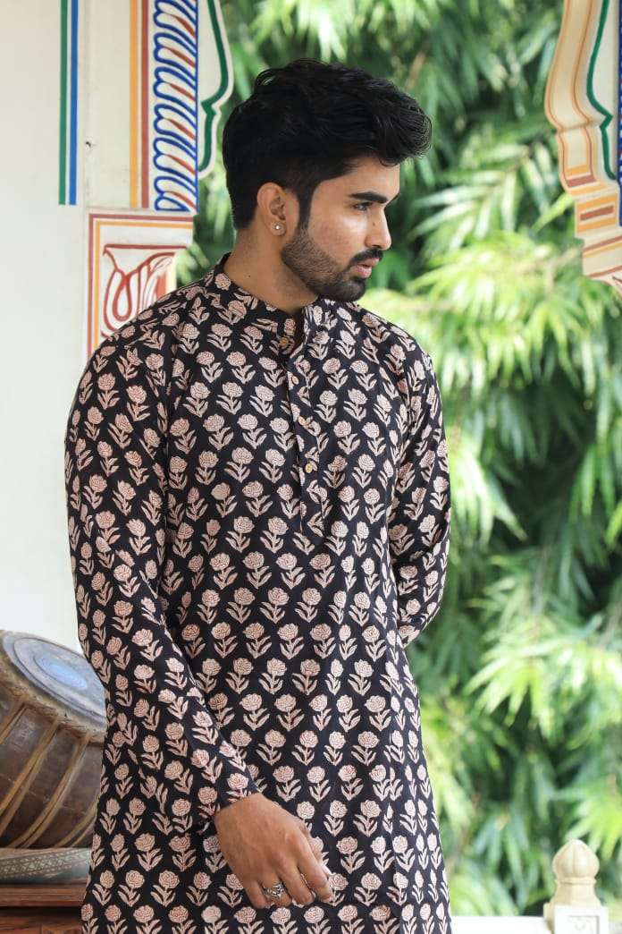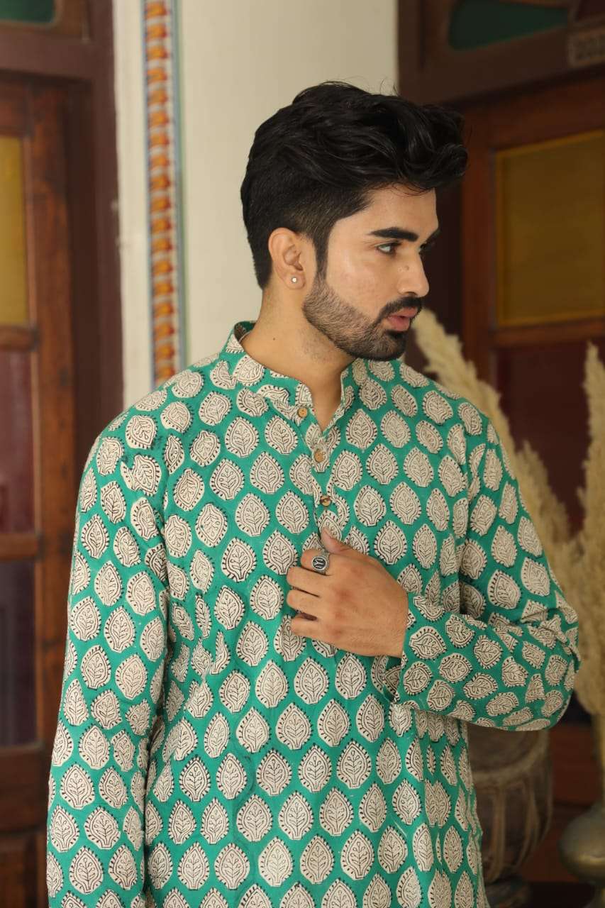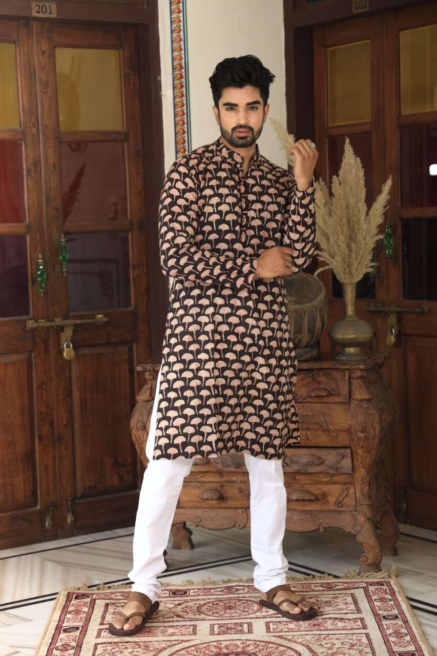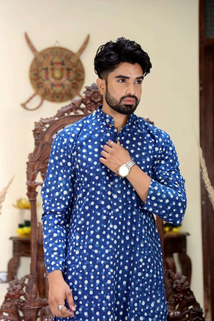 Catalogue: | Shri Balaji Emporium RF17350 Ready to Wear Hand Block Printed Pure Cotton Mens kurta Payzama |