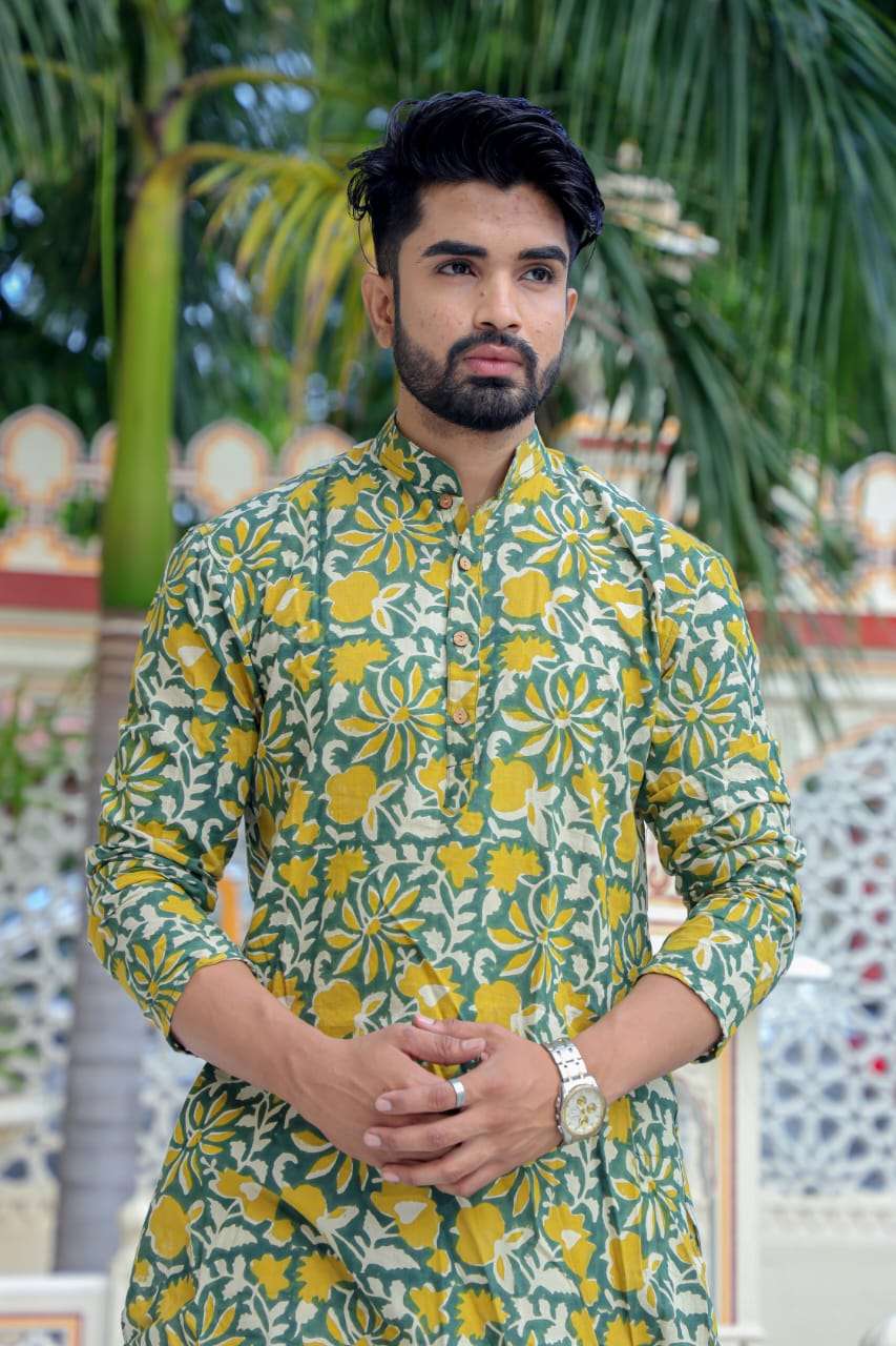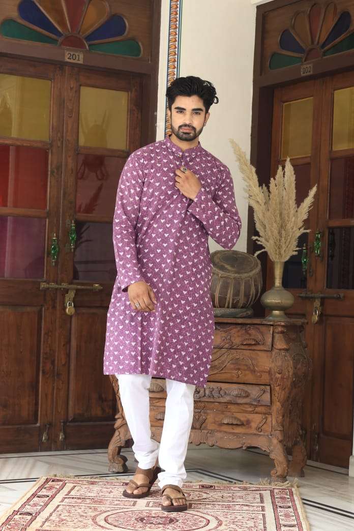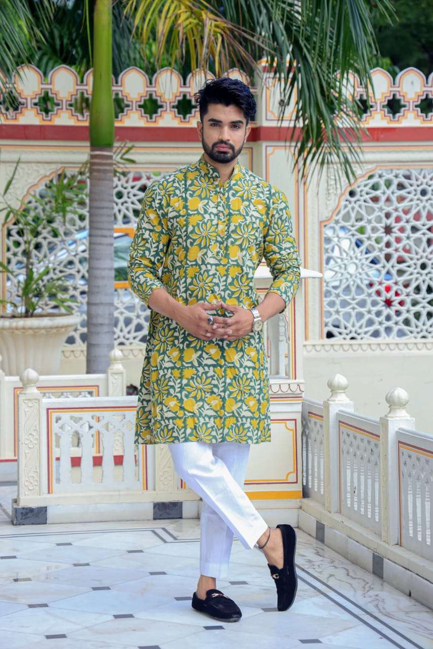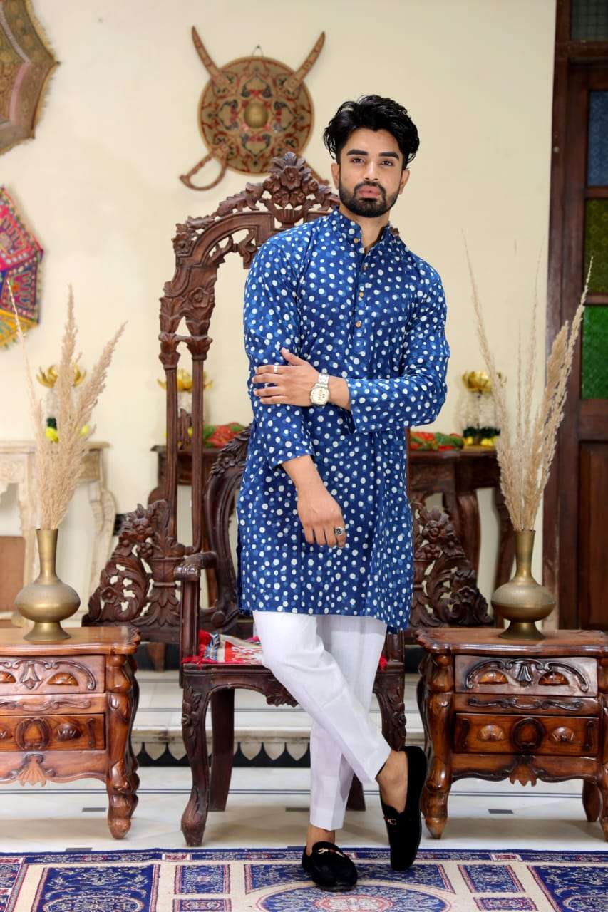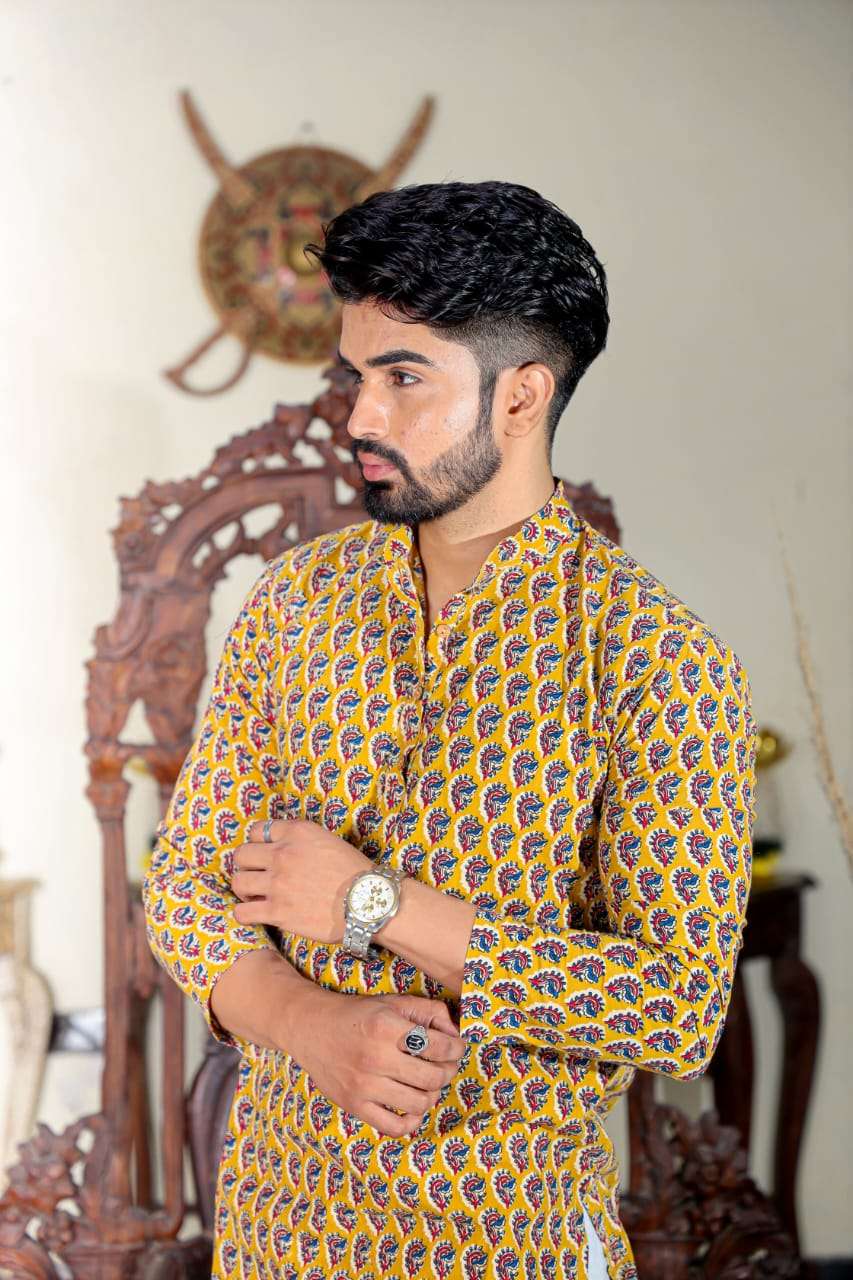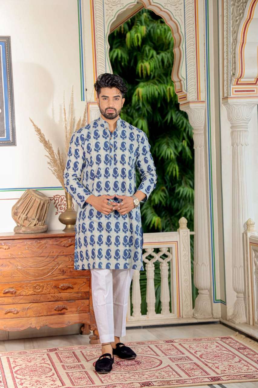 Catalogue: | Shri Balaji Emporium RF17350 Ready to Wear Hand Block Printed Pure Cotton Mens kurta Payzama |