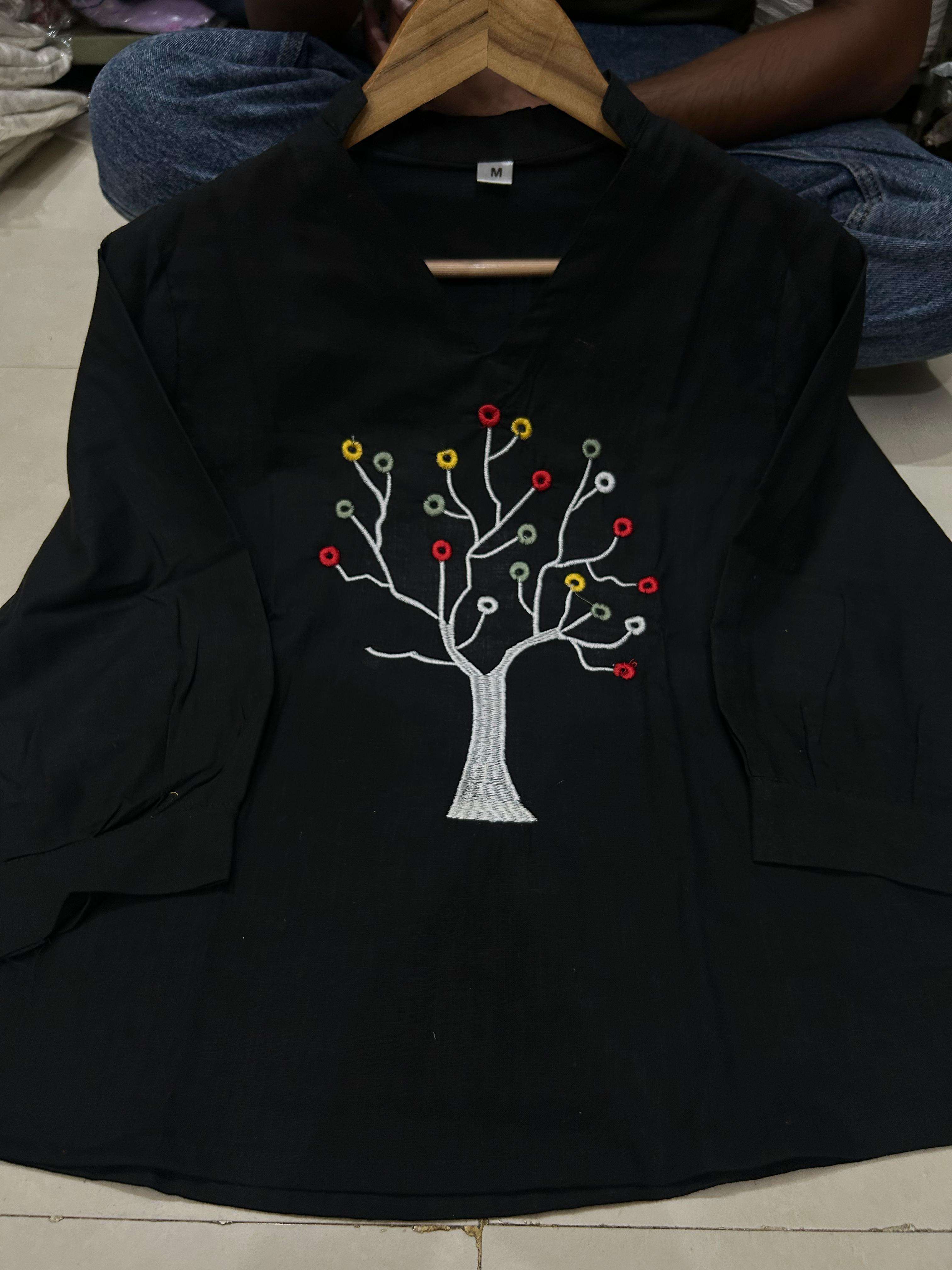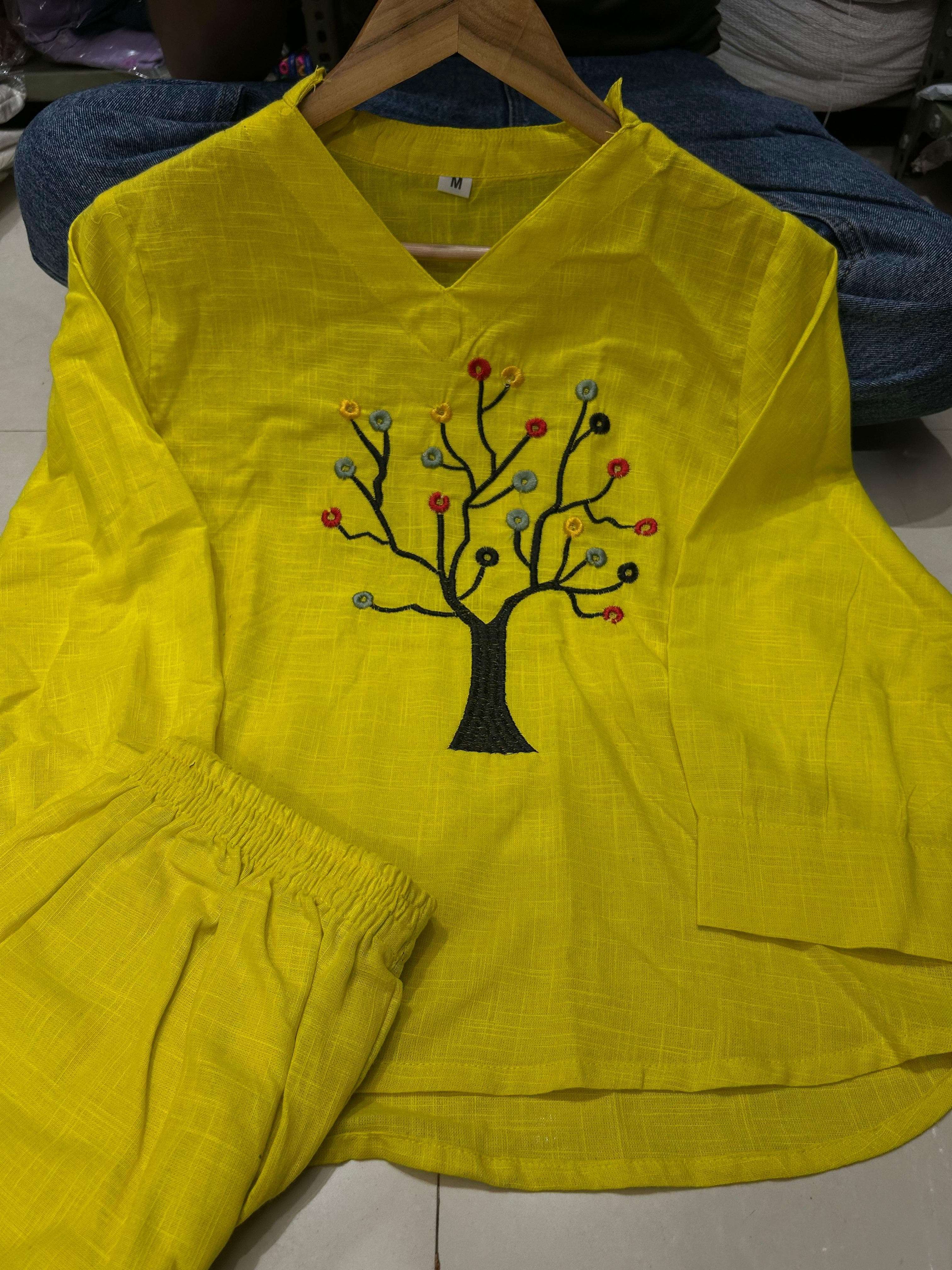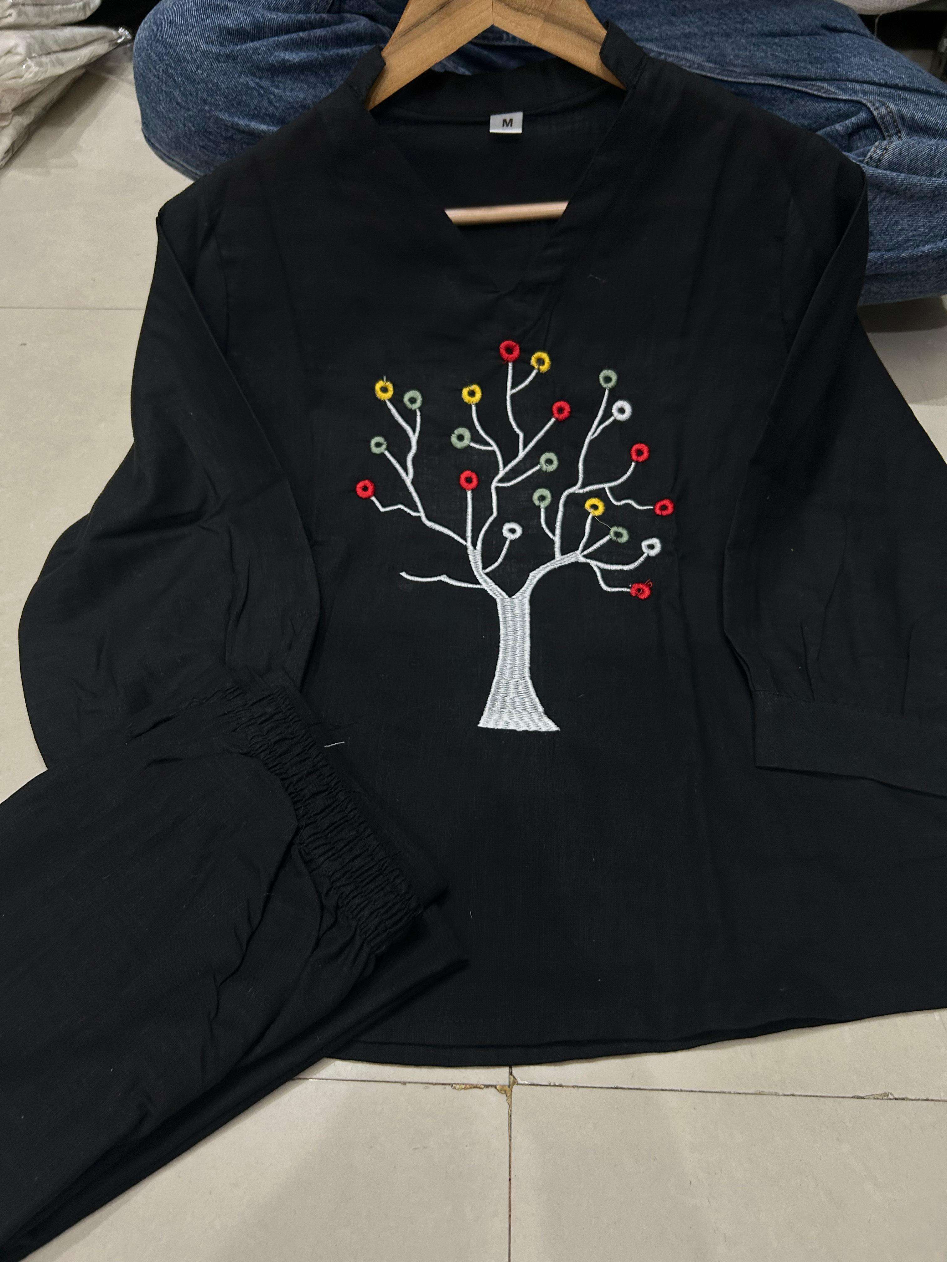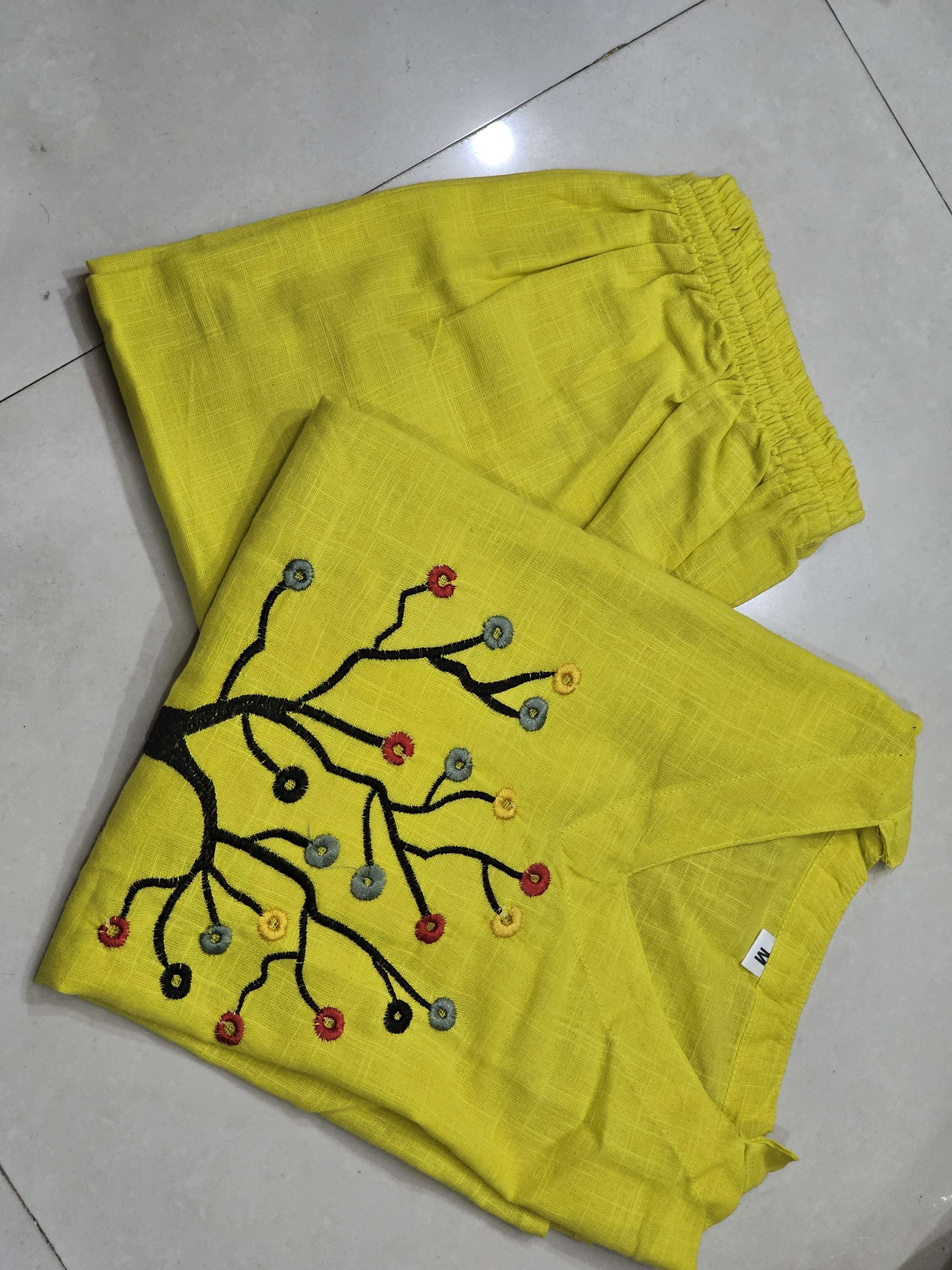 Beautiful Pure Cotton slub Fabric Full Embroidery Kurta With cotton slub Plazo