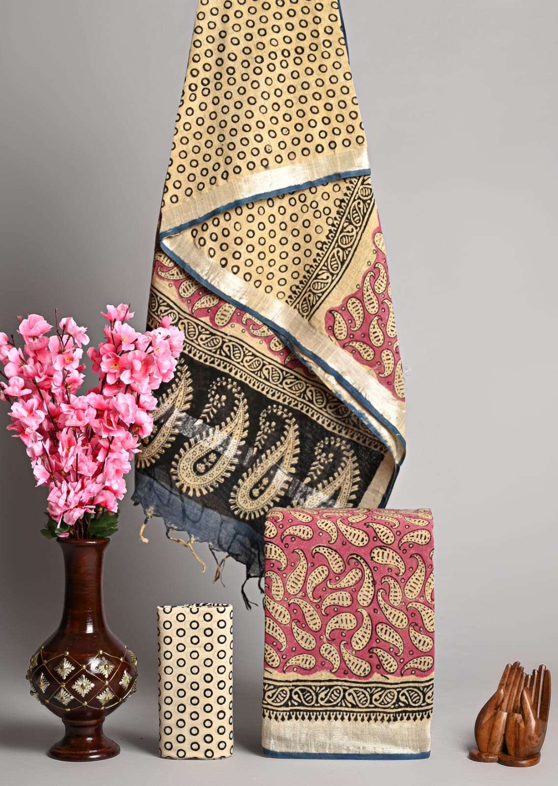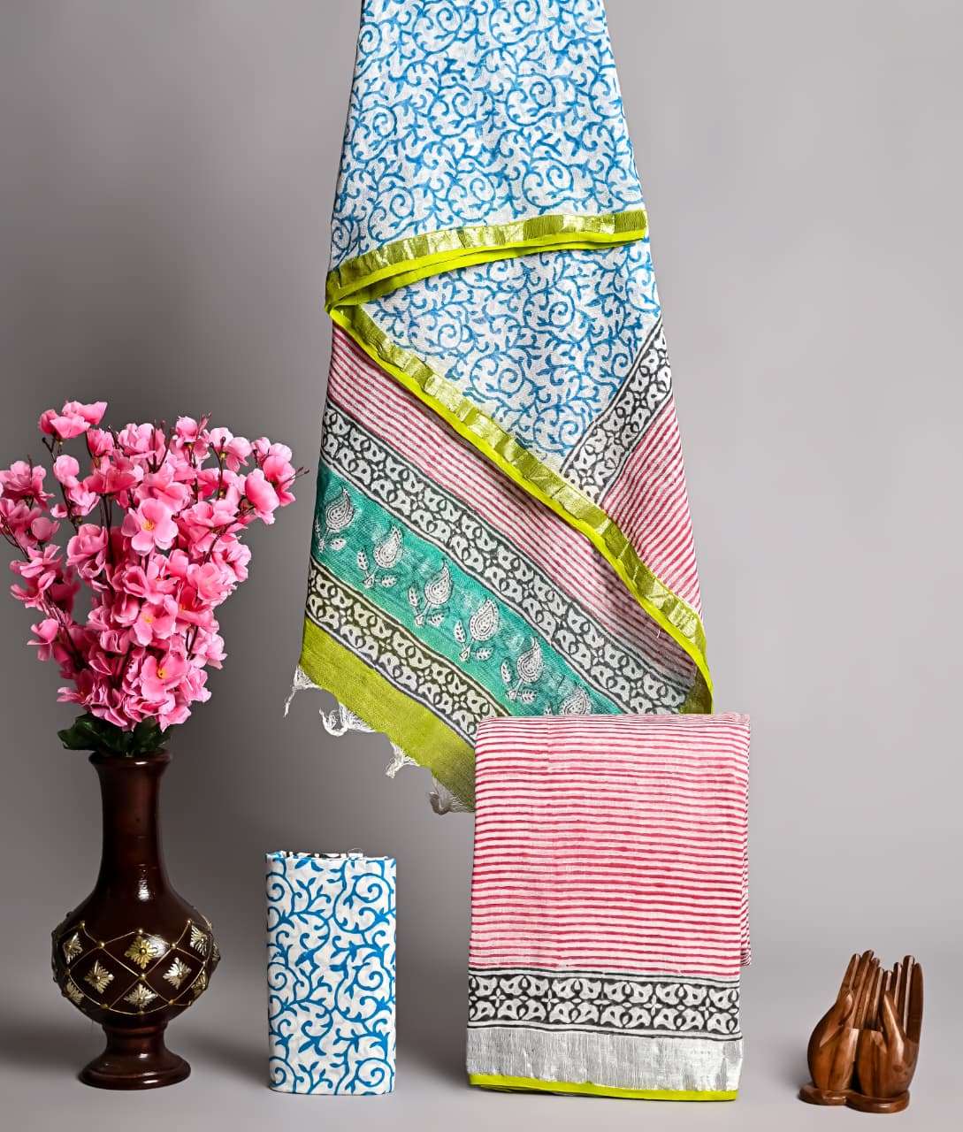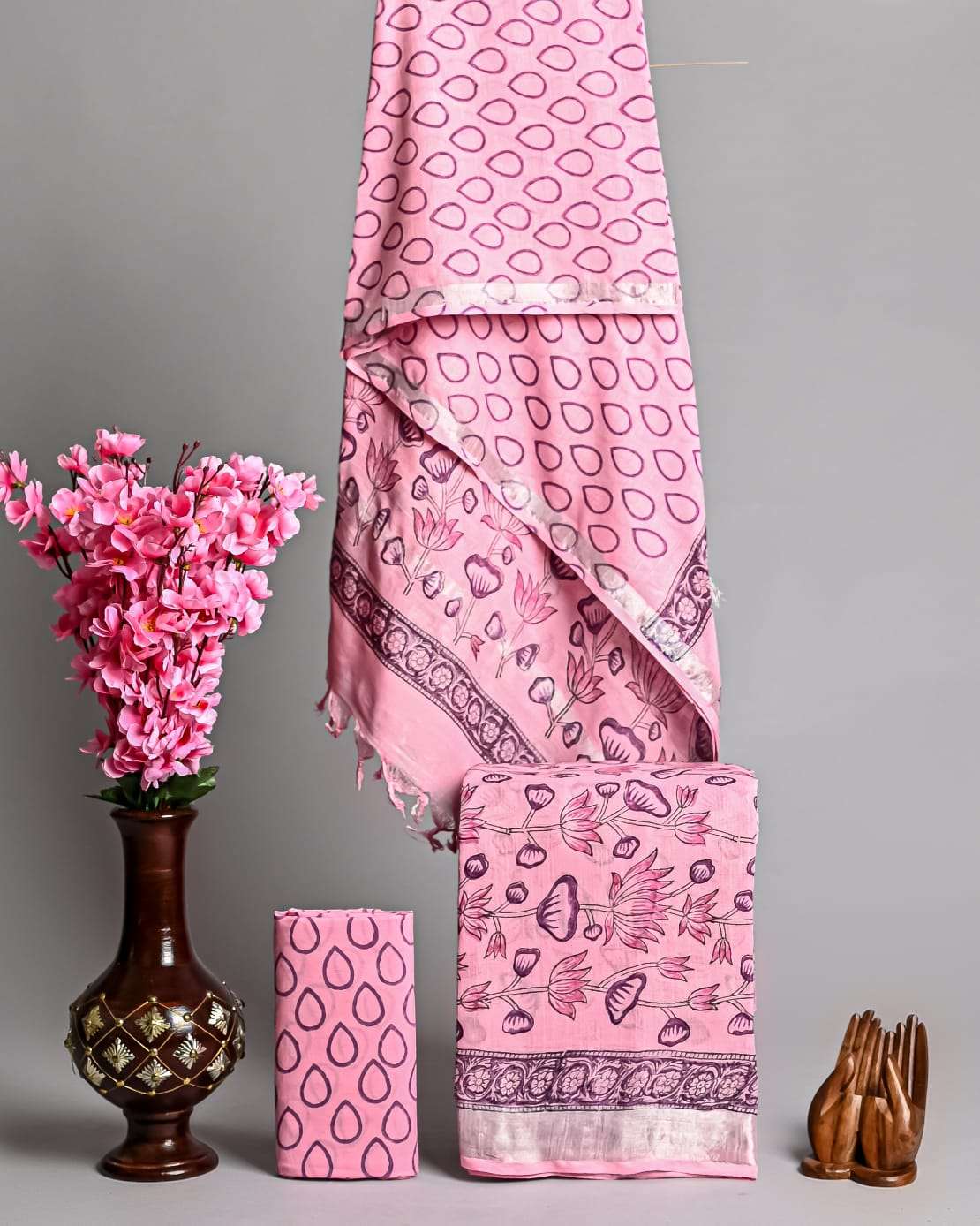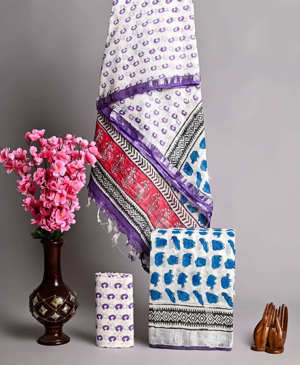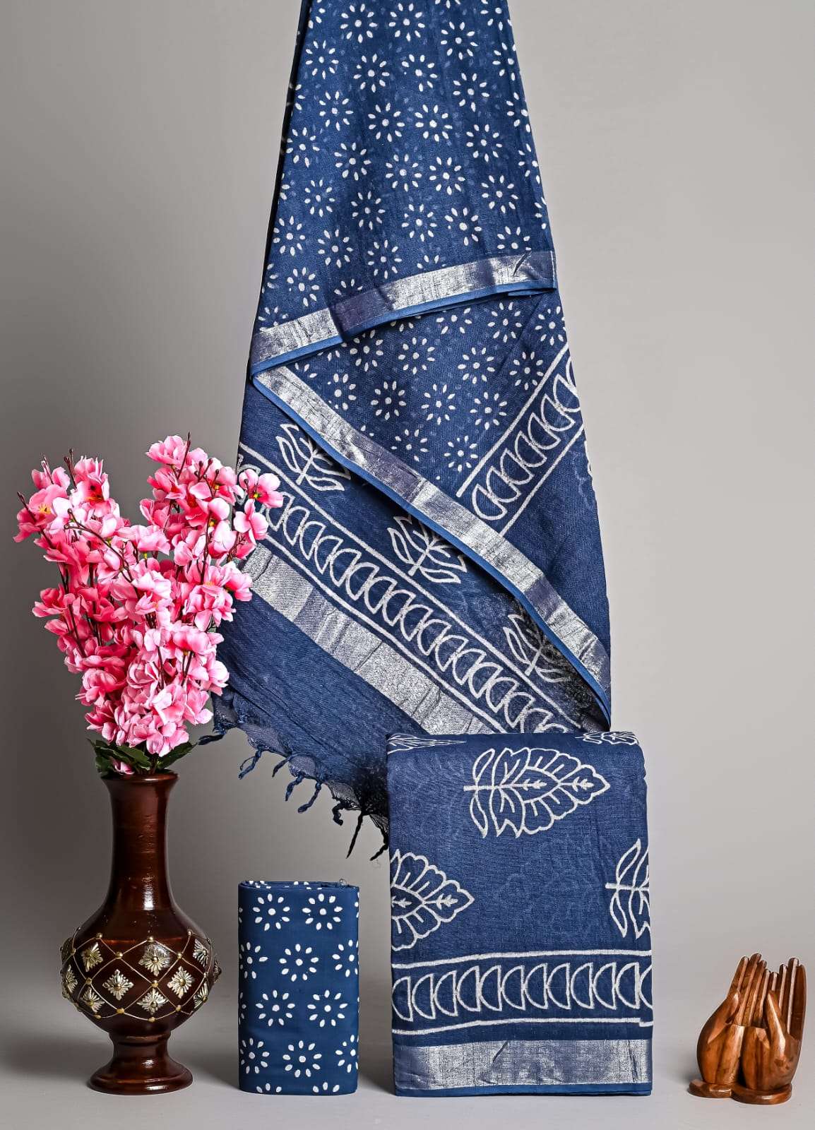 | Work : | zari border,hand block print |