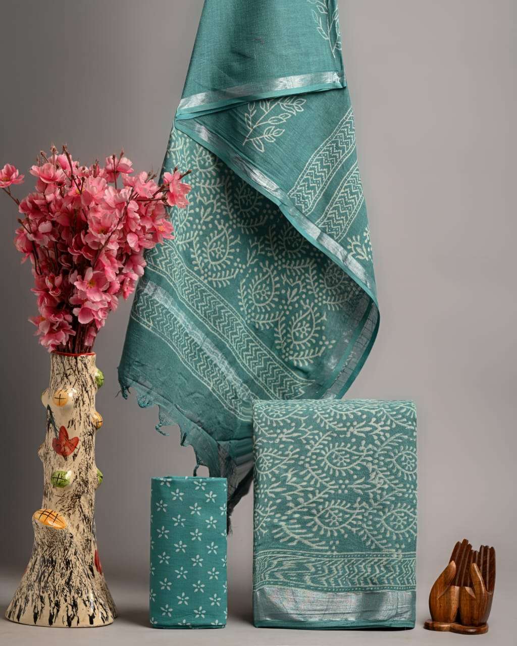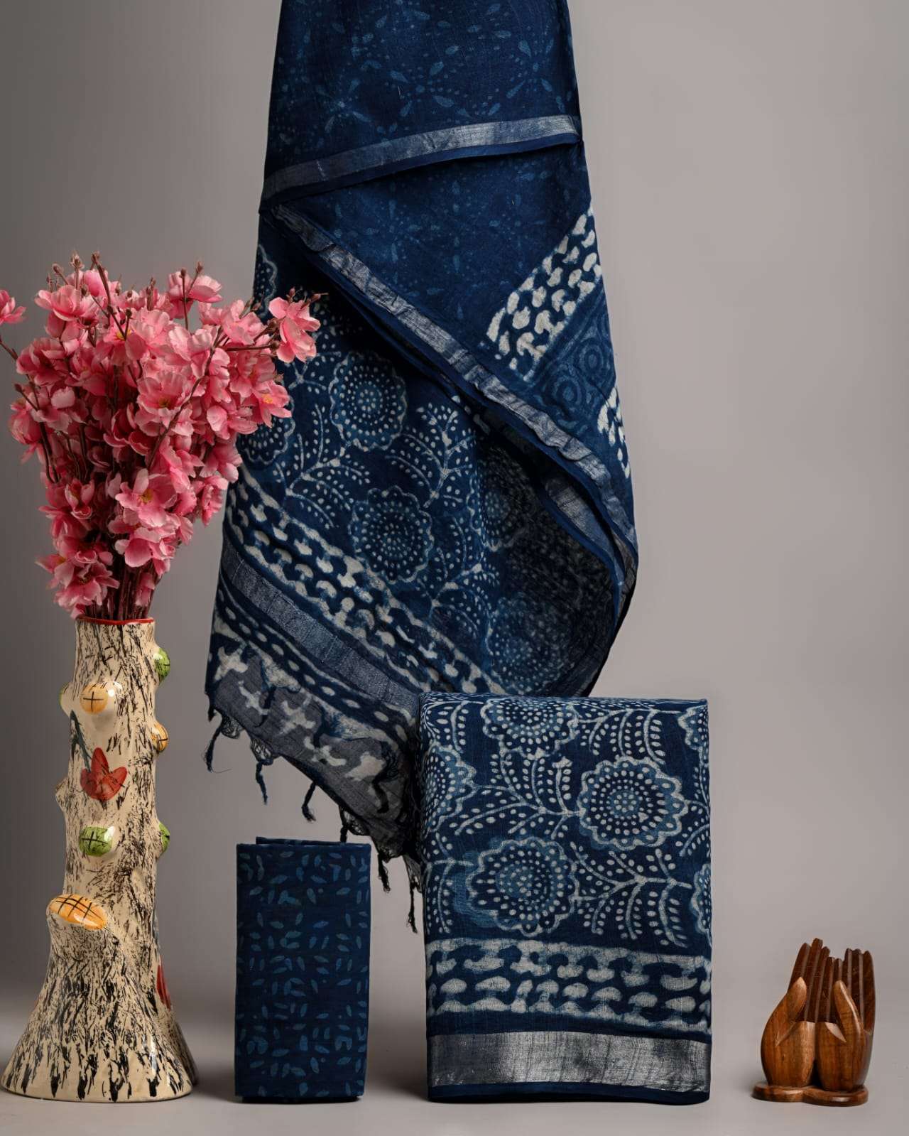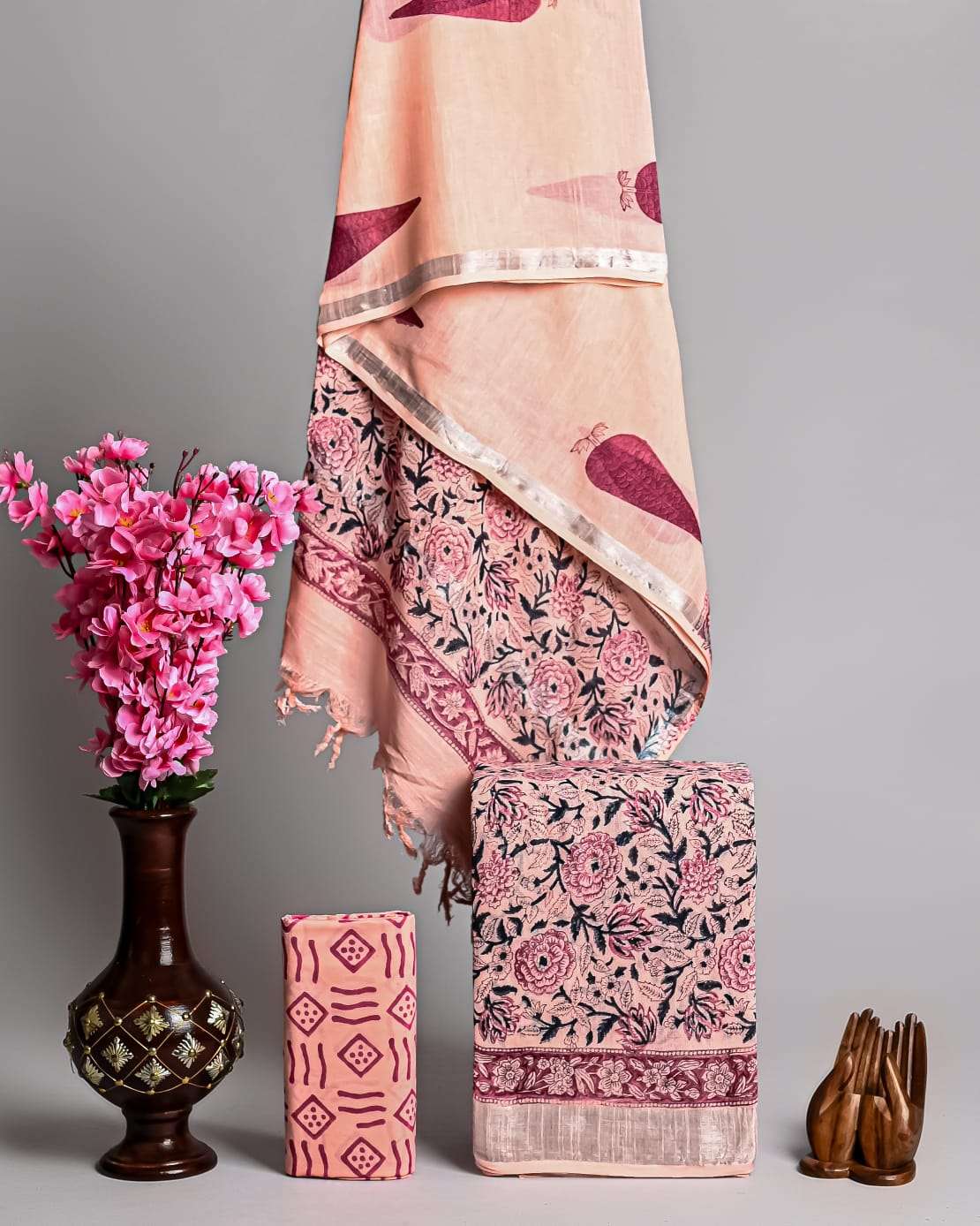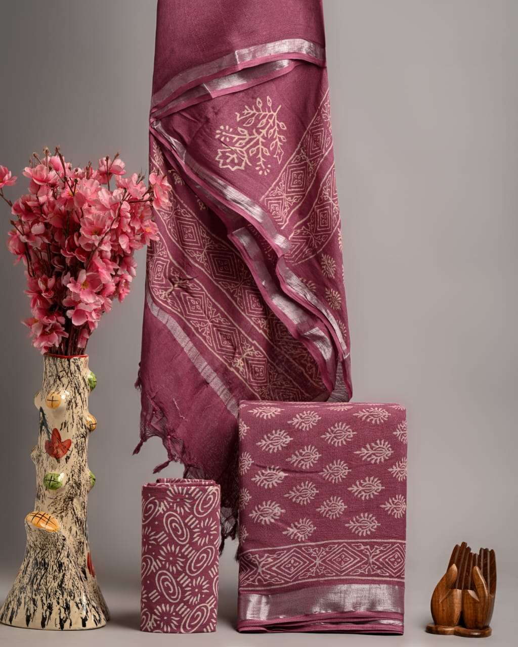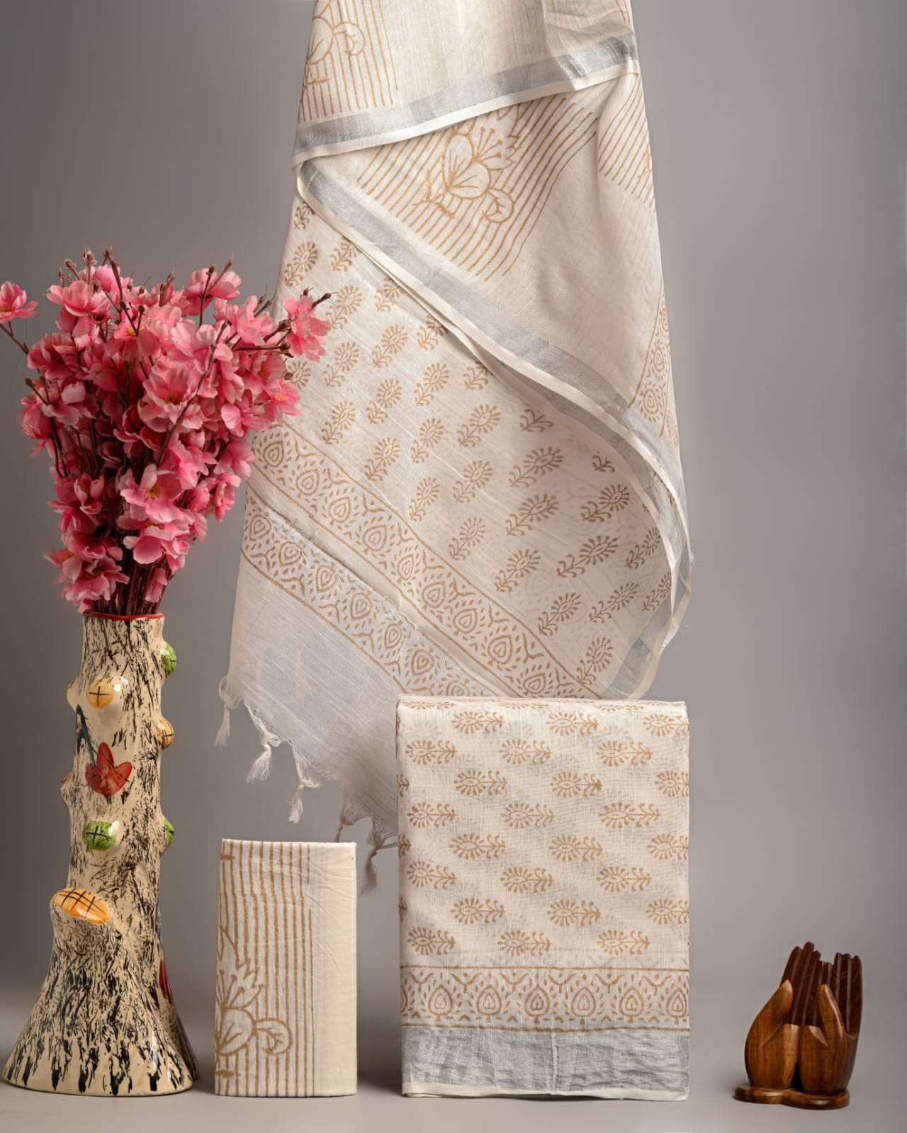 | Work : | zari border,hand block print |