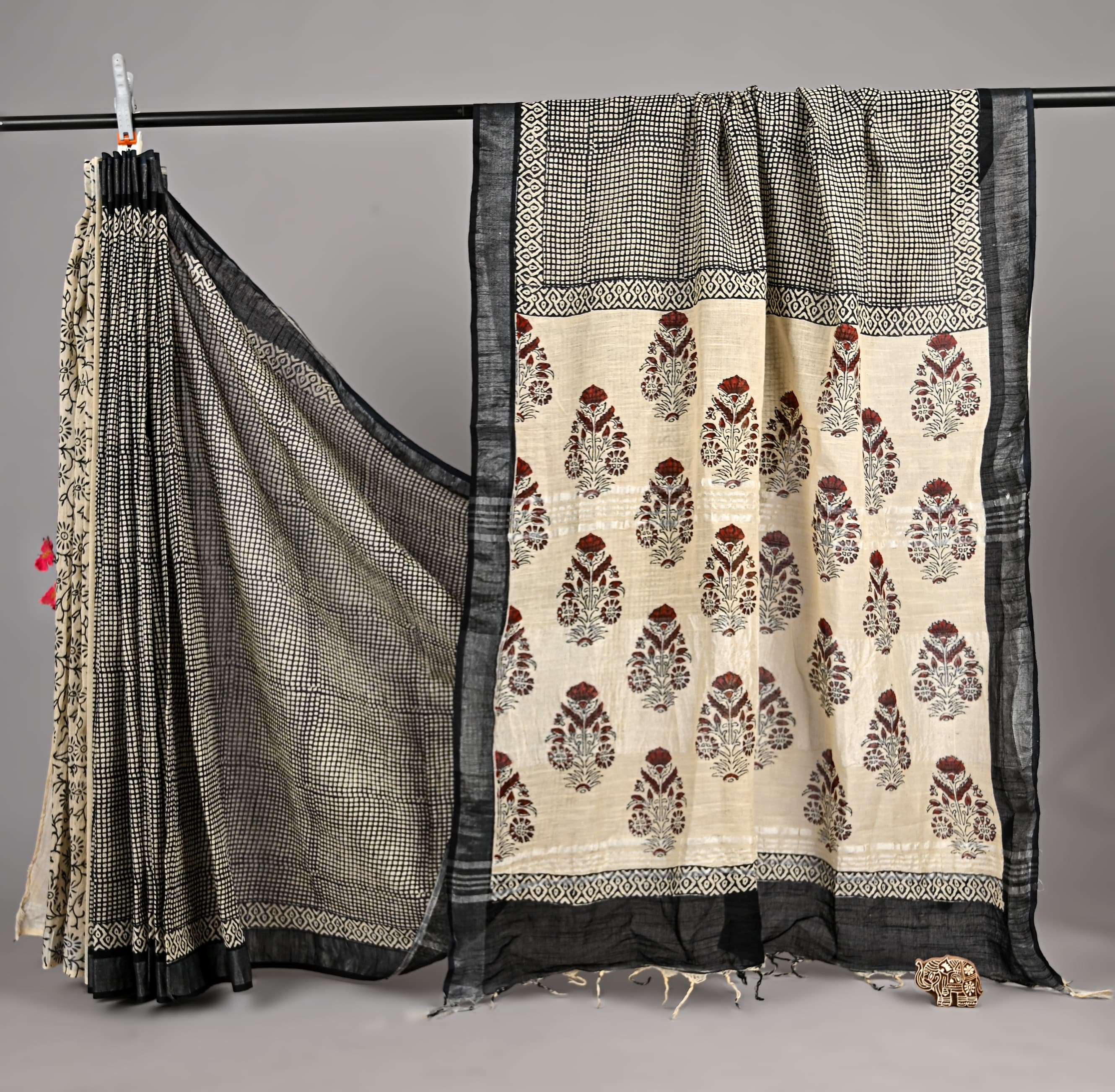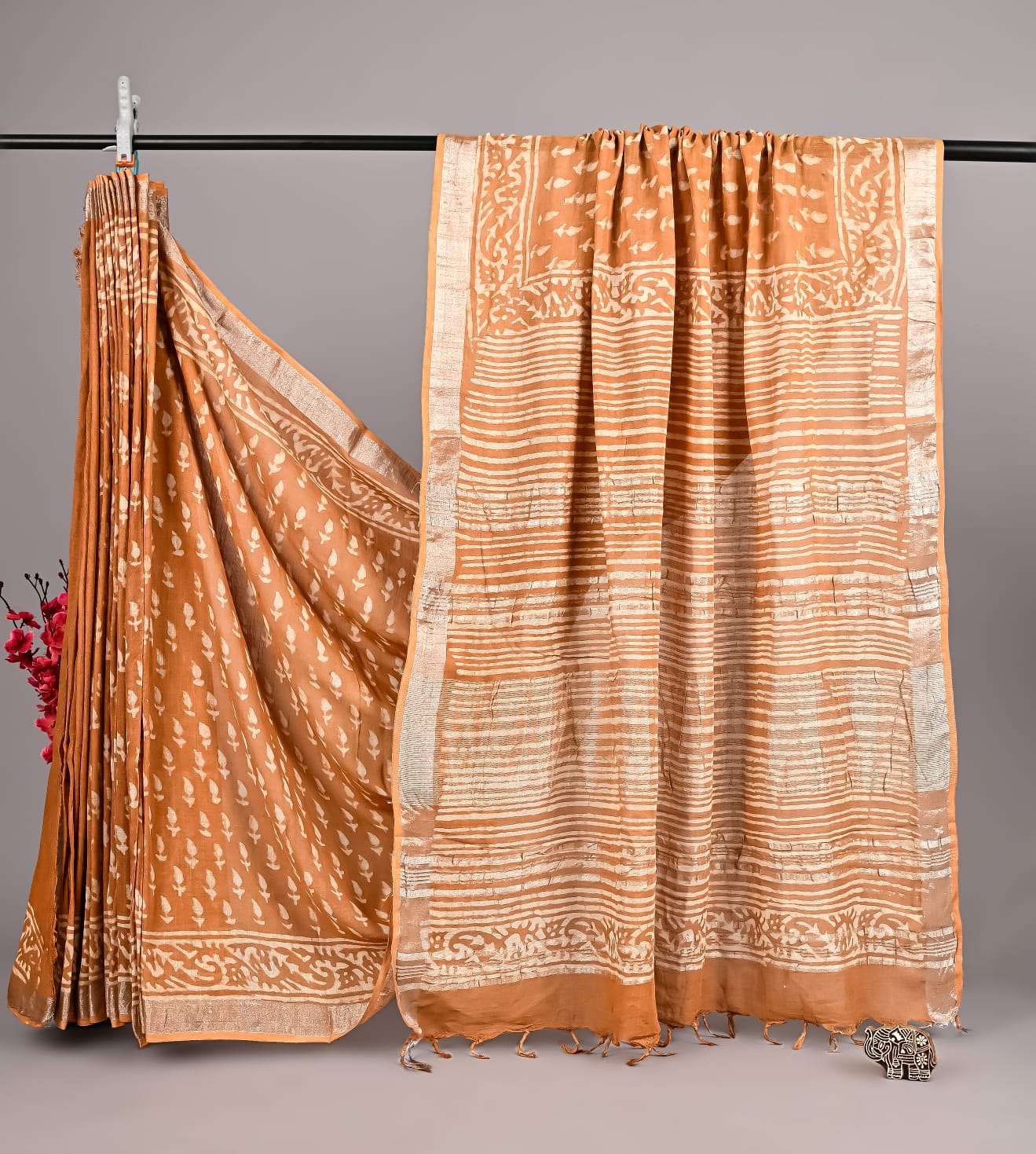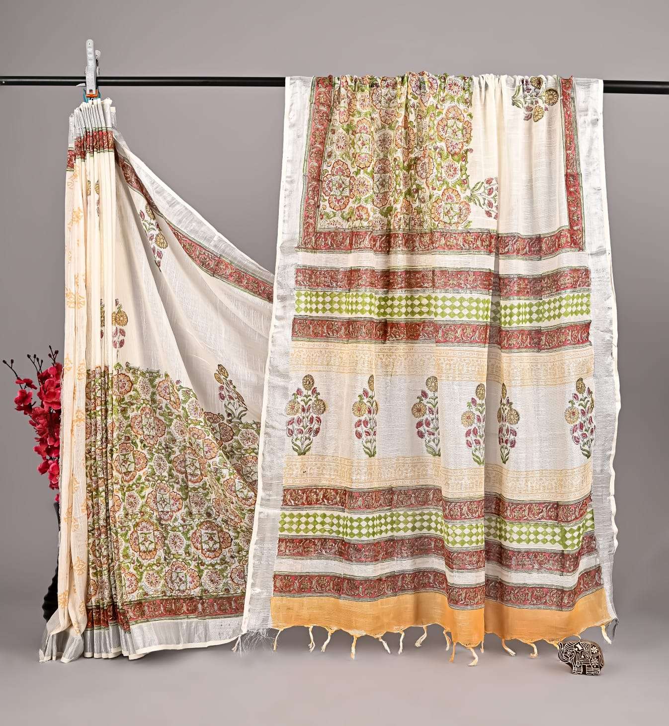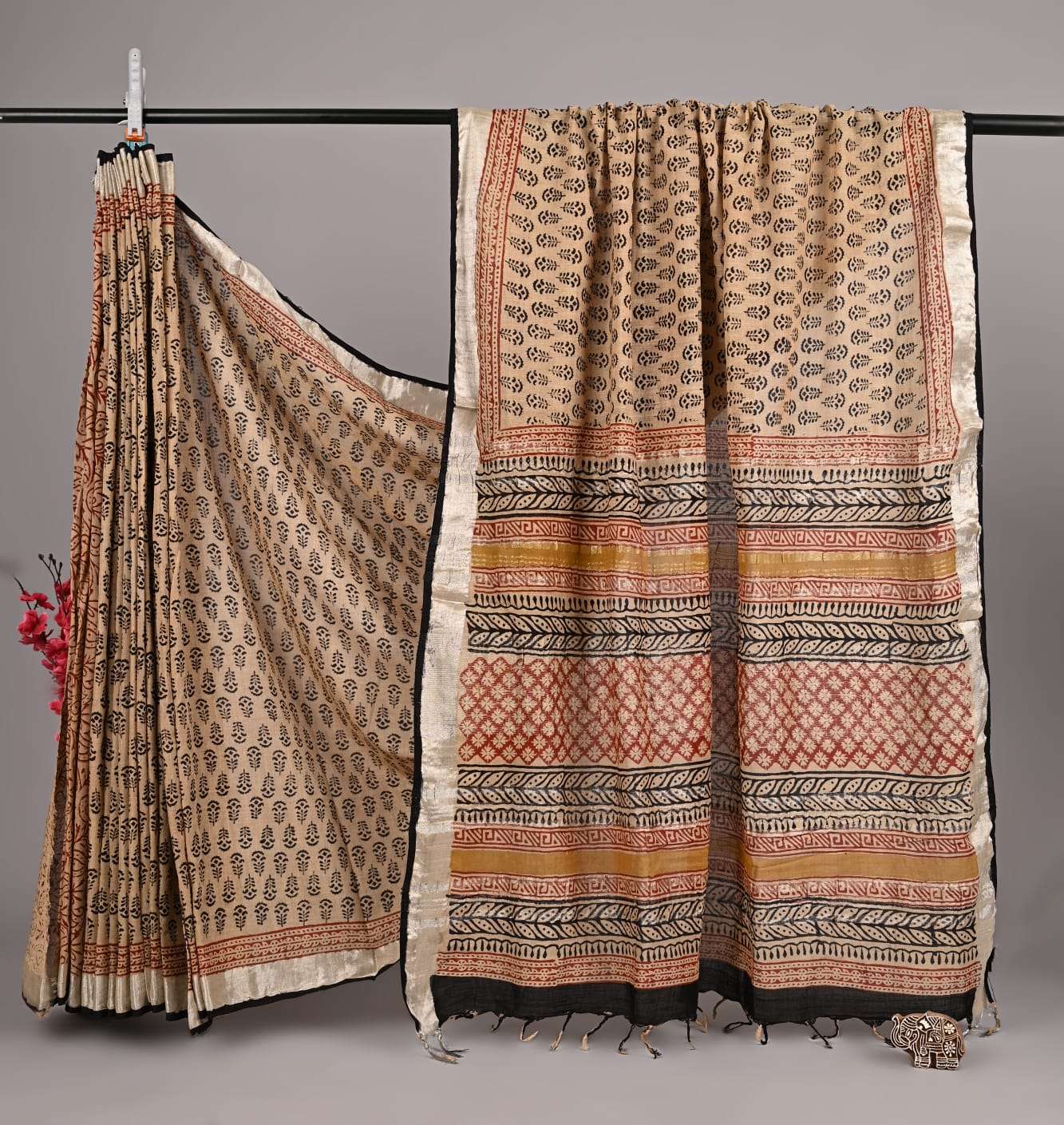| Catalogue: | Shri Balaji Emporium RF17870 Hand Block Printed Cotton Linen Saree |