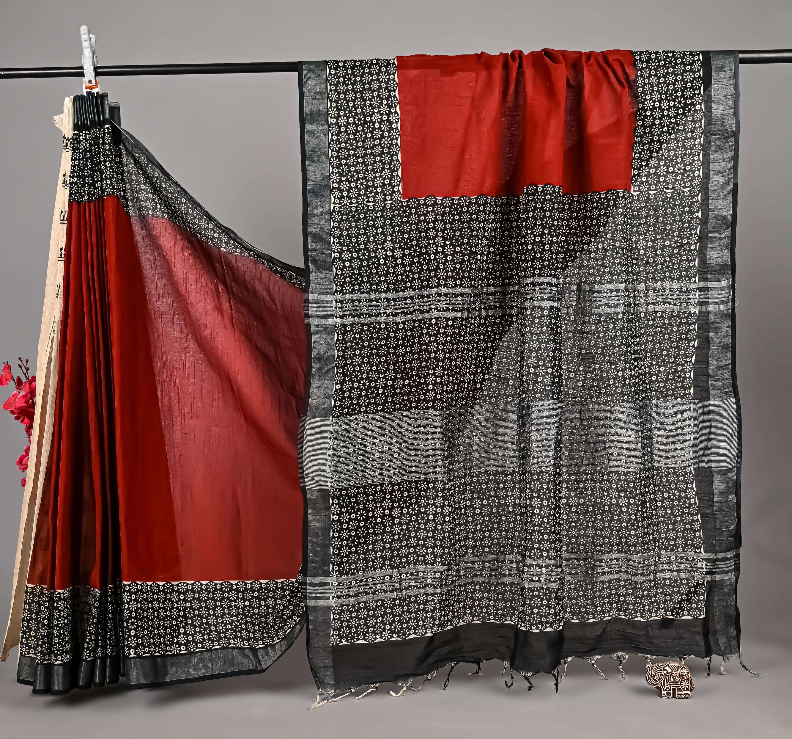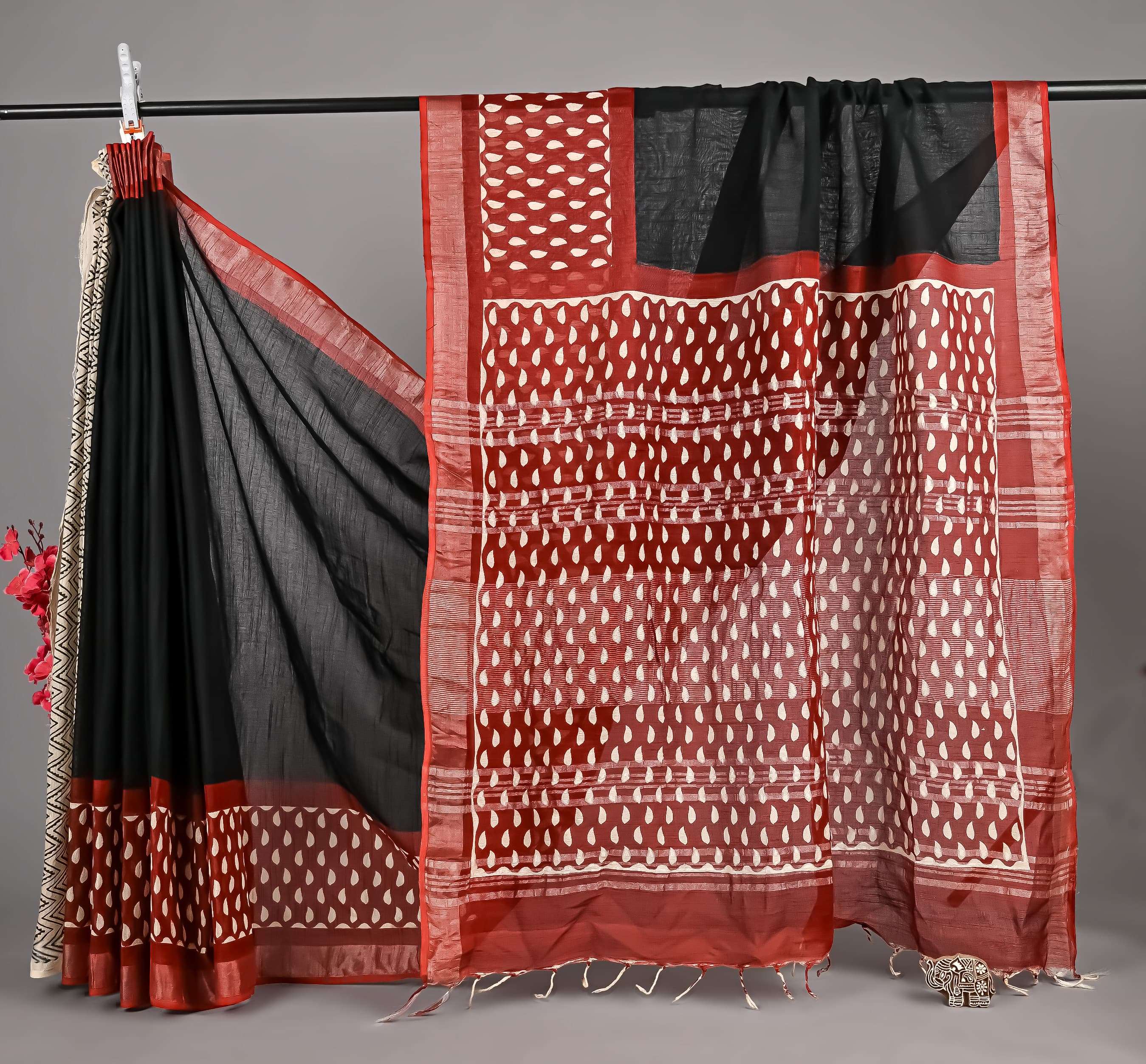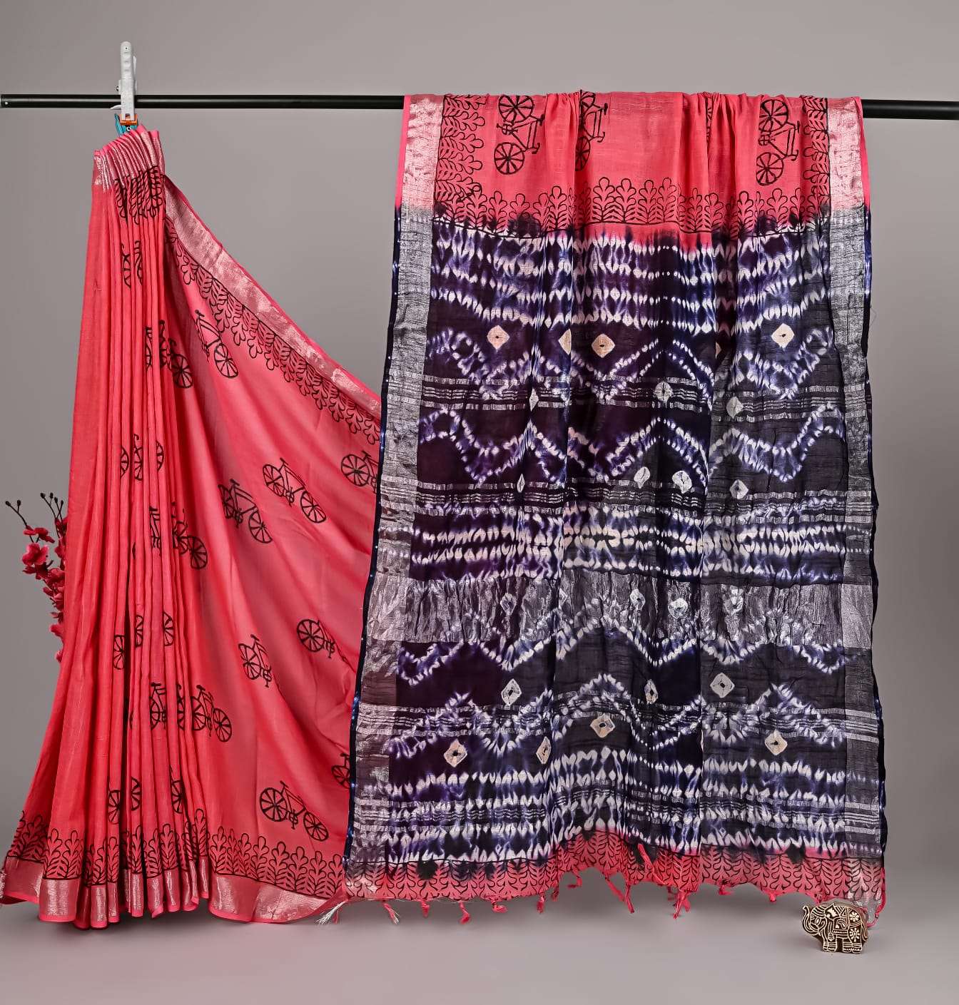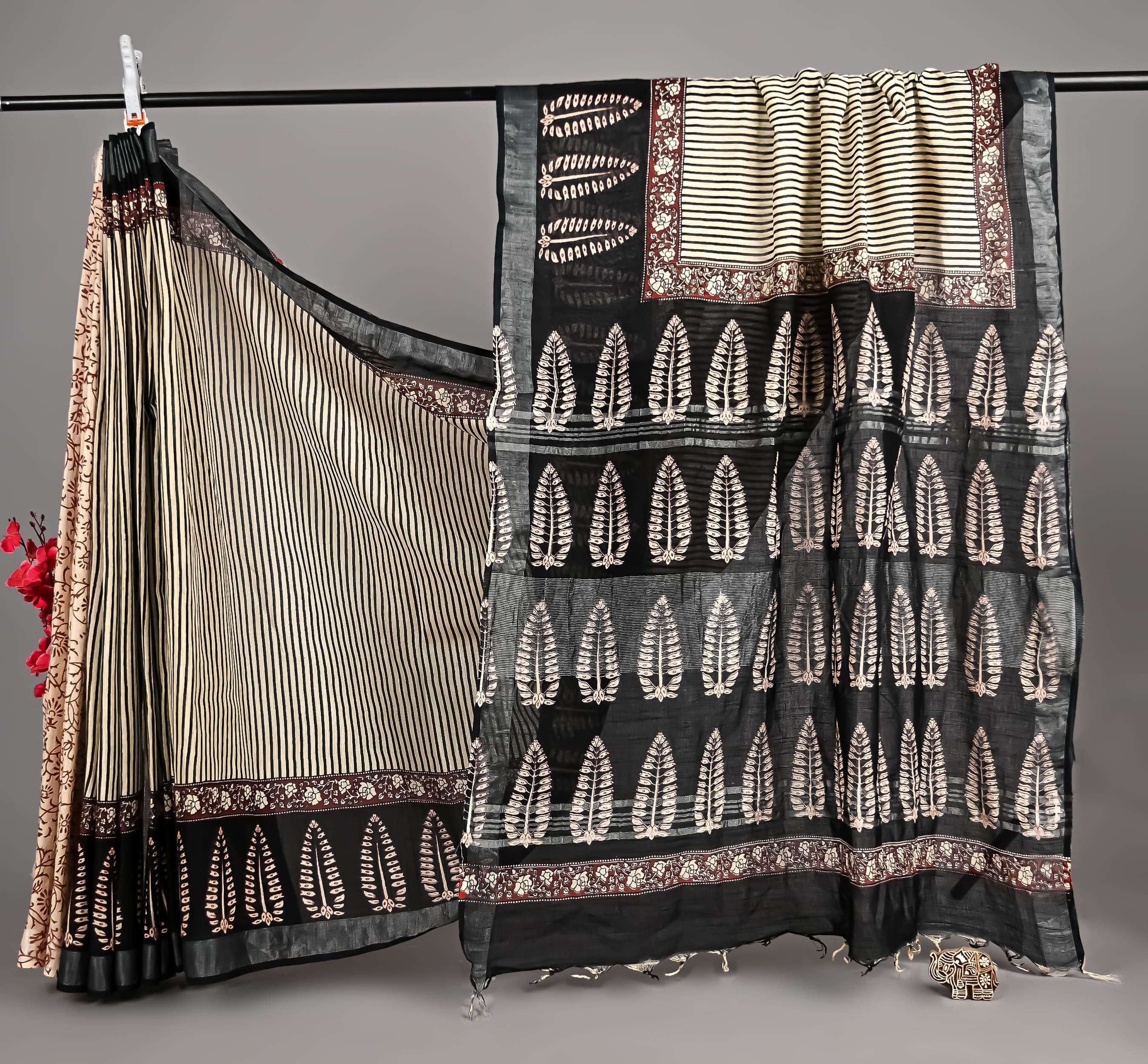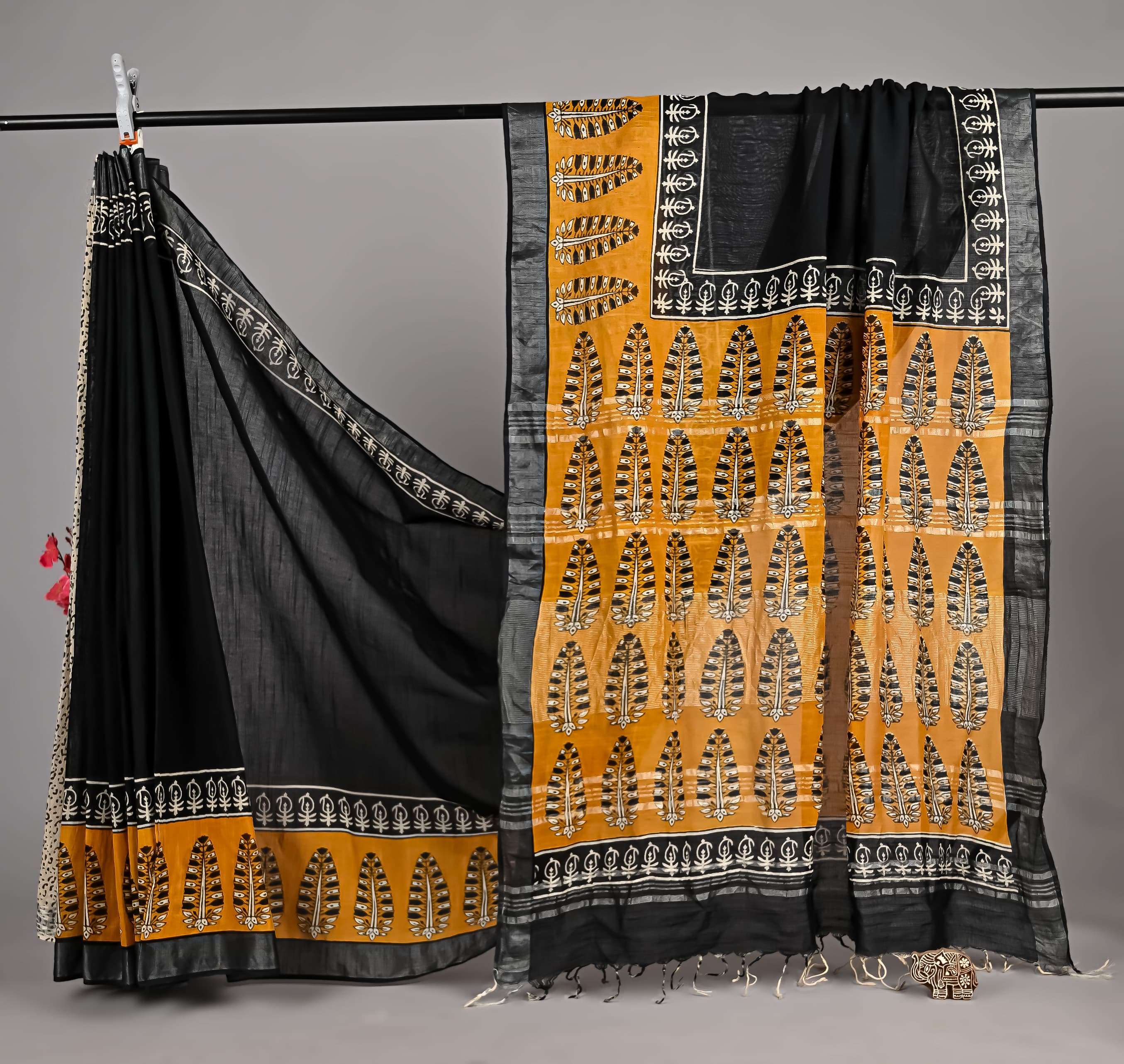 | Catalogue: | Shri Balaji Emporium RF17870 Hand Block Printed Cotton Linen Saree |