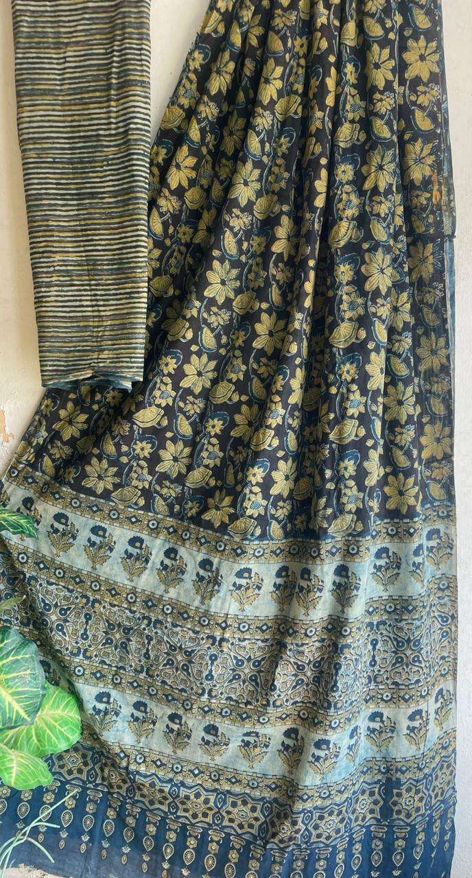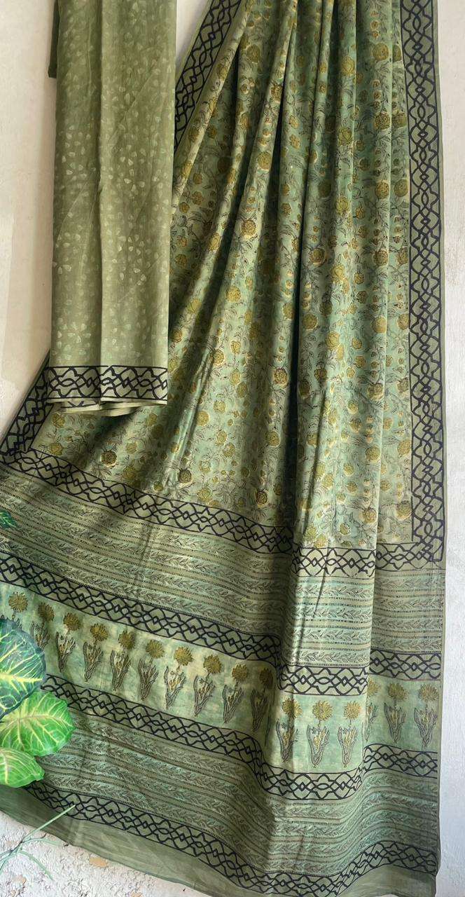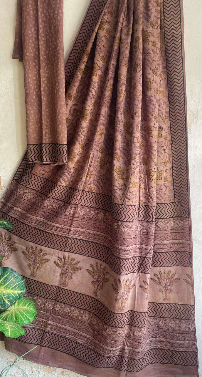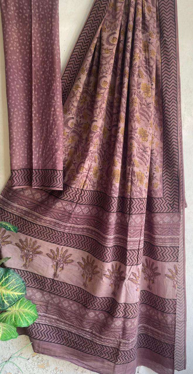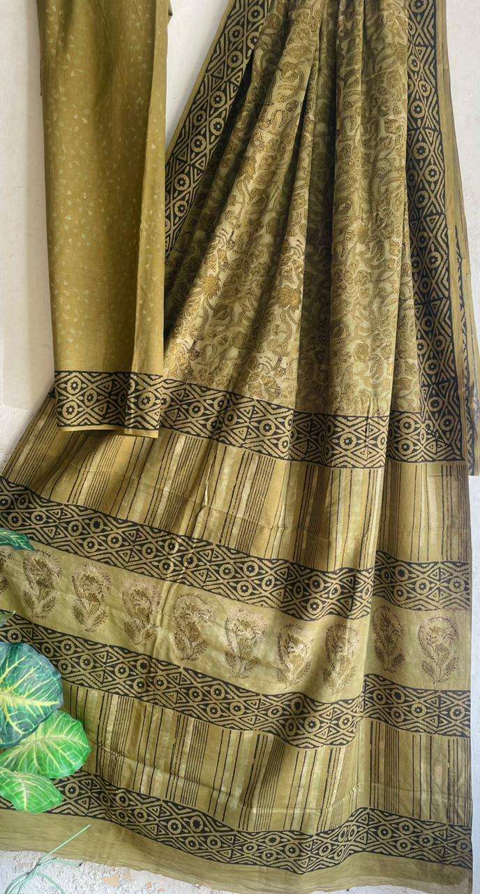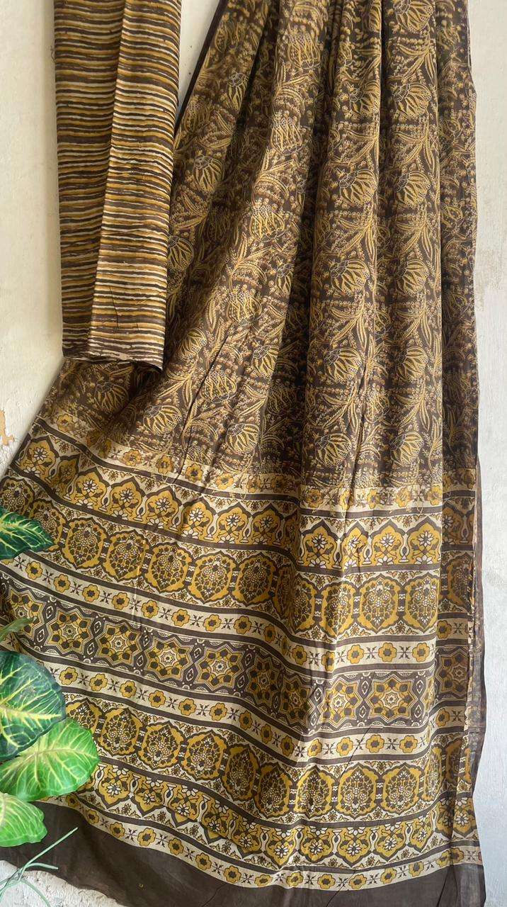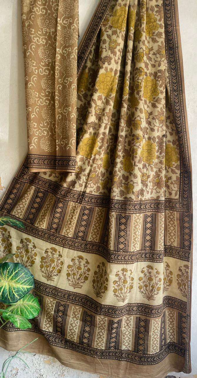 Exclusive hand block printed soft mul cotton sarees with blouse in vanaspati ajrak print
