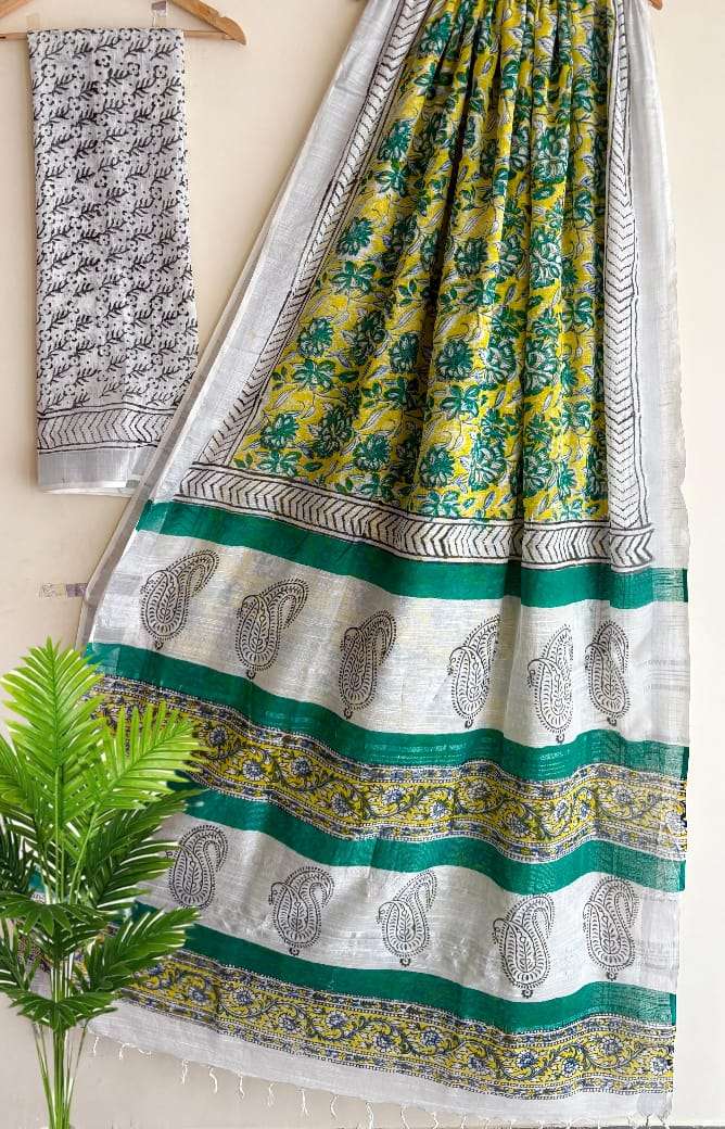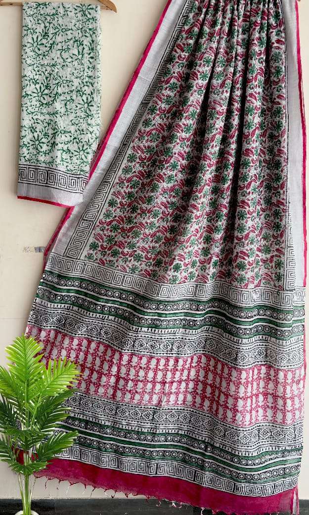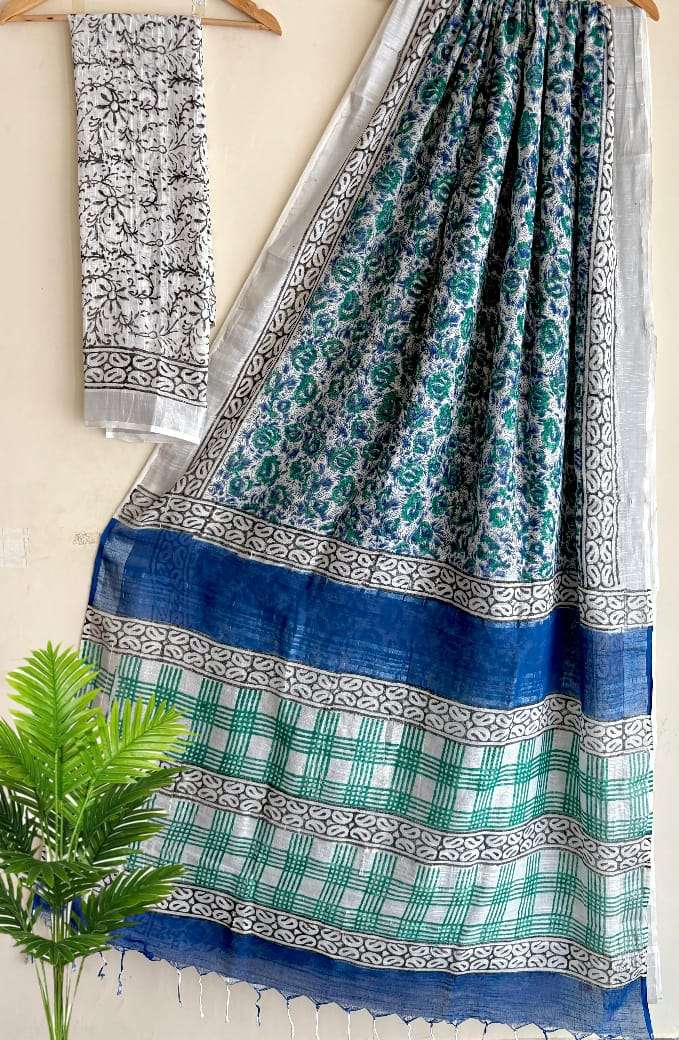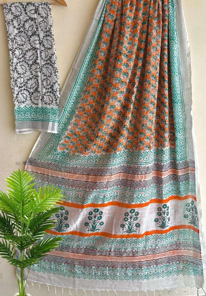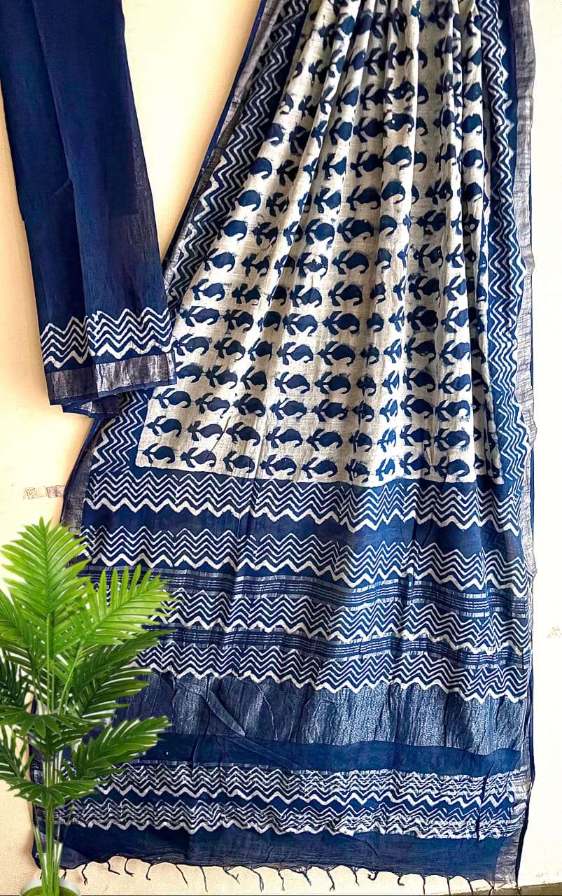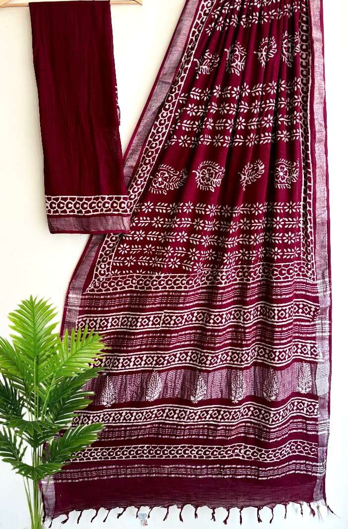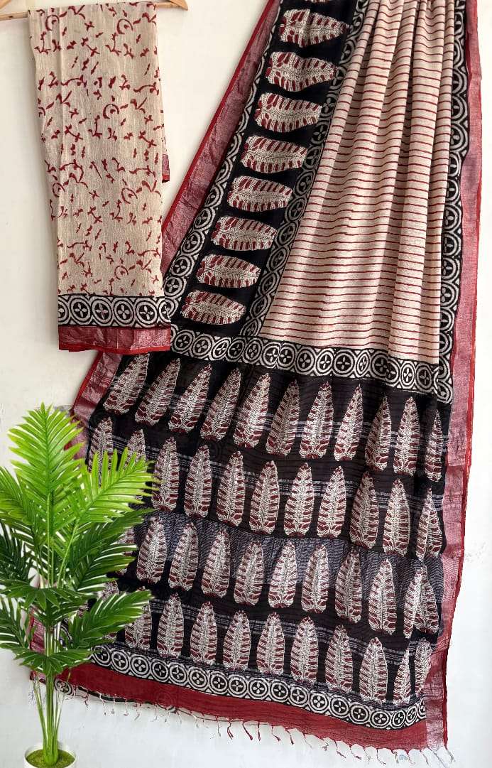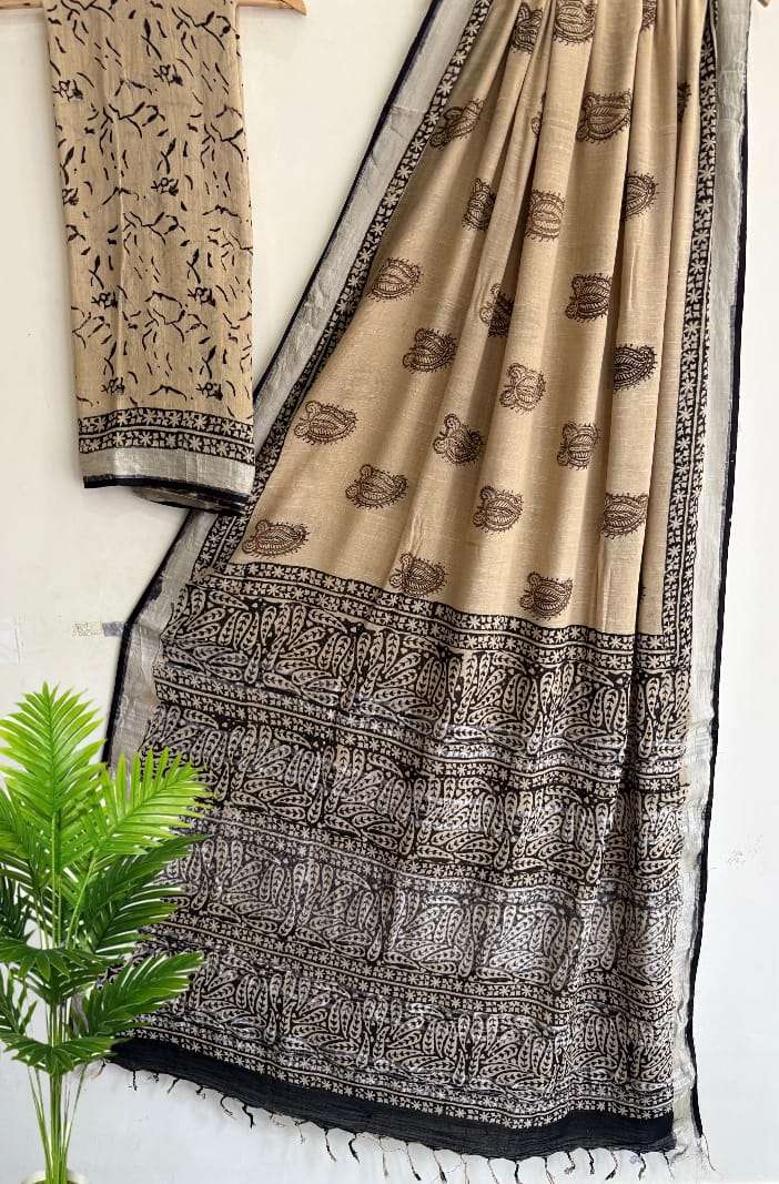 | Catalogue: | Shri Balaji Emporium RF18061 Bagru Hand Block Printed Linen Saree |