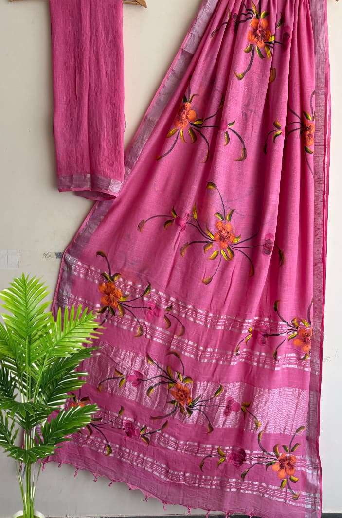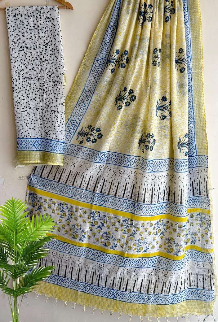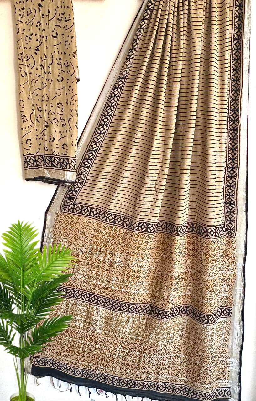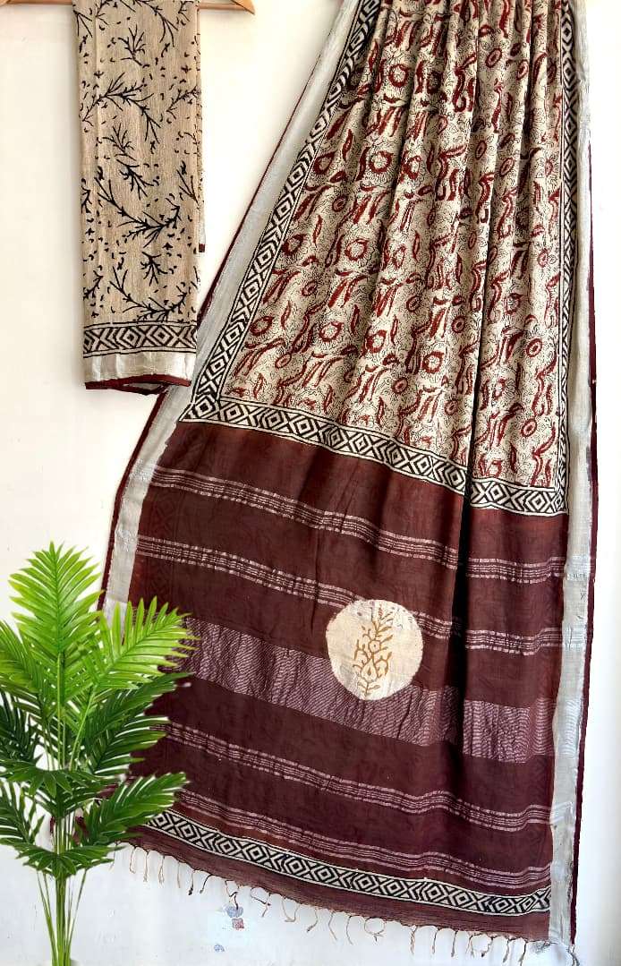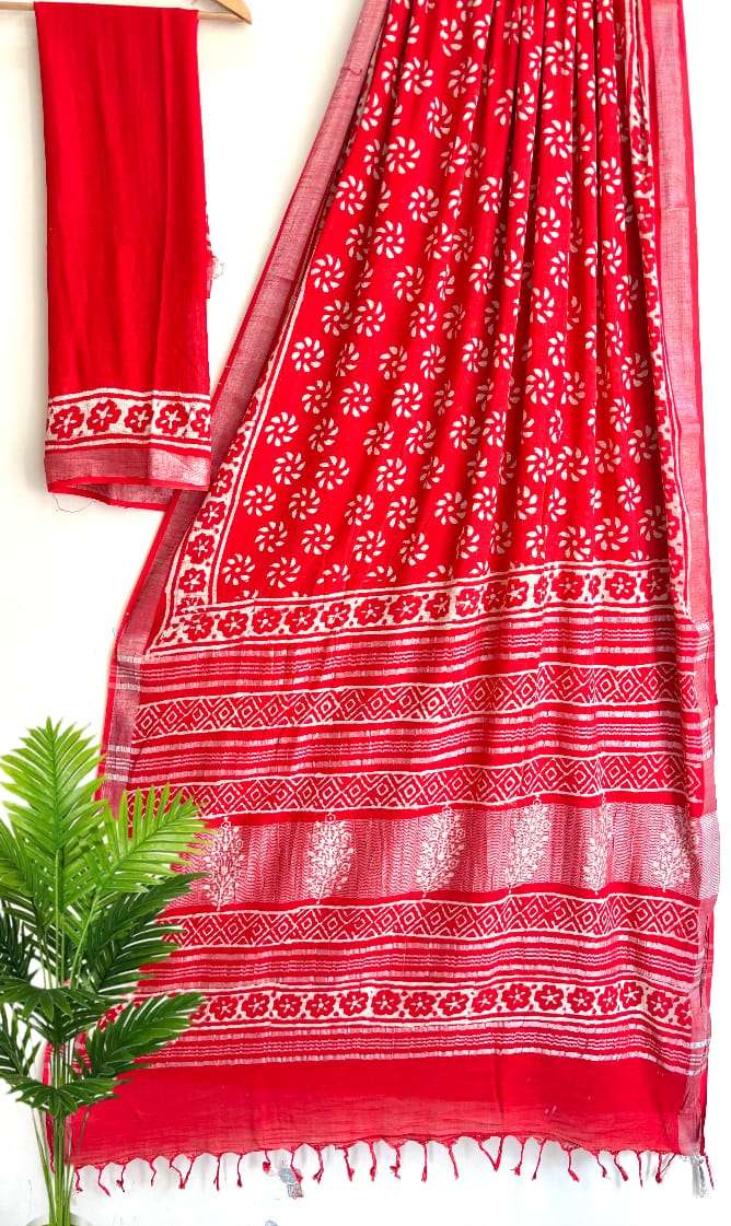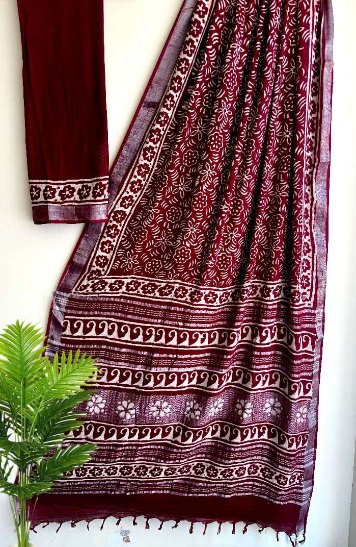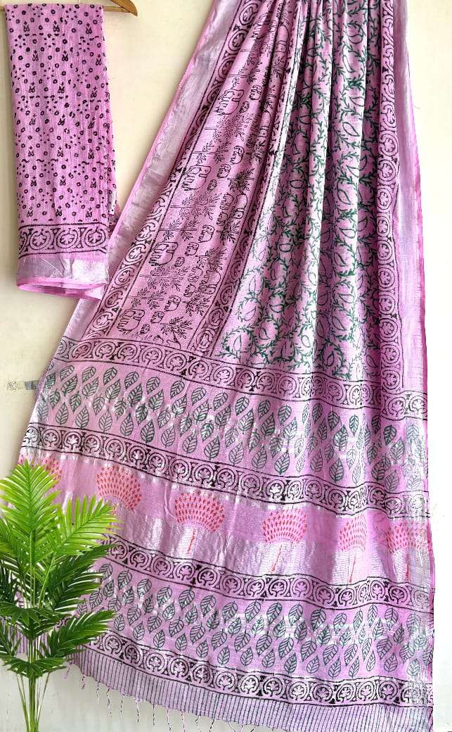 | Catalogue: | Shri Balaji Emporium RF18061 Bagru Hand Block Printed Linen Saree |