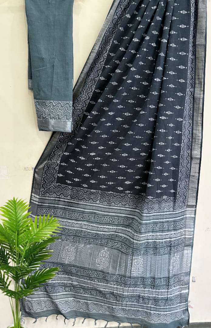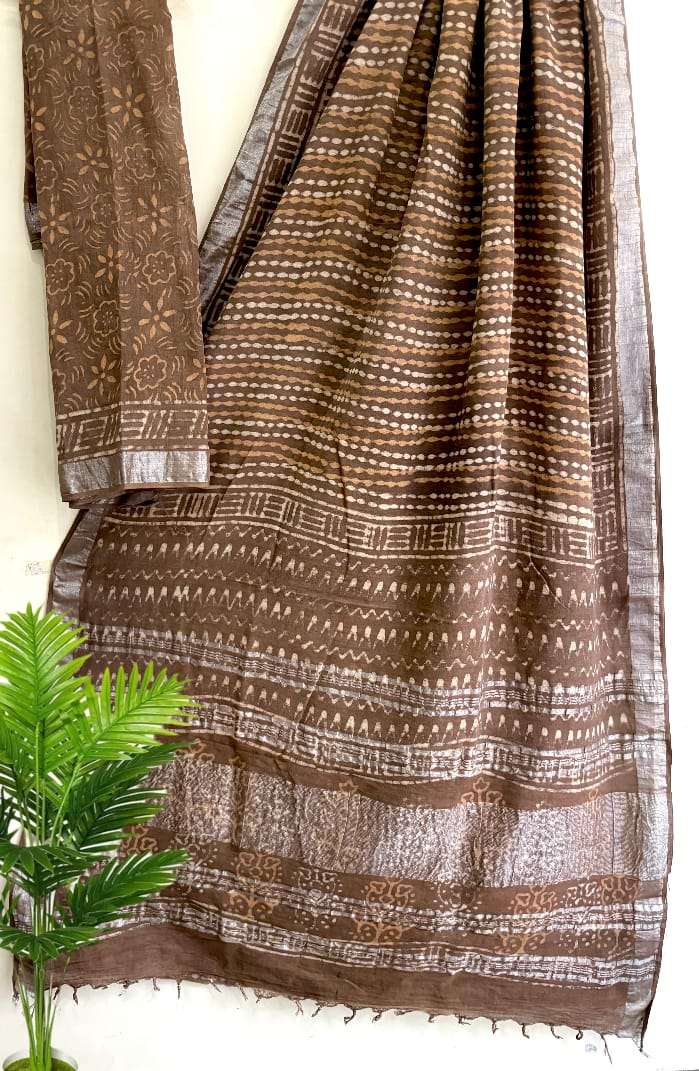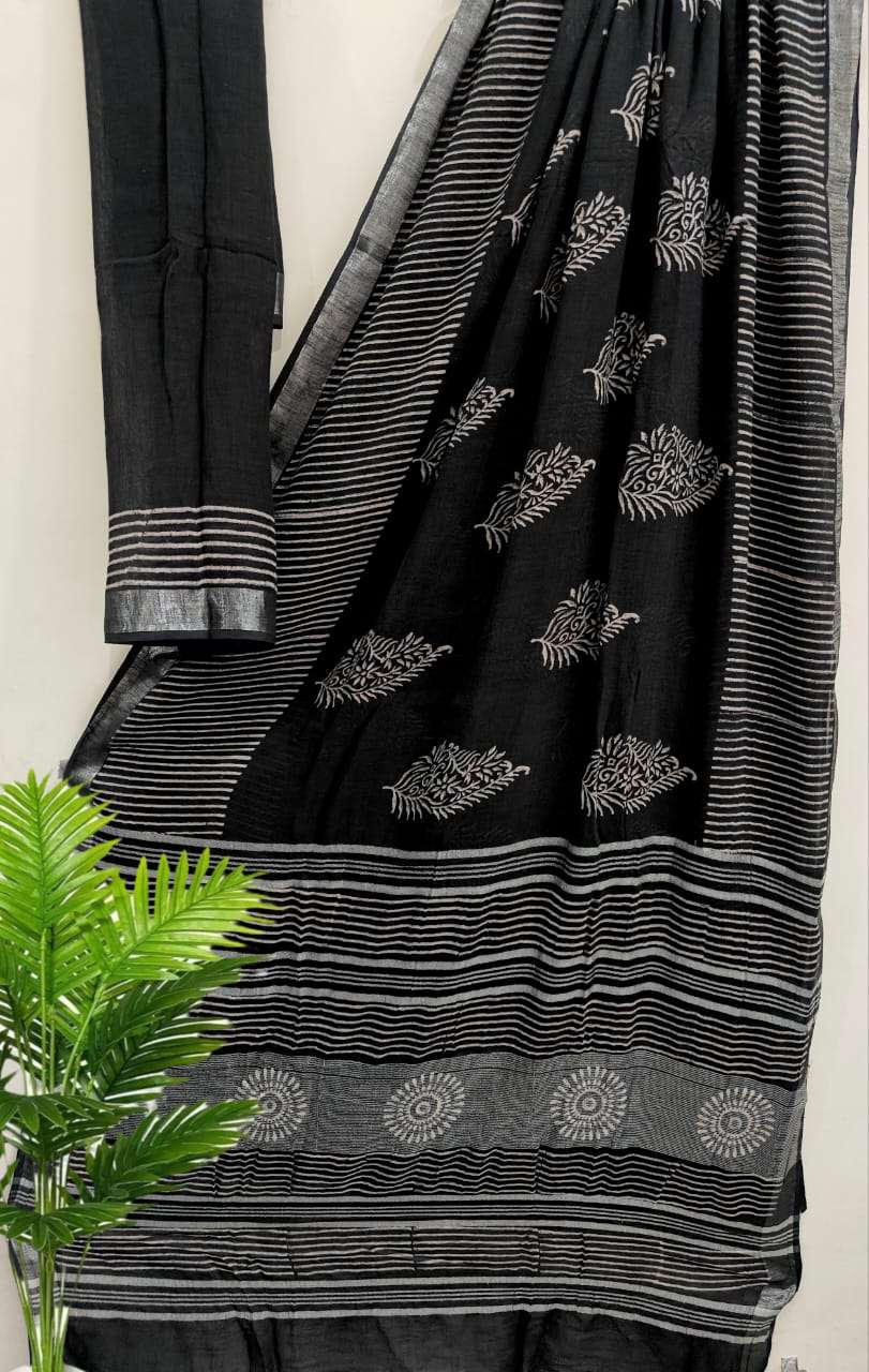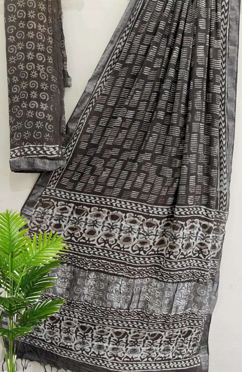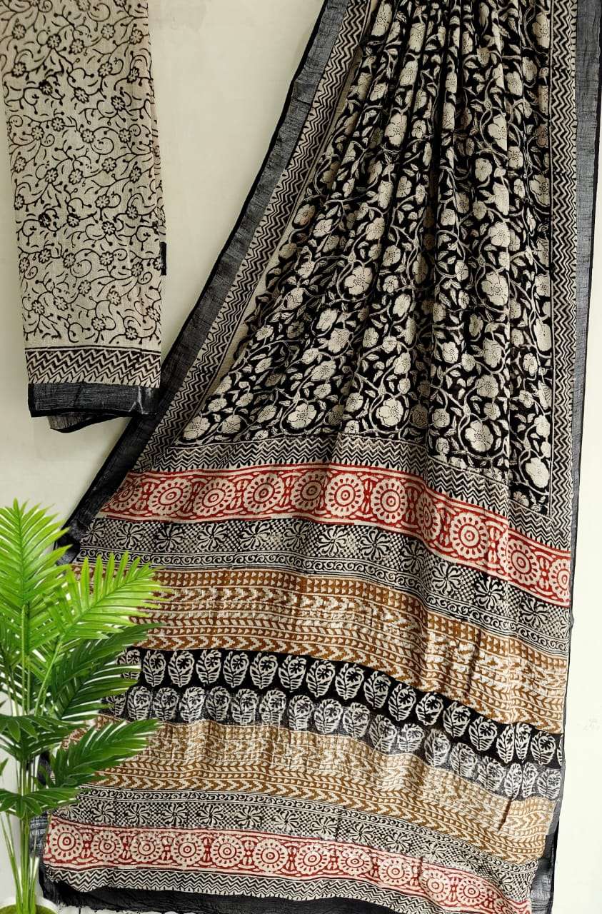 | Catalogue: | Shri Balaji Emporium RF18061 Bagru Hand Block Printed Linen Saree |