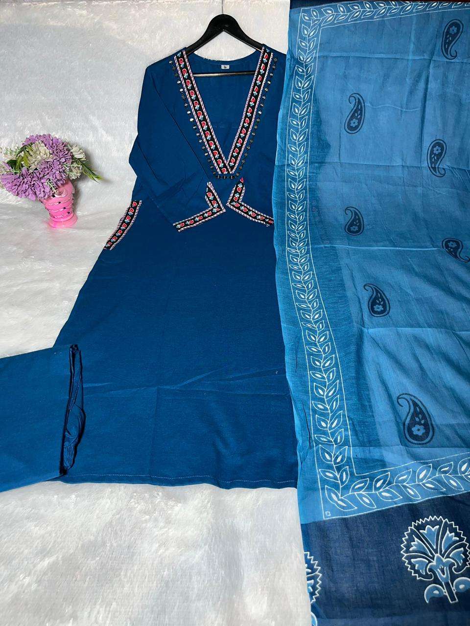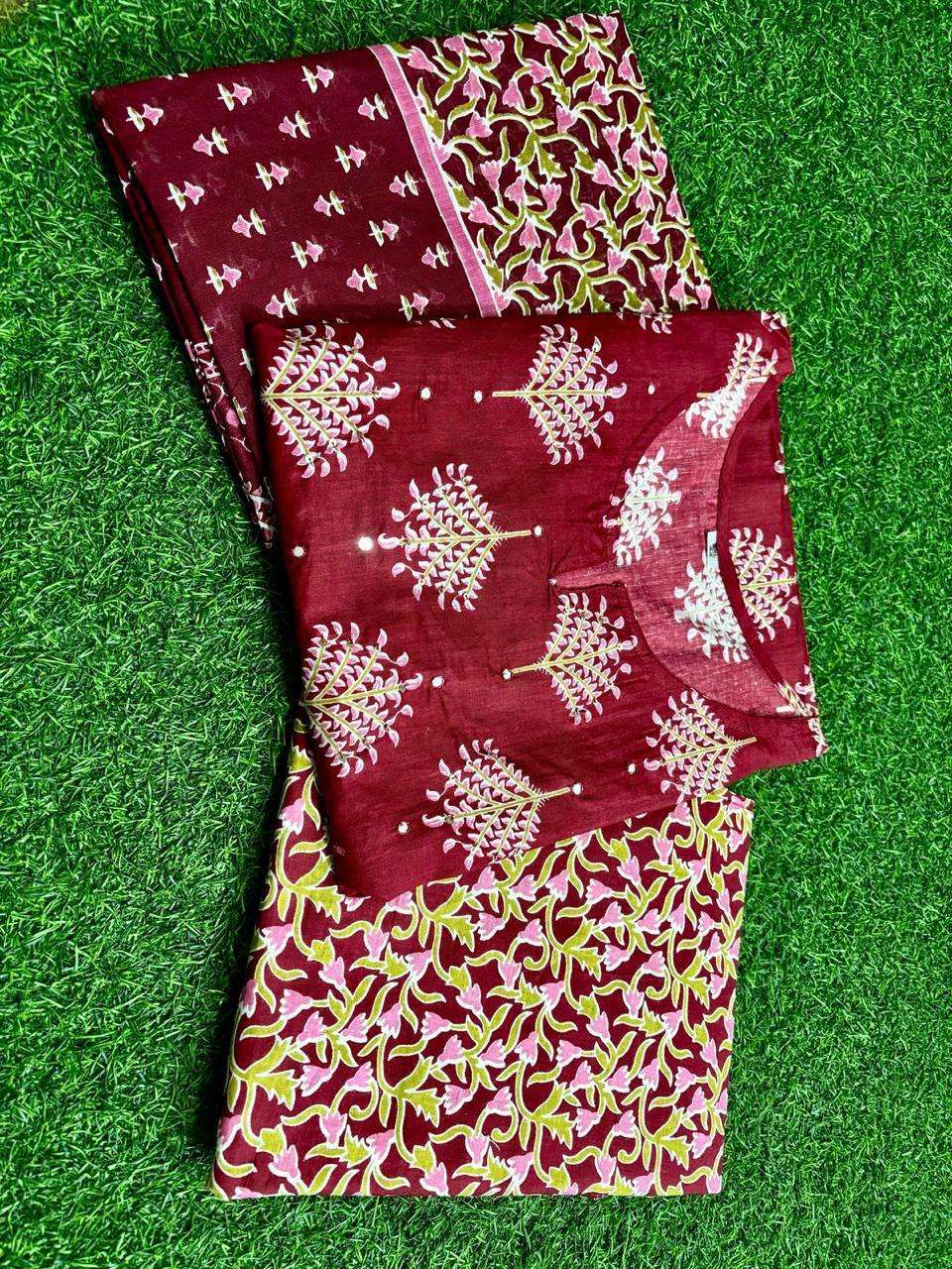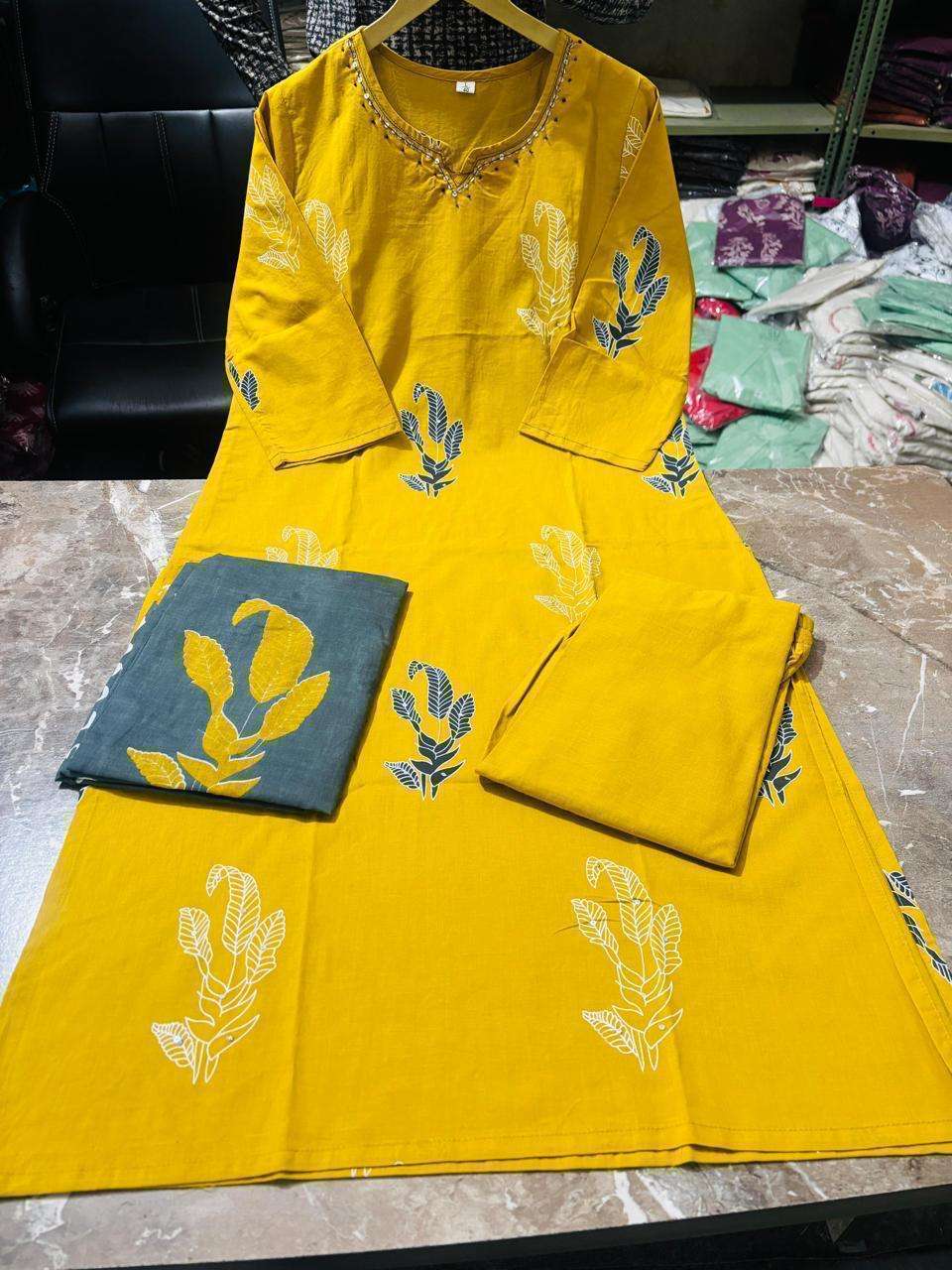 Pure fine Cotton fabric Kurti with Pant with cotton Sequence work 100-100 Dupatta