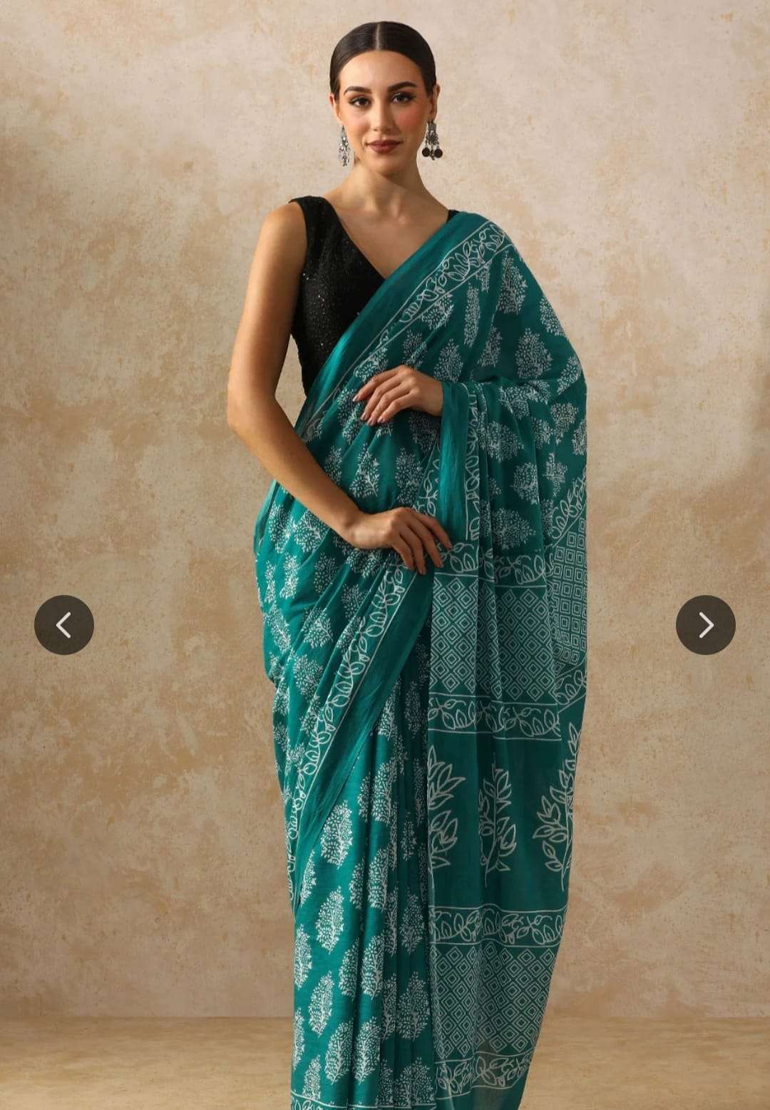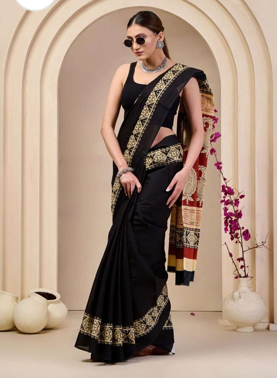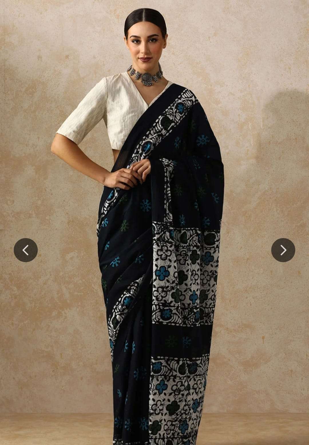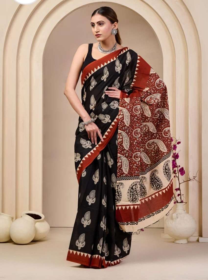 Bagru Block Print Cotton mulmul Sarees With Running Blouse
