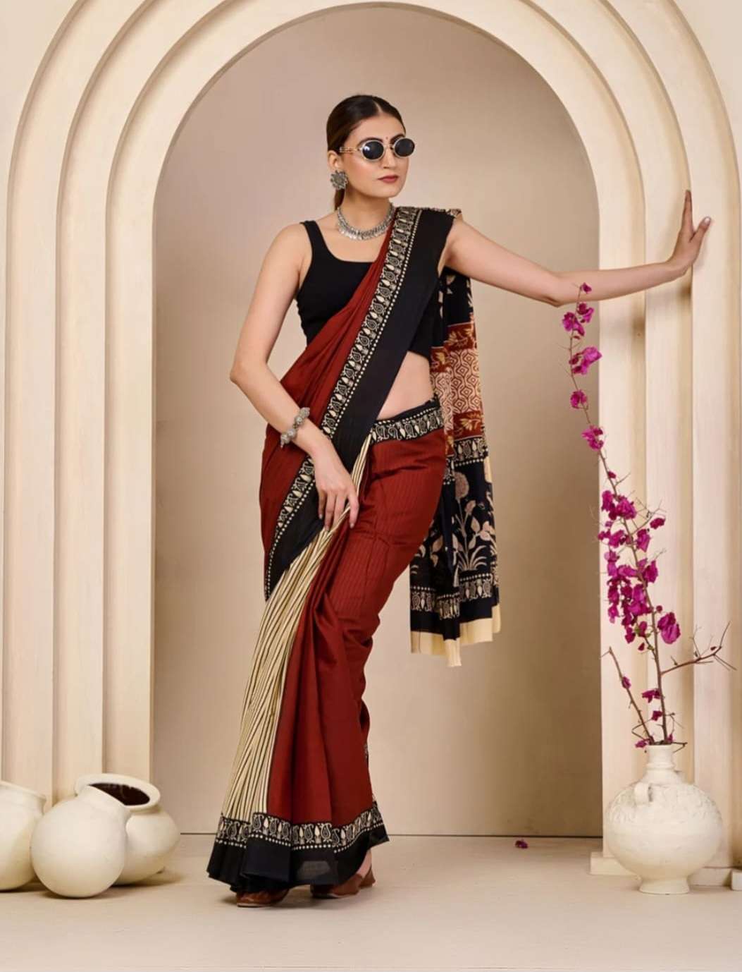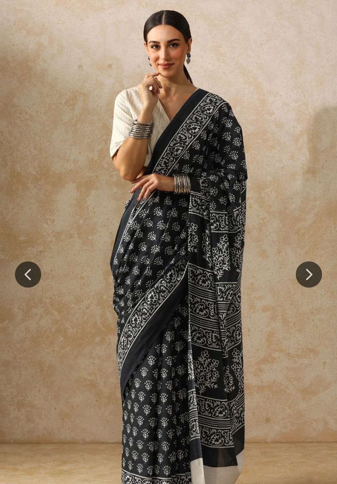 Bagru Block Print Cotton mulmul Sarees With Running Blouse