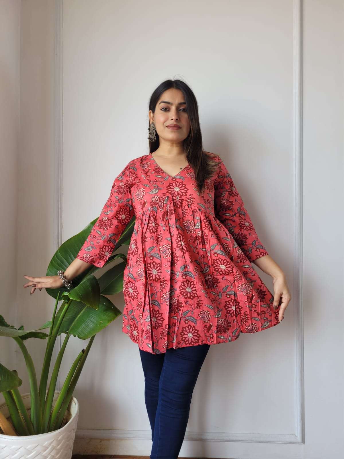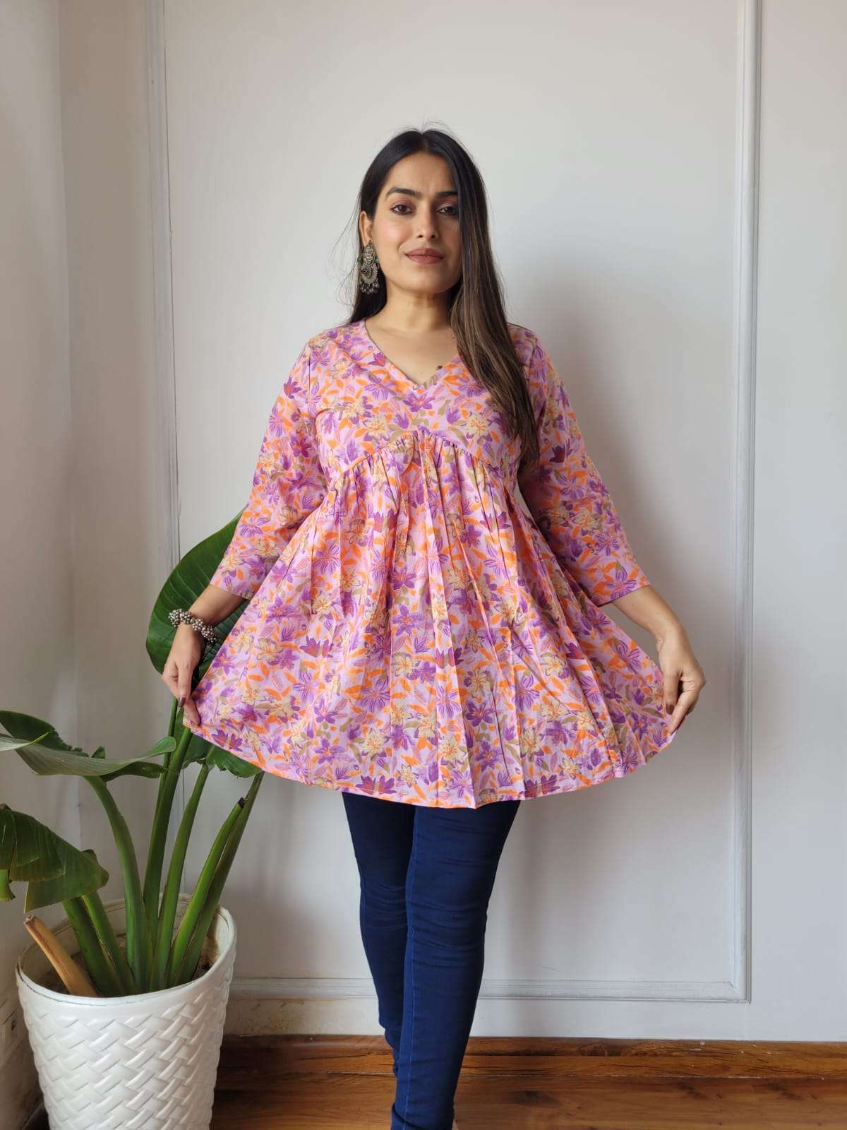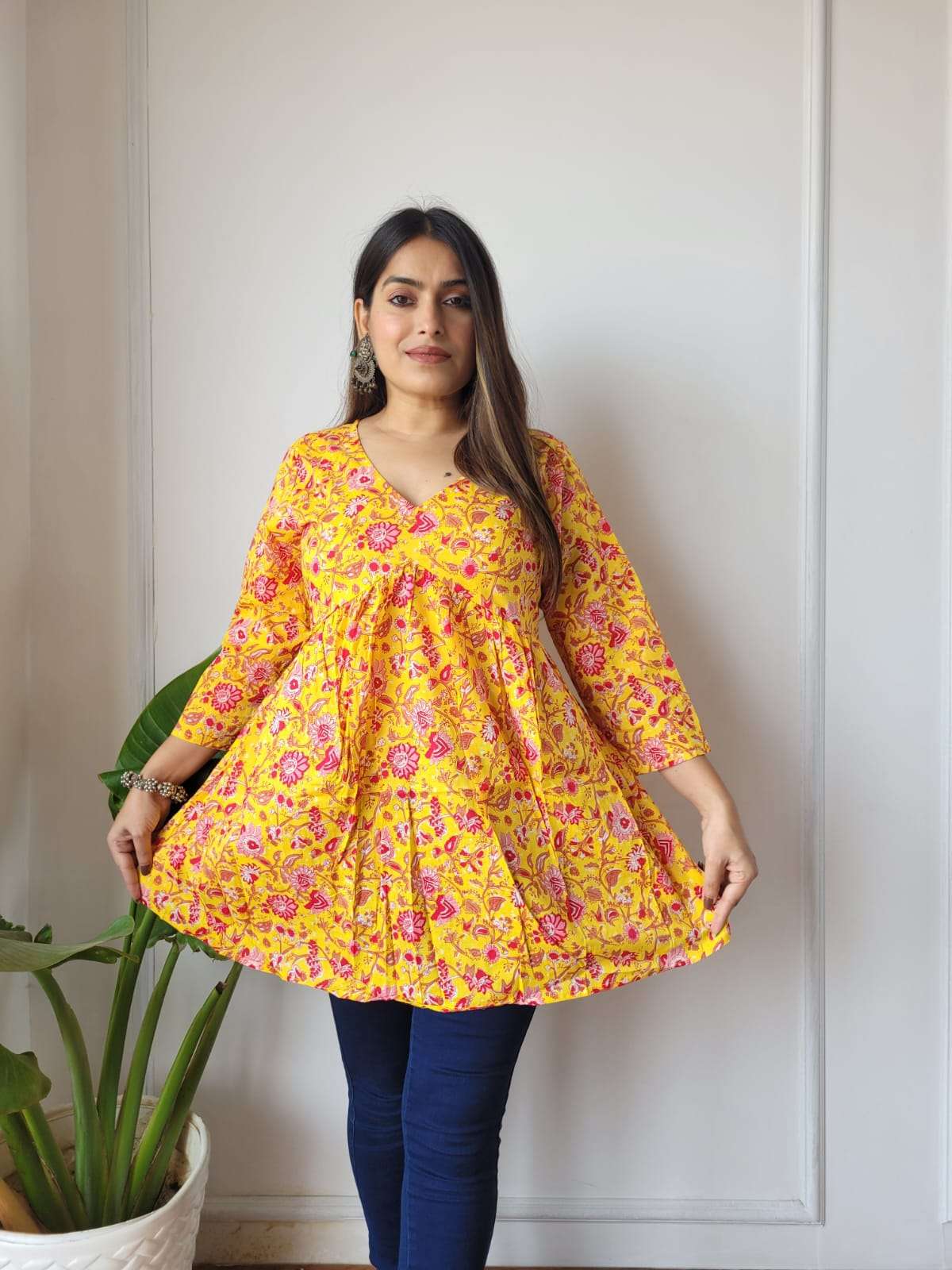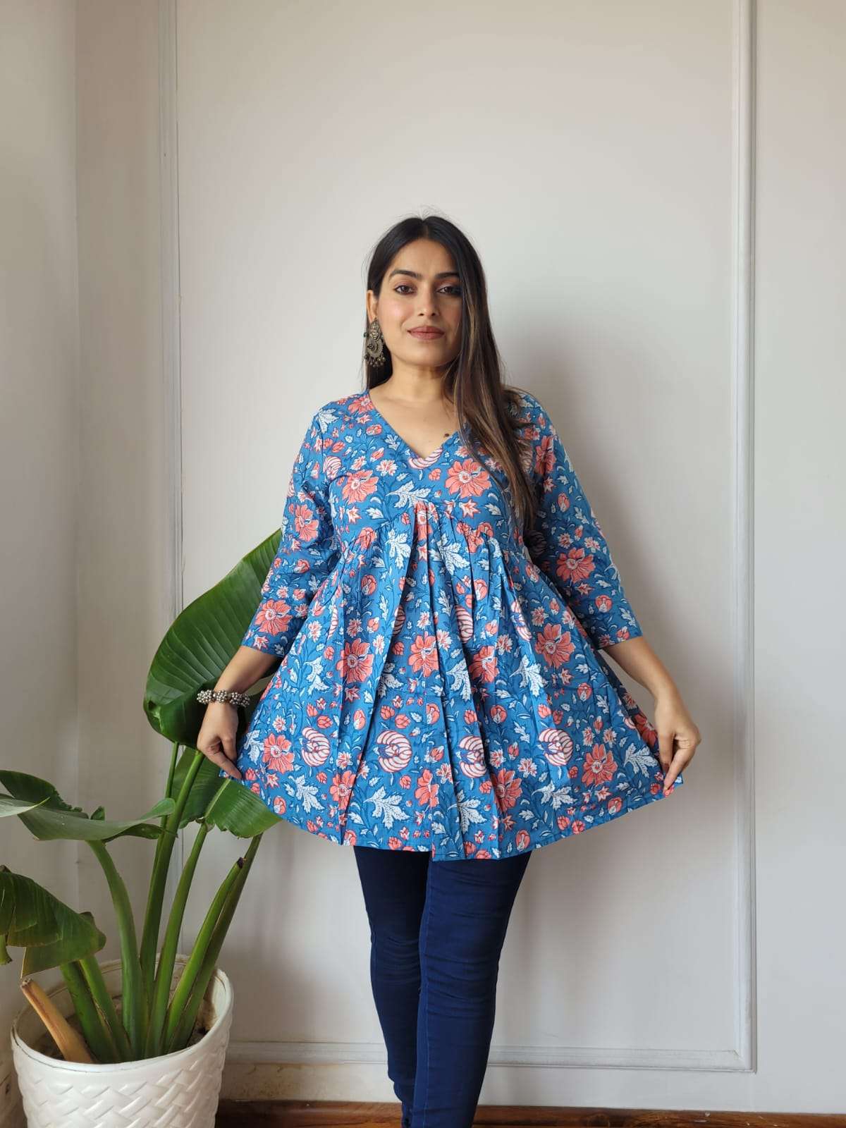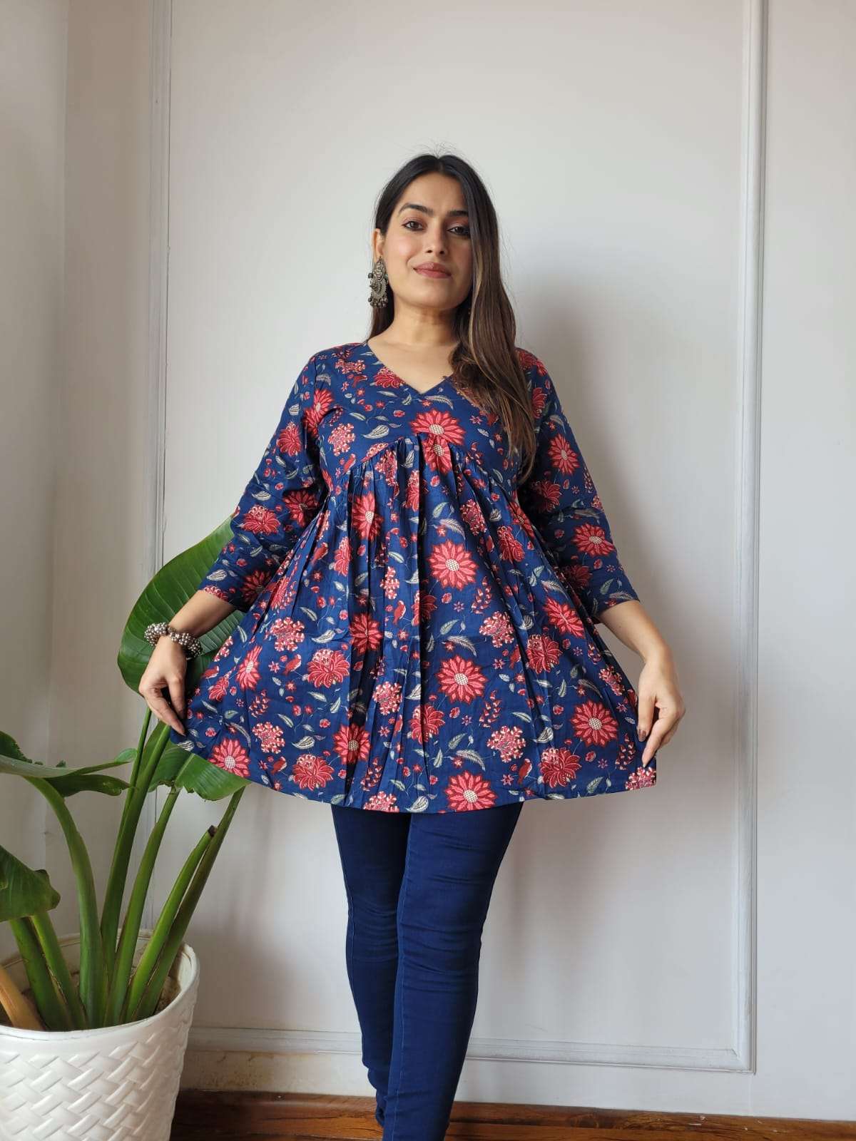 New Exclusive Collection of Hand Block Printed Cotton Frill Tops in Beautiful Colours .....