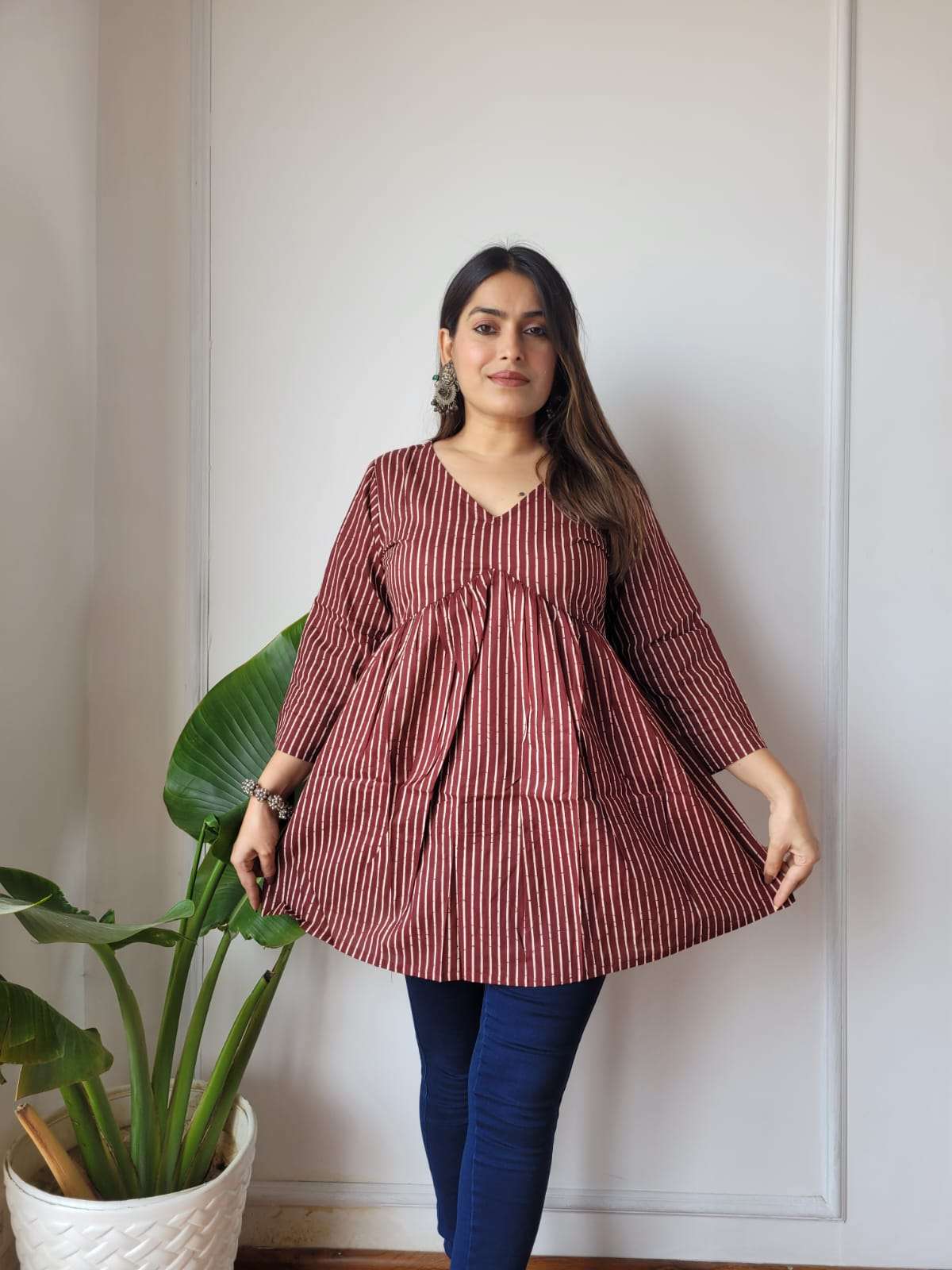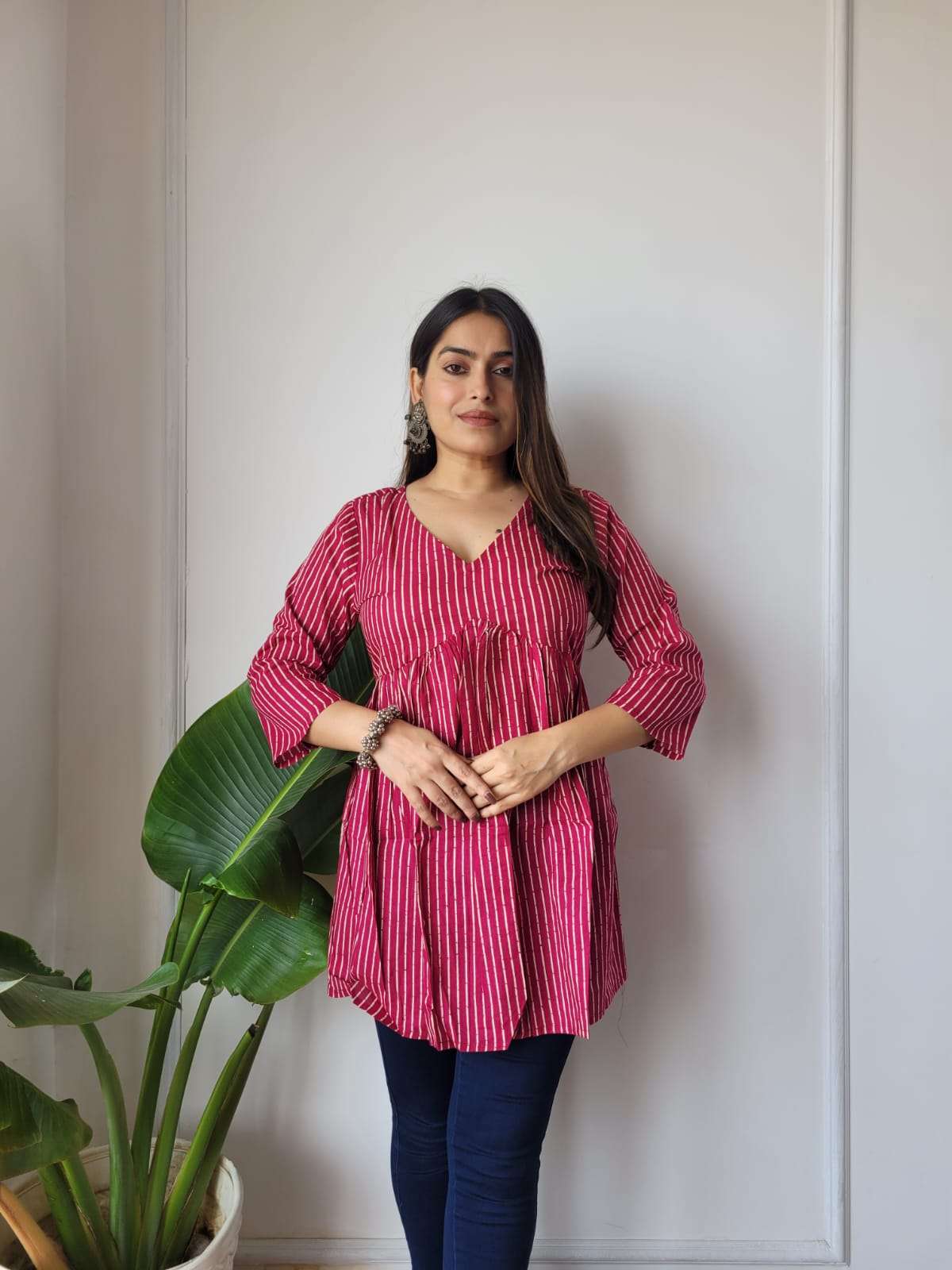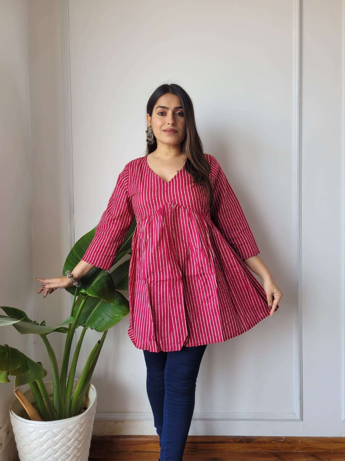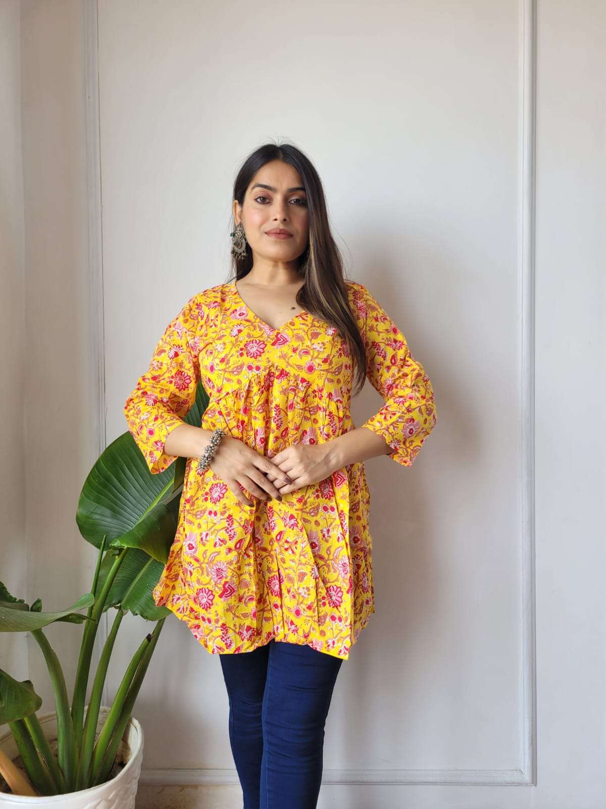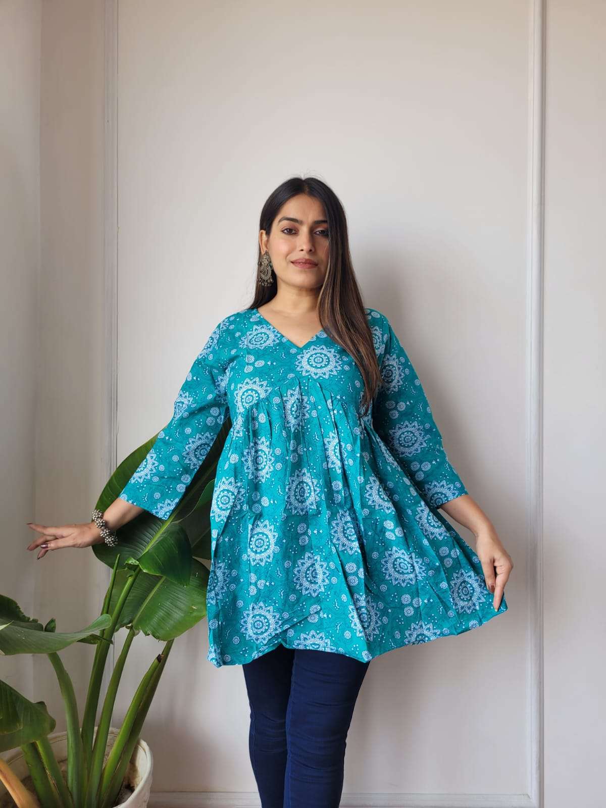 New Exclusive Collection of Hand Block Printed Cotton Frill Tops in Beautiful Colours .....