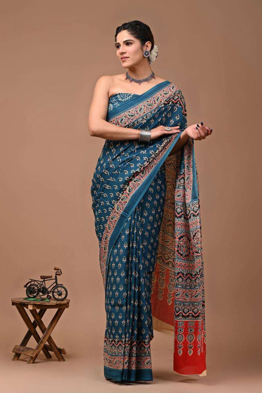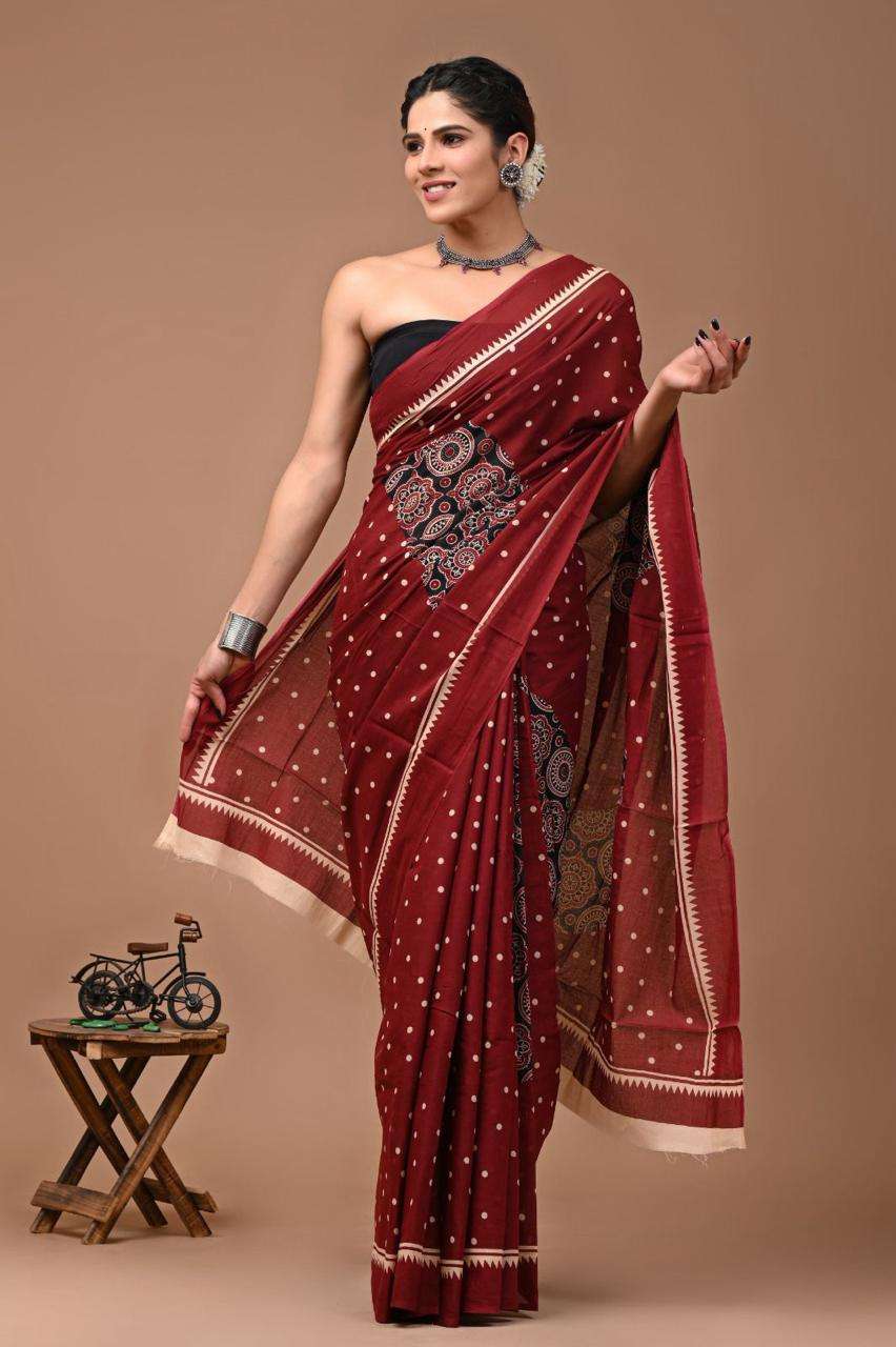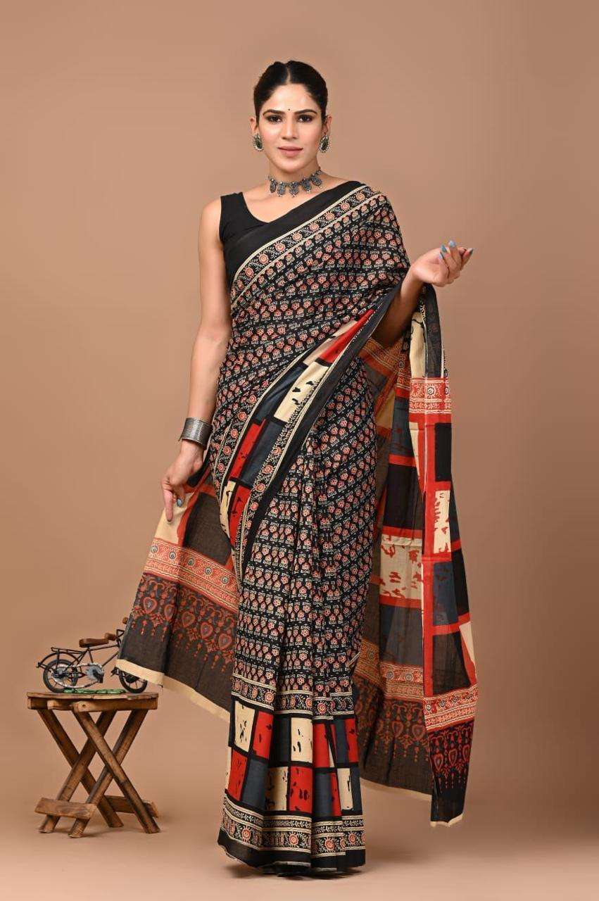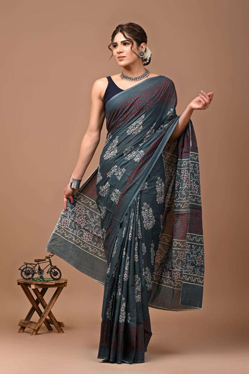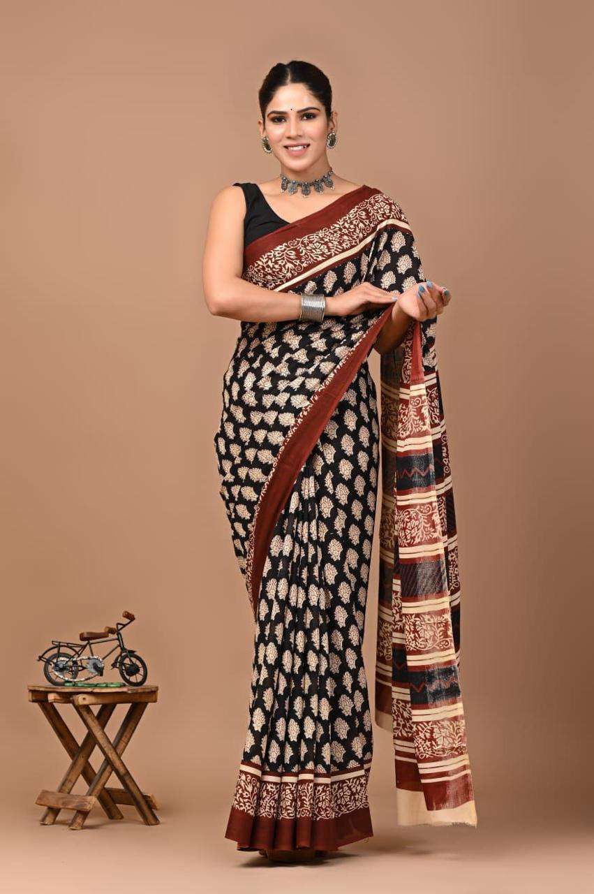 | Catalogue: | Shri Balaji Emporium RF19261 Bagru Hand Block Printed Pure Cotton Mulmul Saree |
