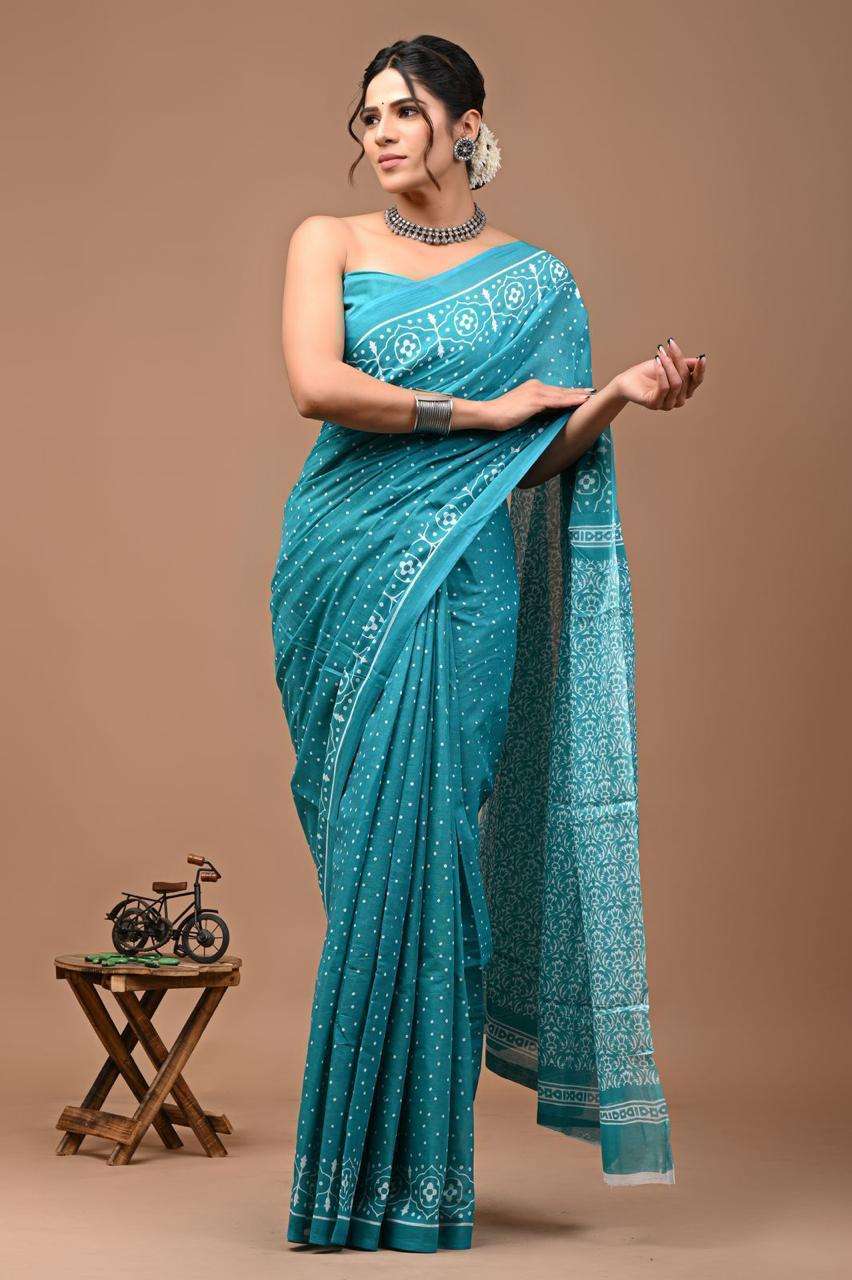 New Printed Cotton mulmul sarees with blouse piece....