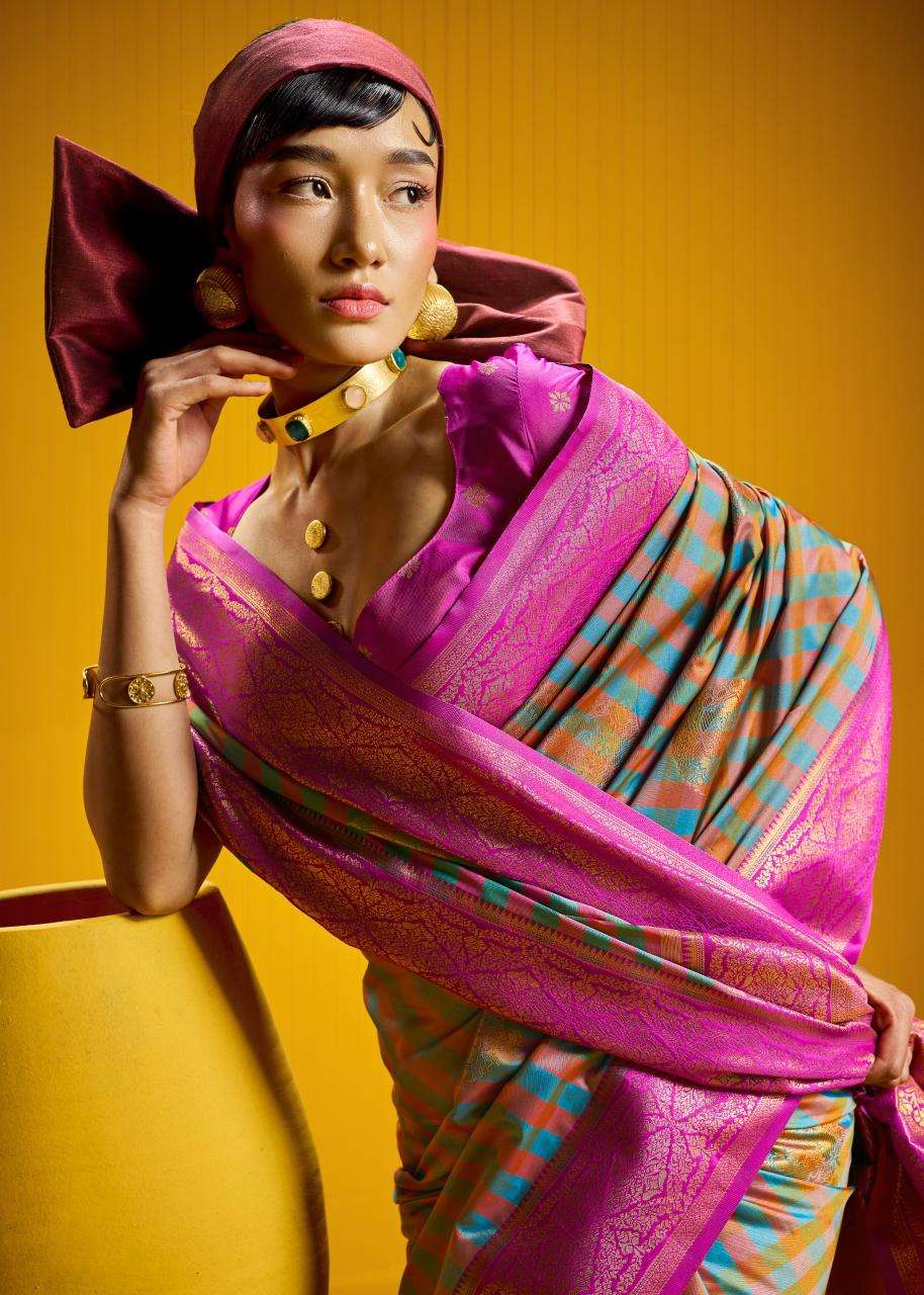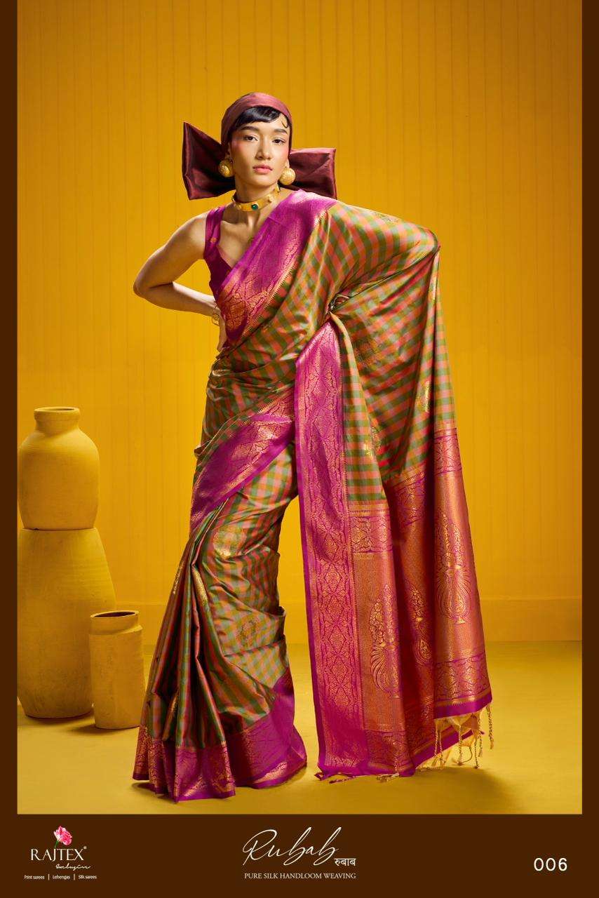 | Catalogue: | Shri Balaji Emporium Rubab 001 TO 006 Pure Silk Tone Cheks Handloom Weaving Saree collection |