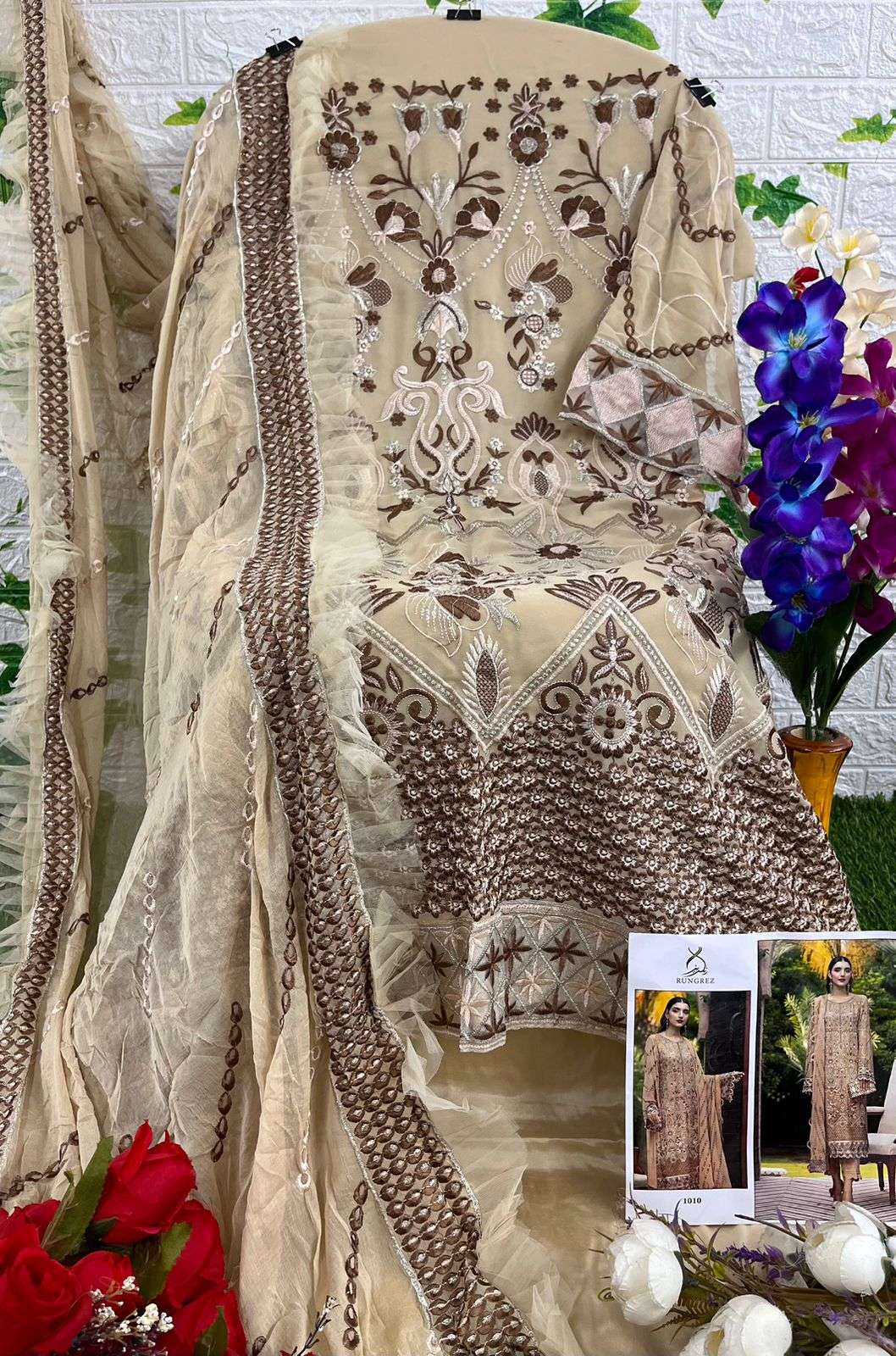 | Catalogue: | Shri Balaji Emporium RUNGREZ 1010 Heavy Embroidered Faux Georgette Suit |