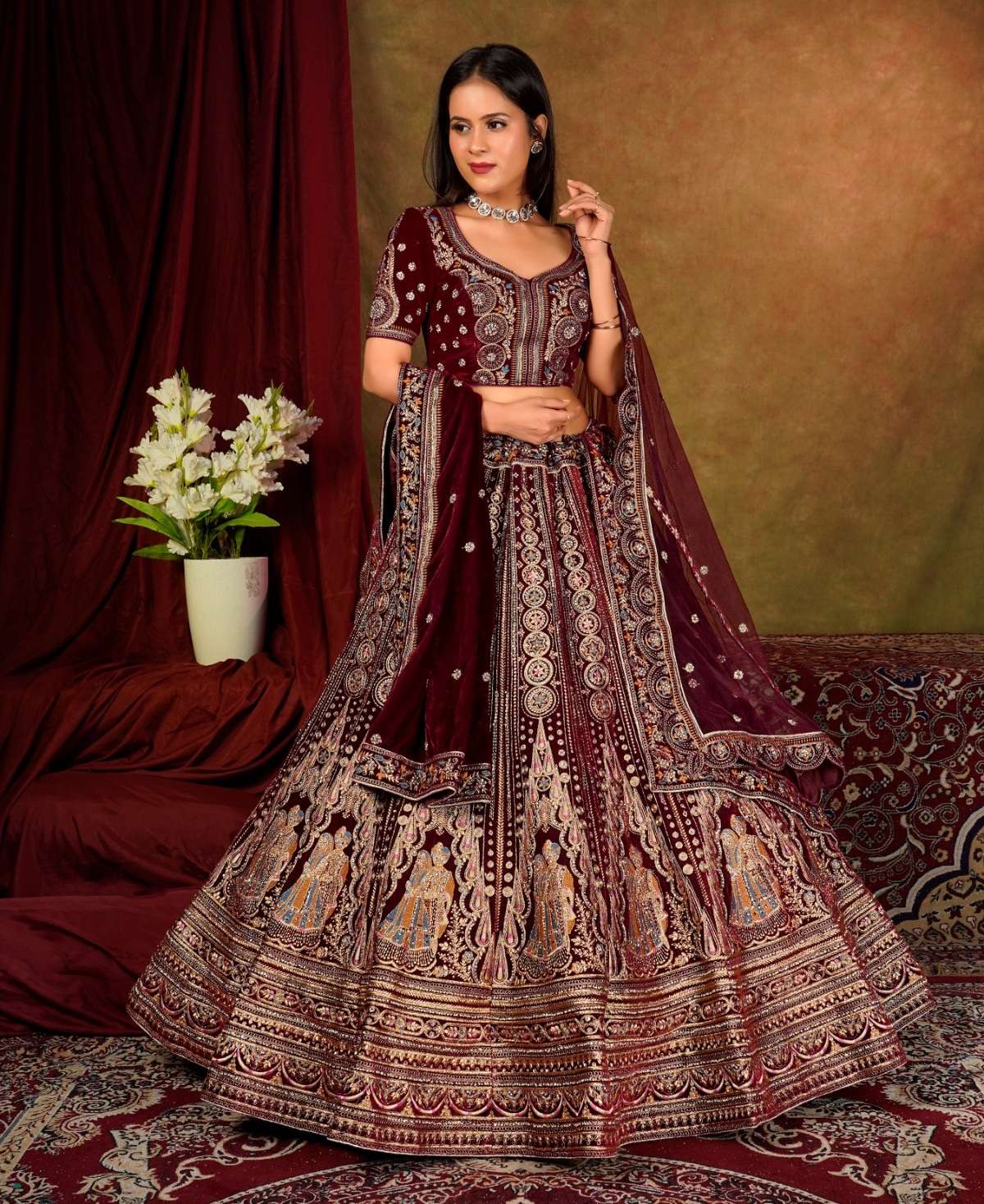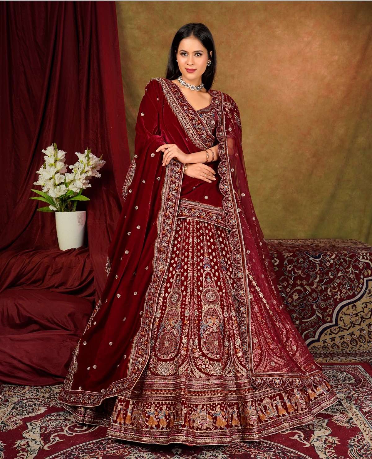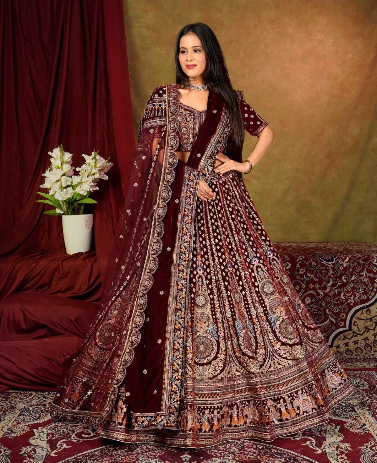 | Catalogue: | Shri Balaji Emporium SBG 18102 Beautiful Embroidered Velvet Designer Bridal Lehenga |