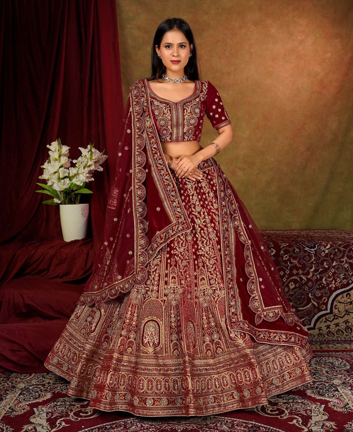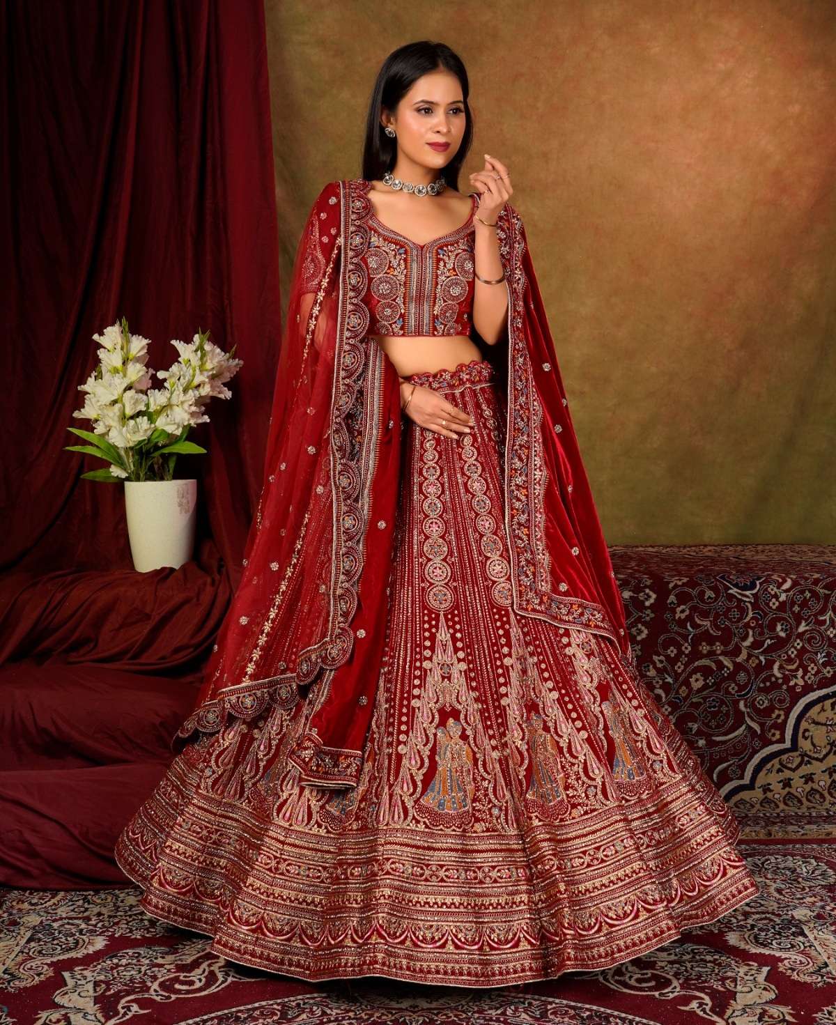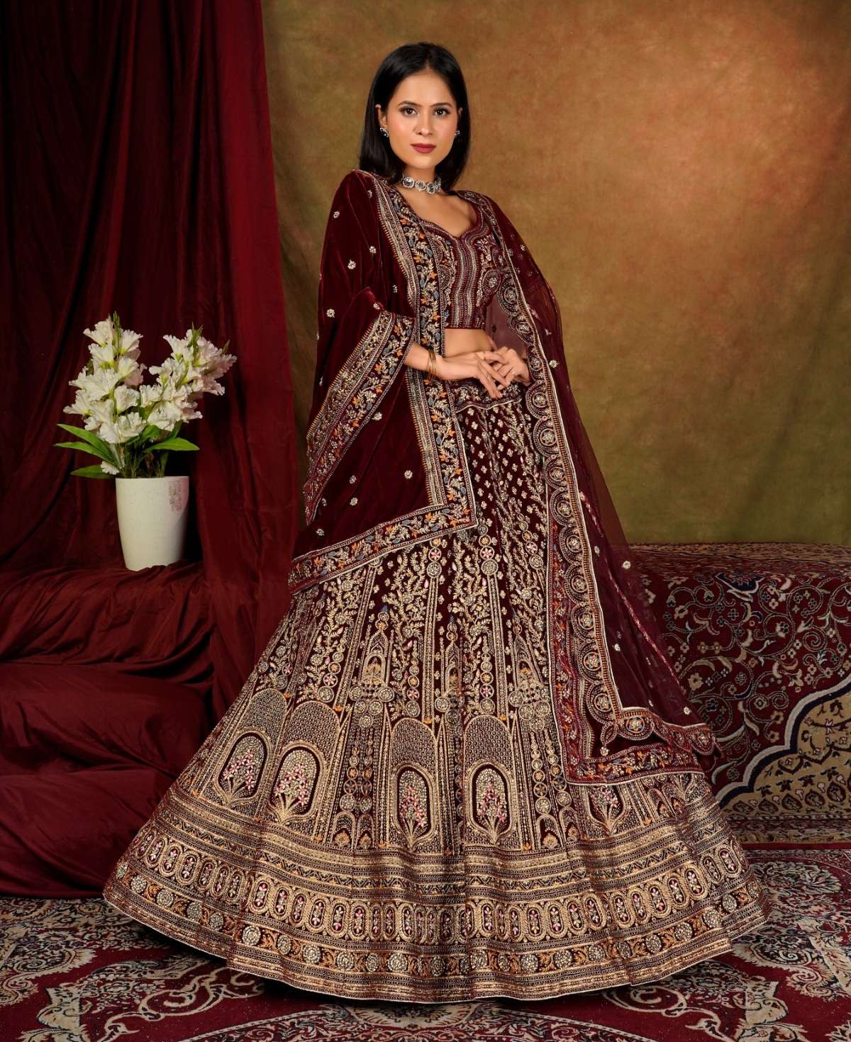 | Catalogue: | Shri Balaji Emporium SBG 18102 Beautiful Embroidered Velvet Designer Bridal Lehenga |