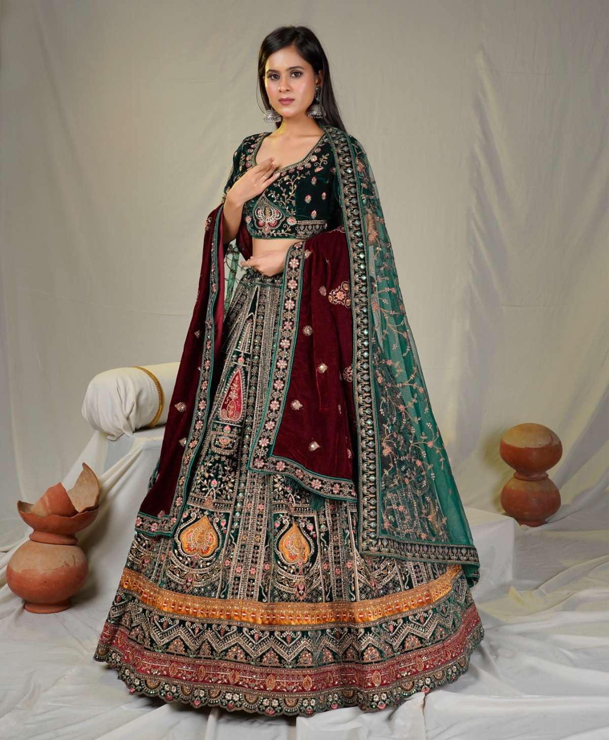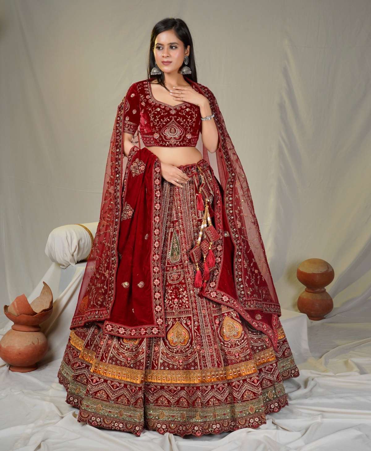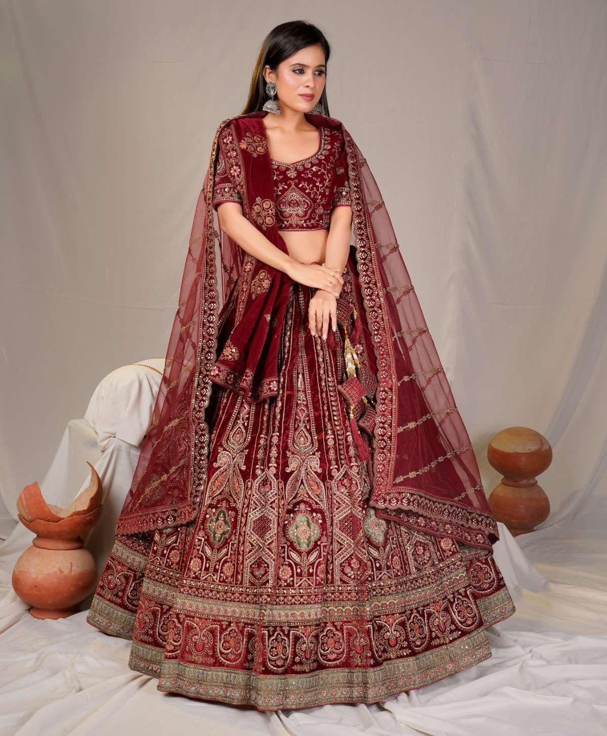 | Catalogue: | Shri Balaji Emporium SBG 18619 Bridal Embroidered Hand Work Velvet Lehenga Choli |