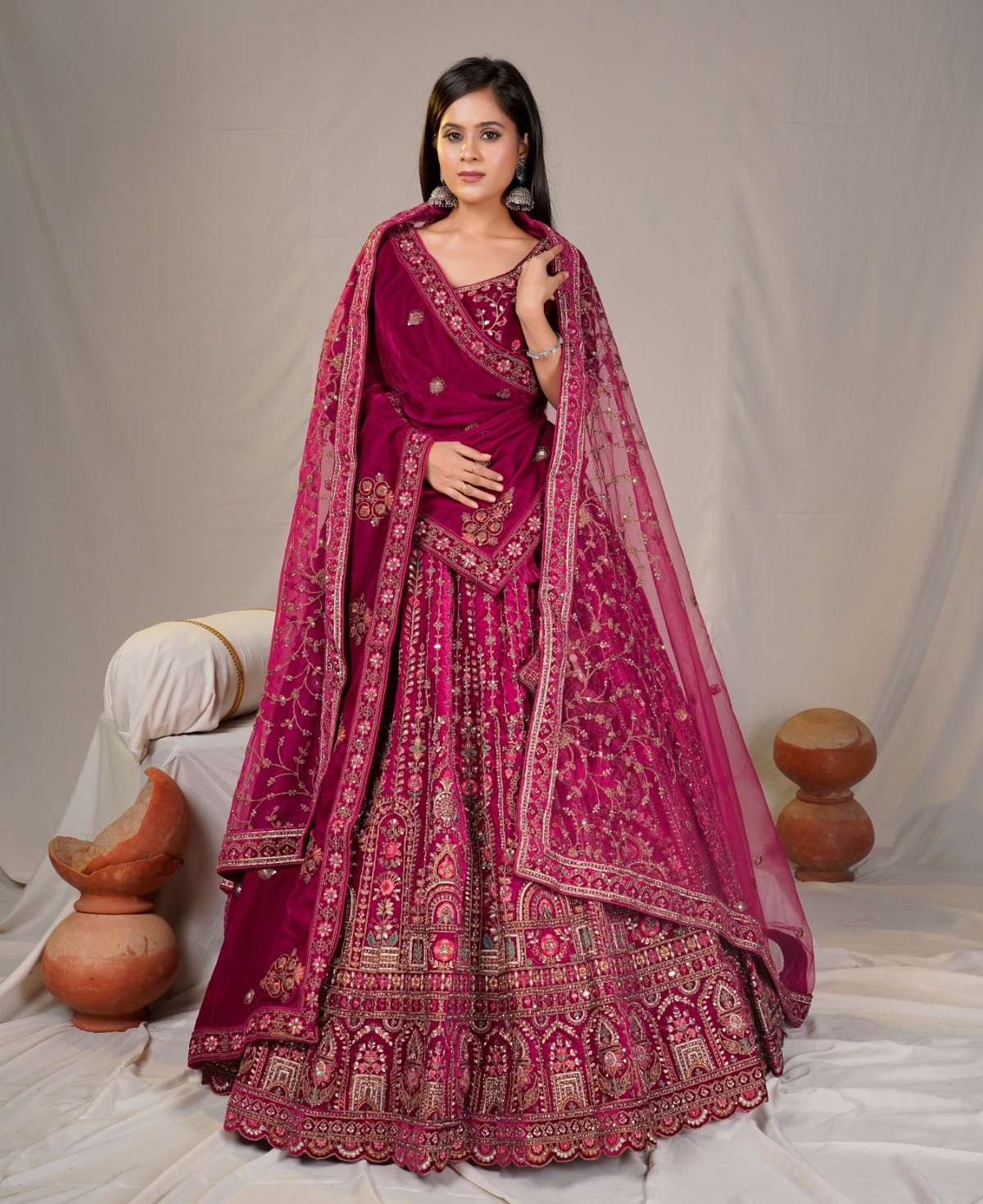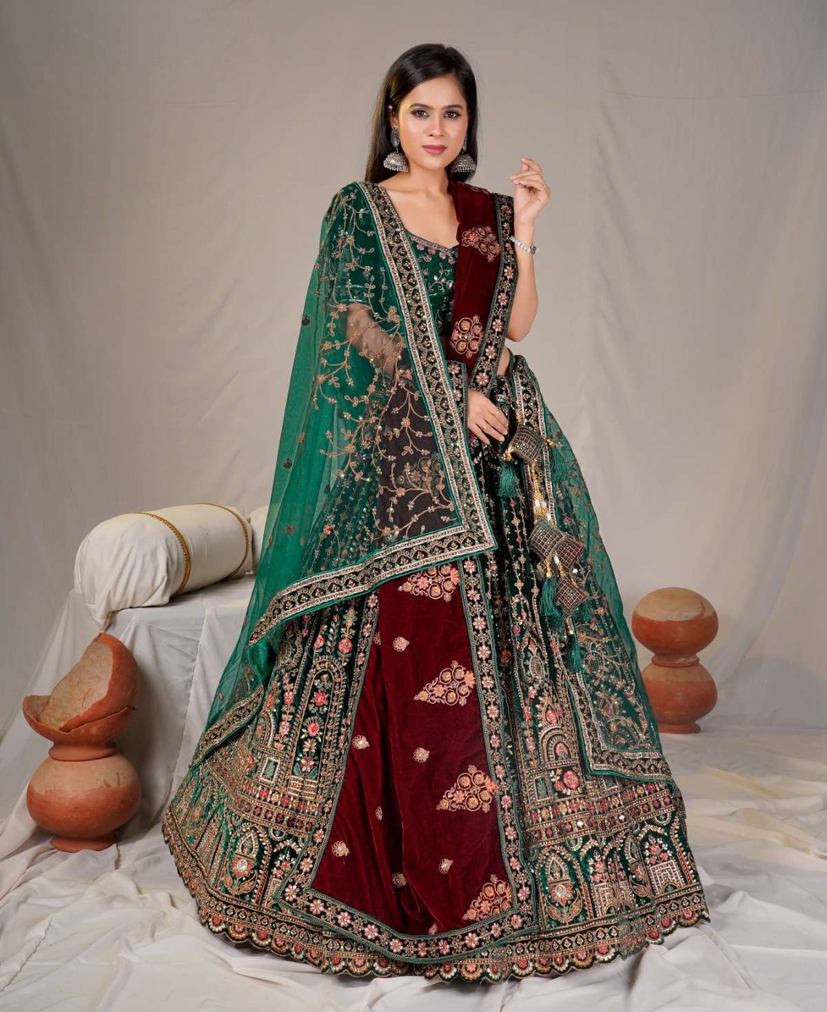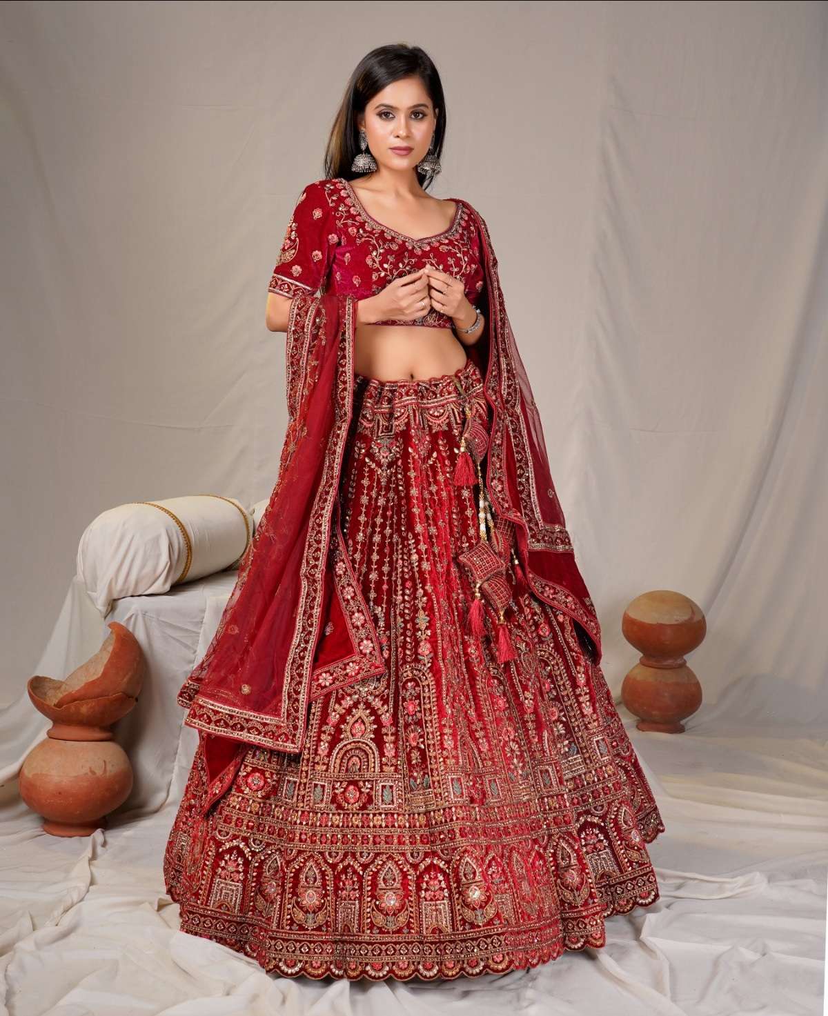| Catalogue: | Shri Balaji Emporium SBG 18619 Bridal Embroidered Hand Work Velvet Lehenga Choli |