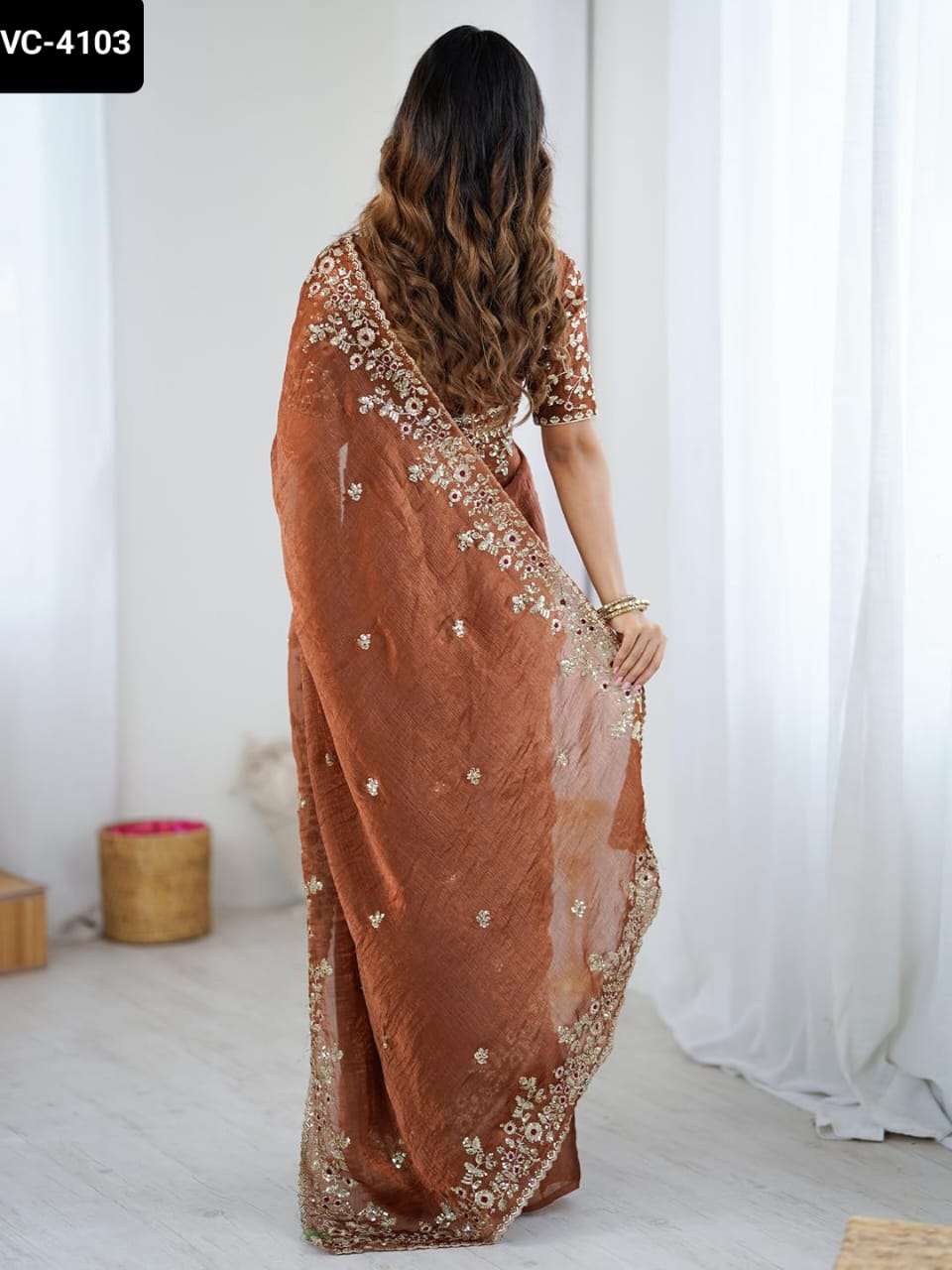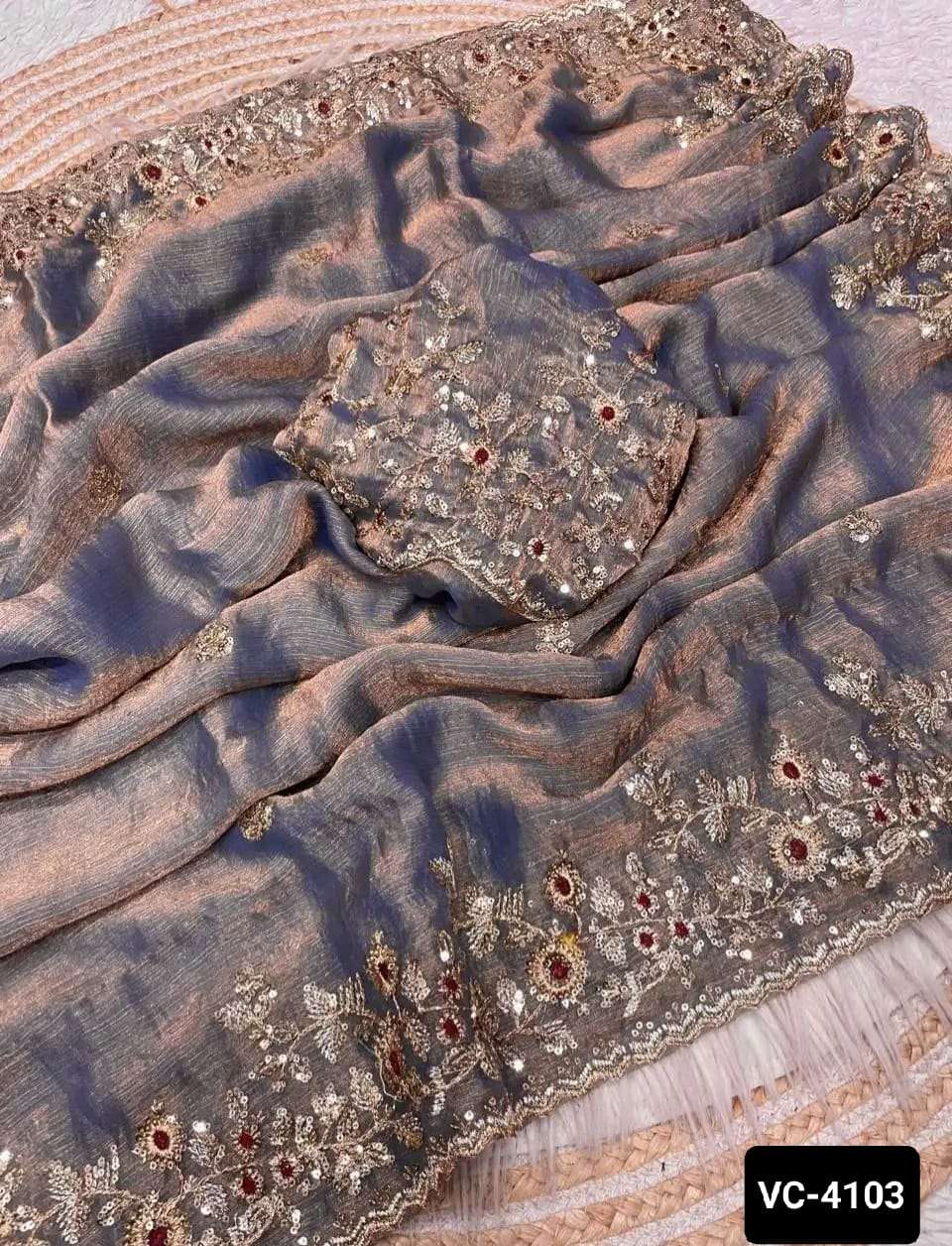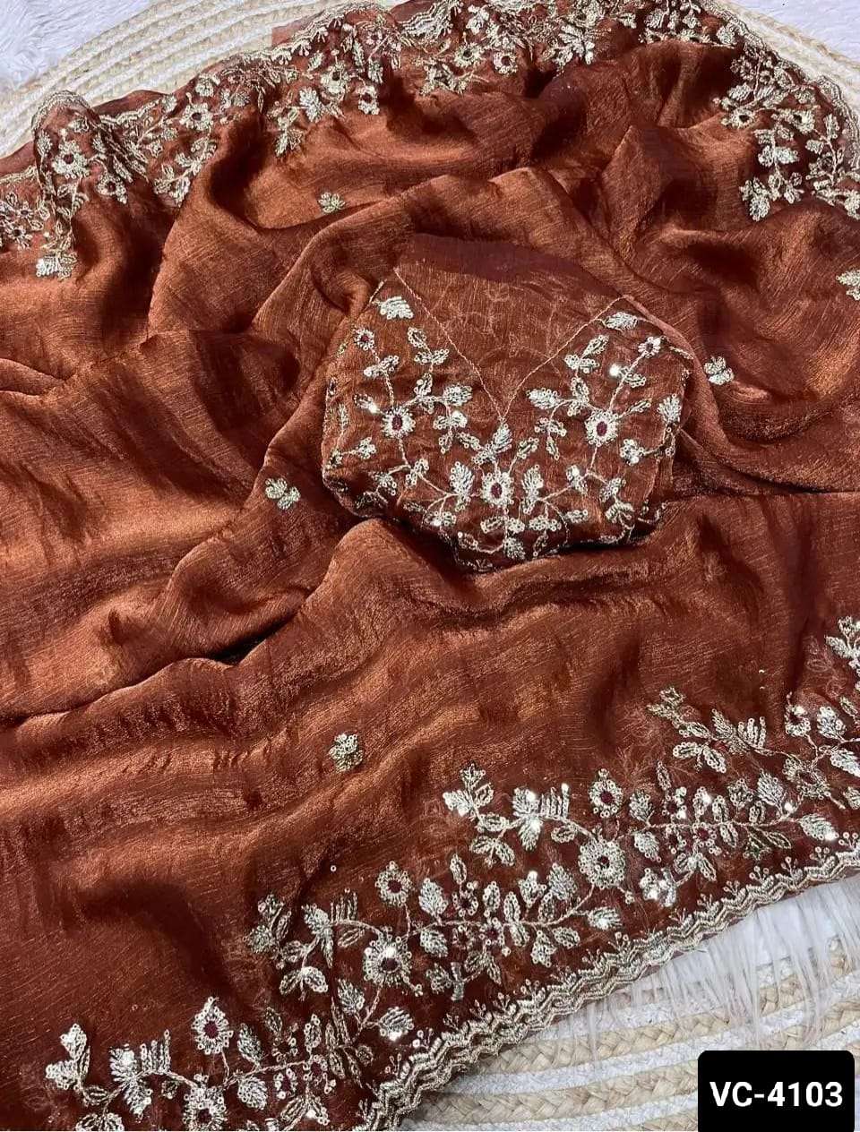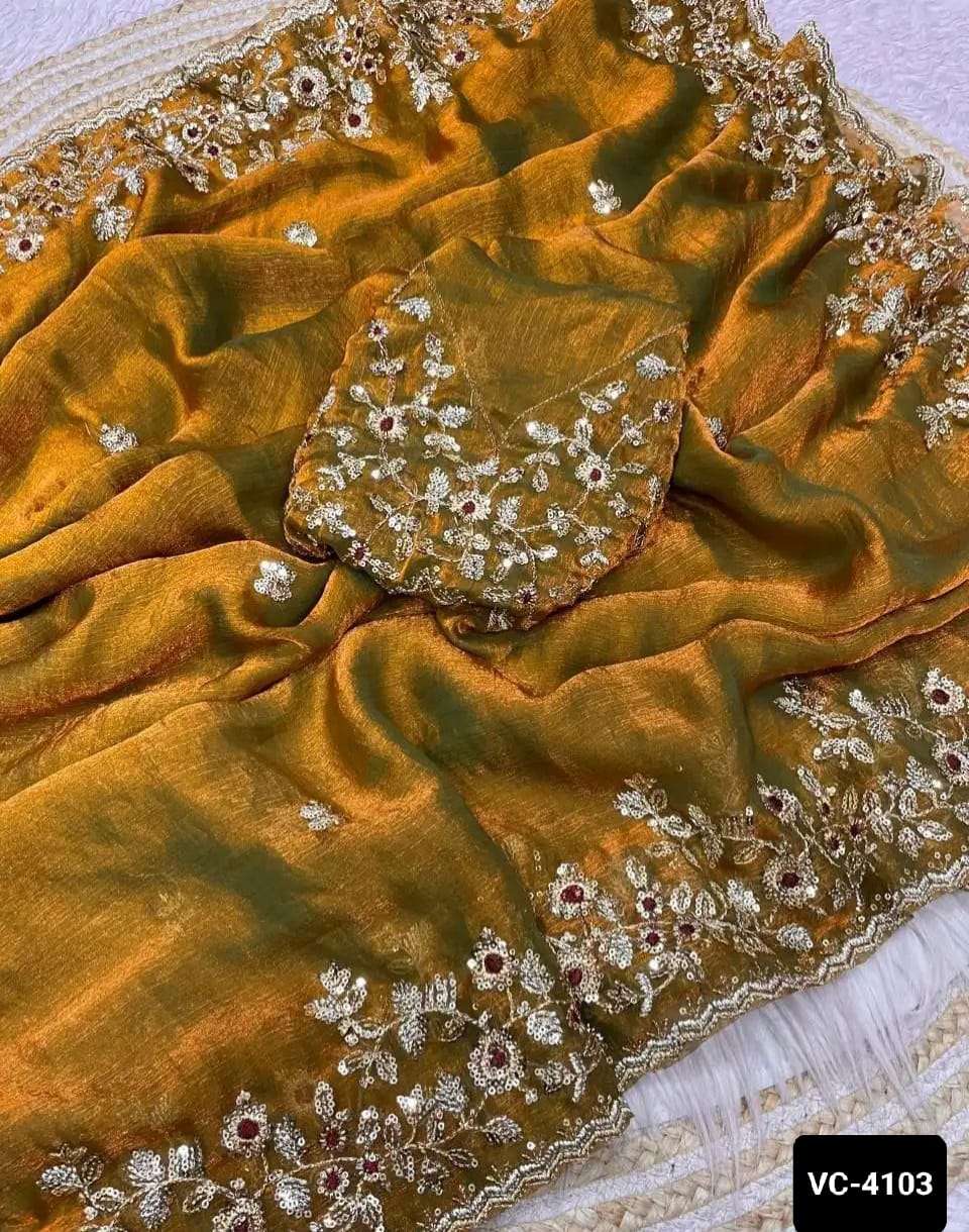 SAREES :Heavy soft fandy chiffon silk fabric with c- pallu zari and sequence work cut work border on sarees