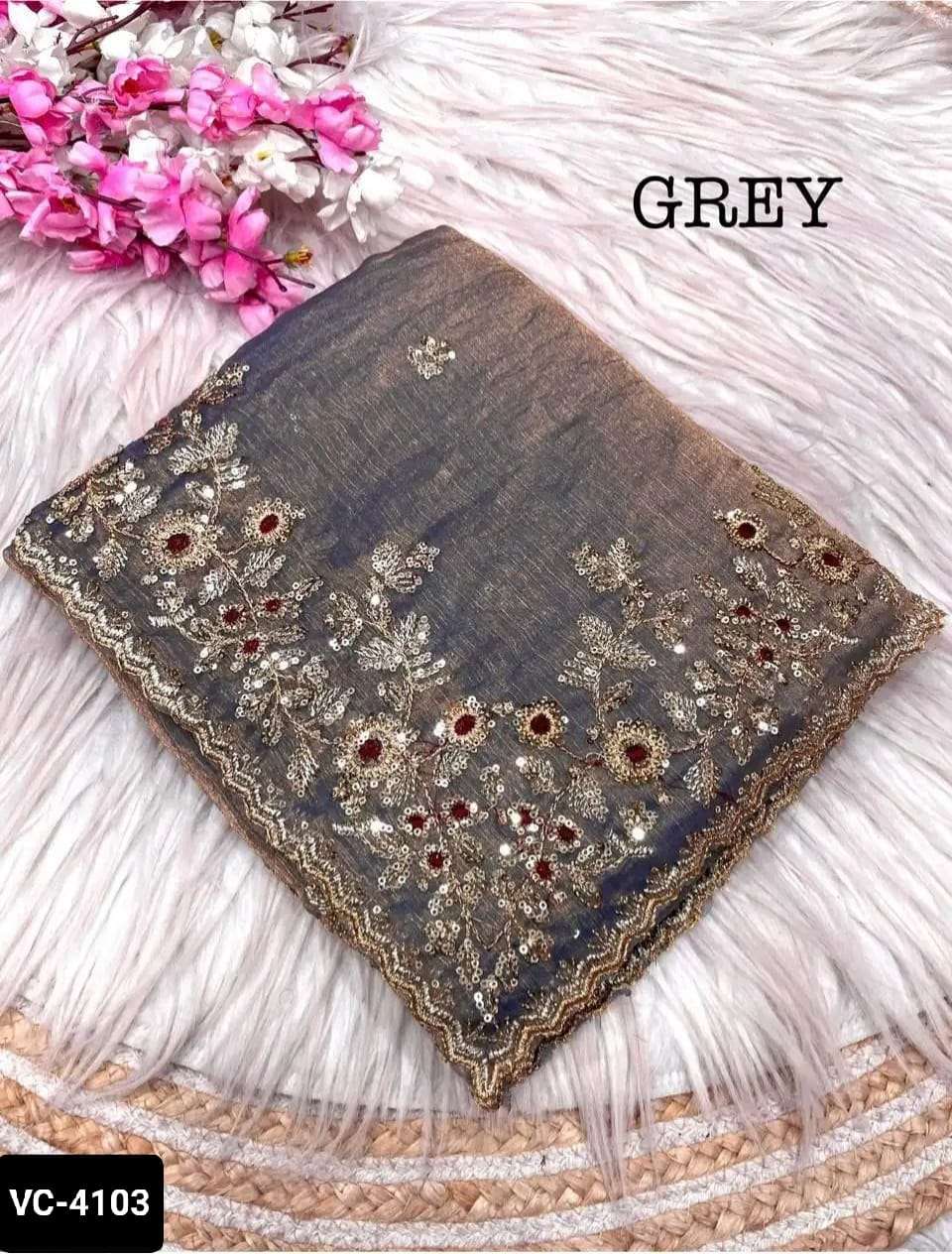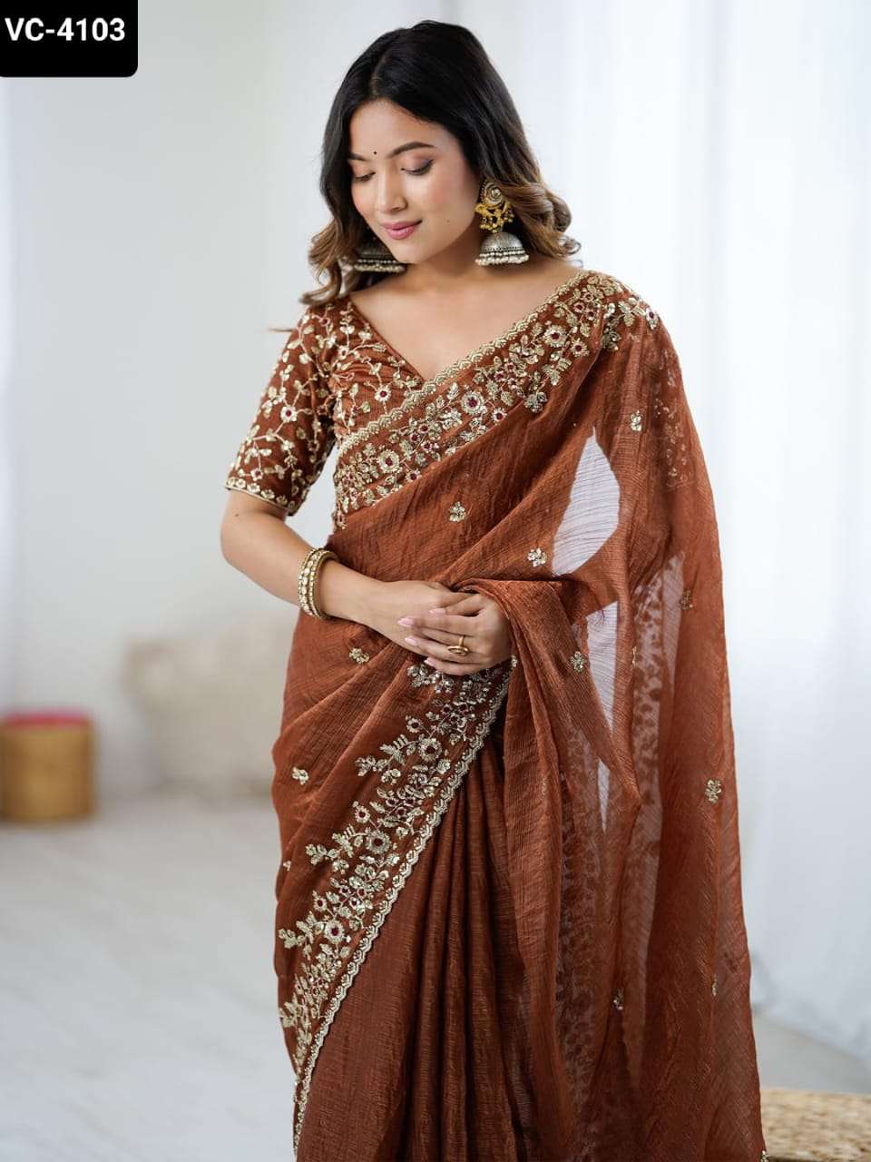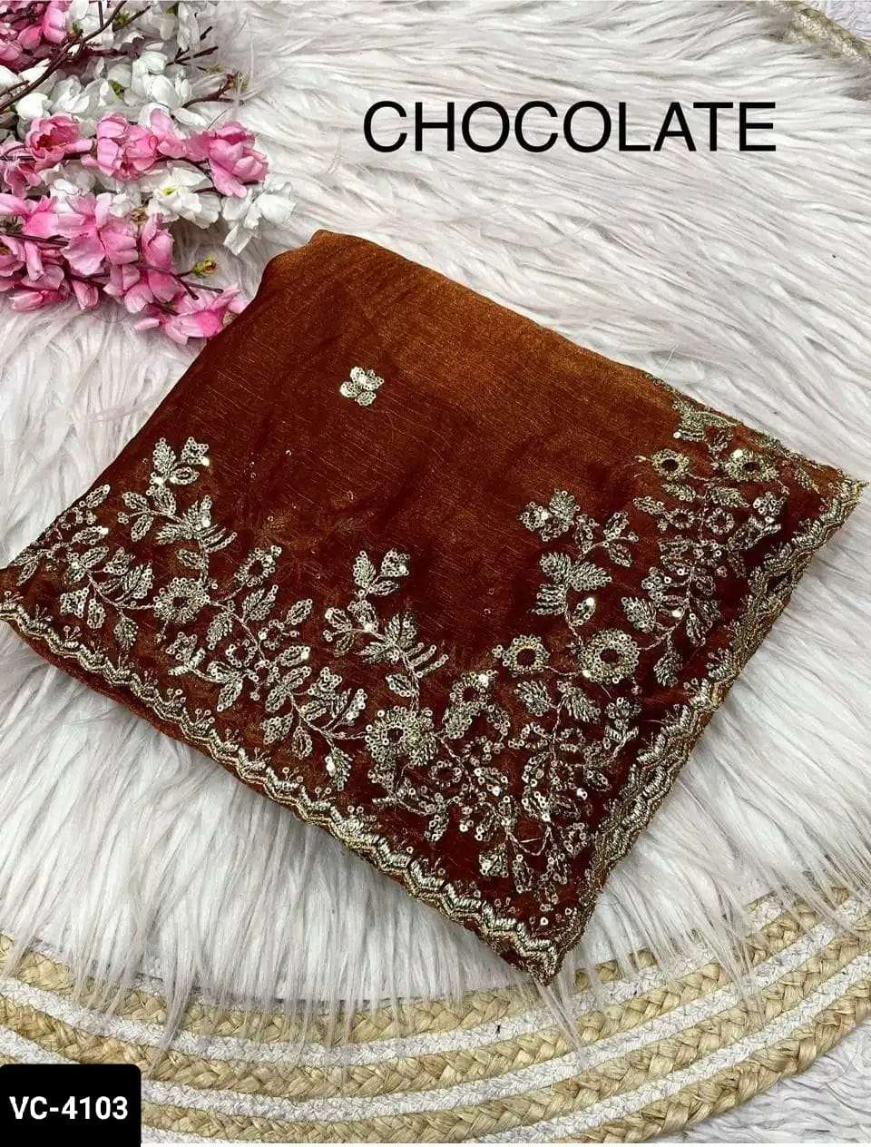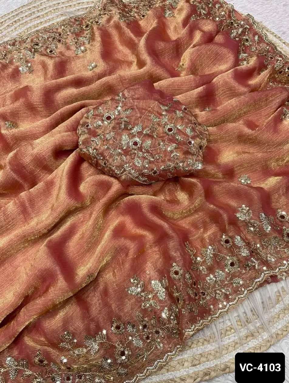 SAREES :Heavy soft fandy chiffon silk fabric with c- pallu zari and sequence work cut work border on sarees