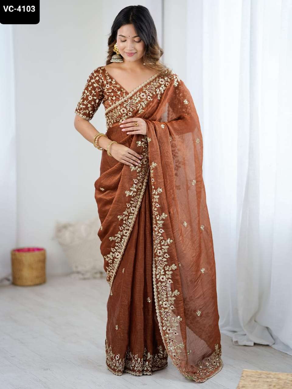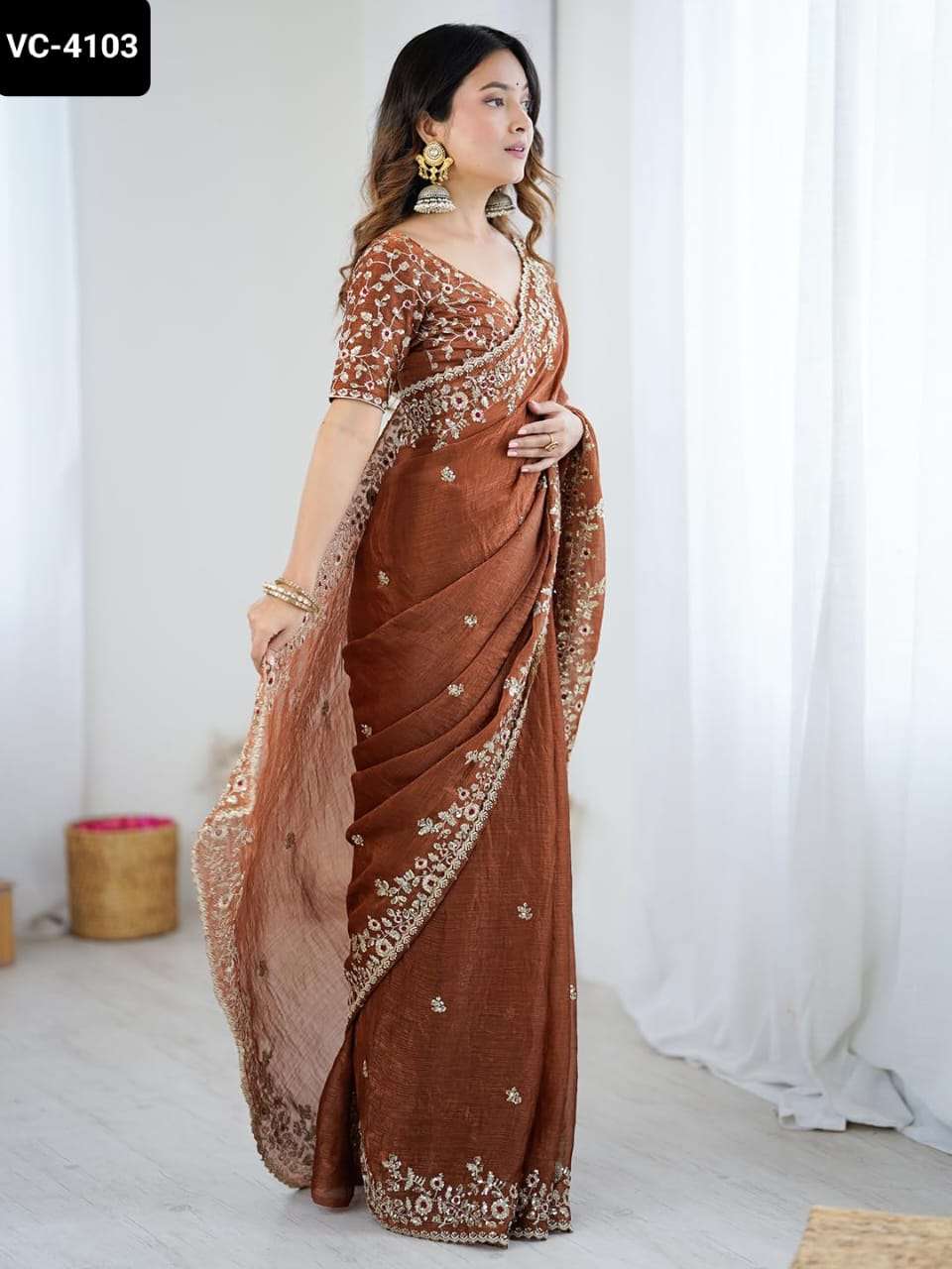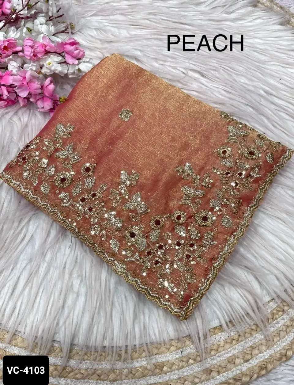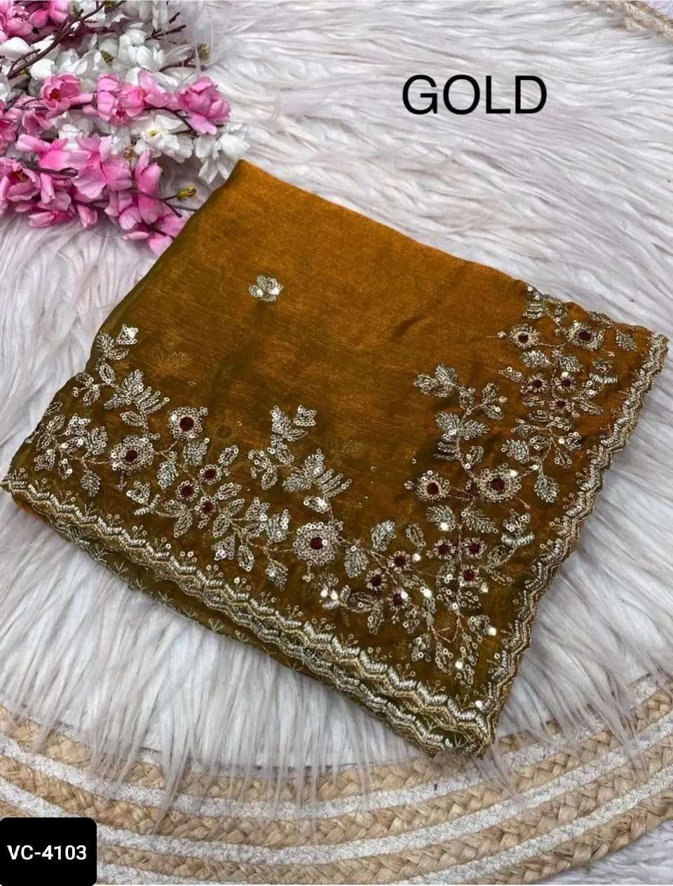 SAREES :Heavy soft fandy chiffon silk fabric with c- pallu zari and sequence work cut work border on sarees