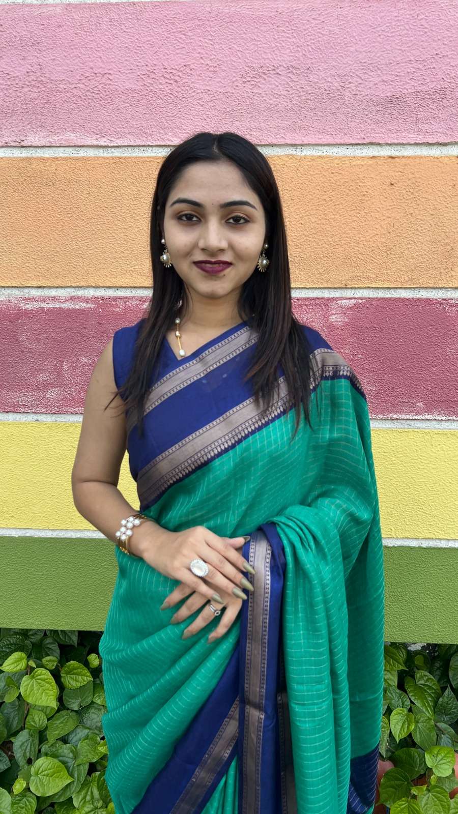 Marshmallow Saree with Mill Prints all over and a rich Zari Border
