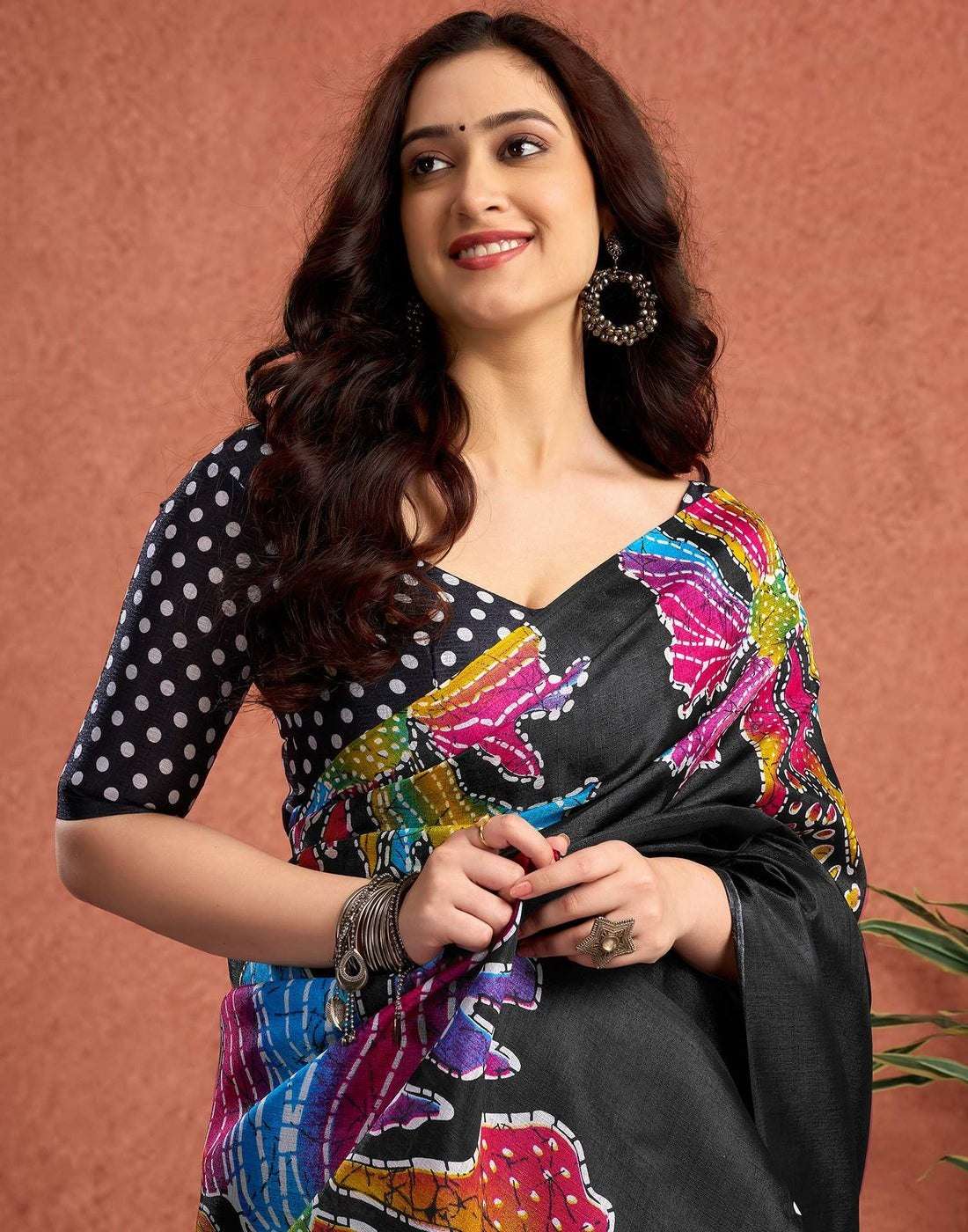Saree work : Mill Print Border with Ajrakh Rich Pallu With Contrast Blouse