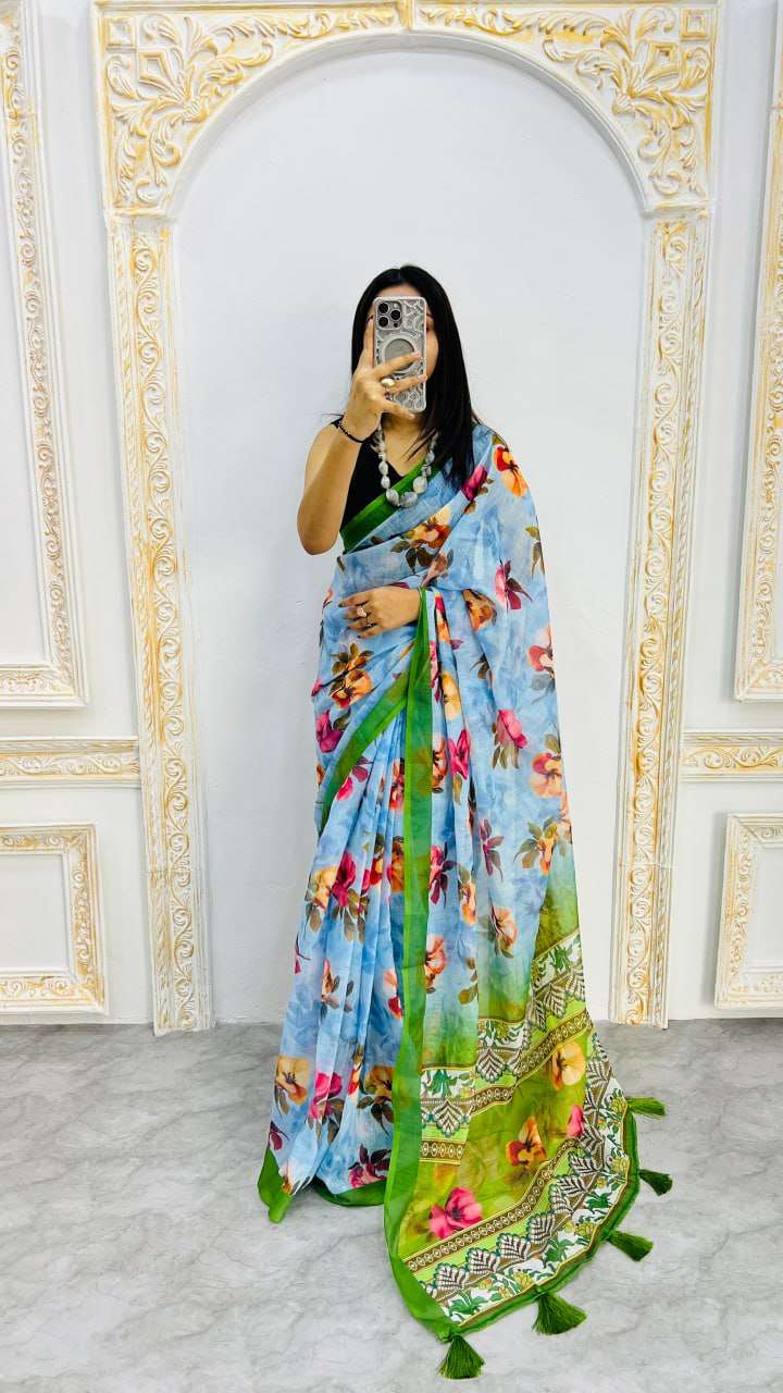 Super Hit Sanvi Fashion Design Elegant Lilan Cotton Digital Print Saree*