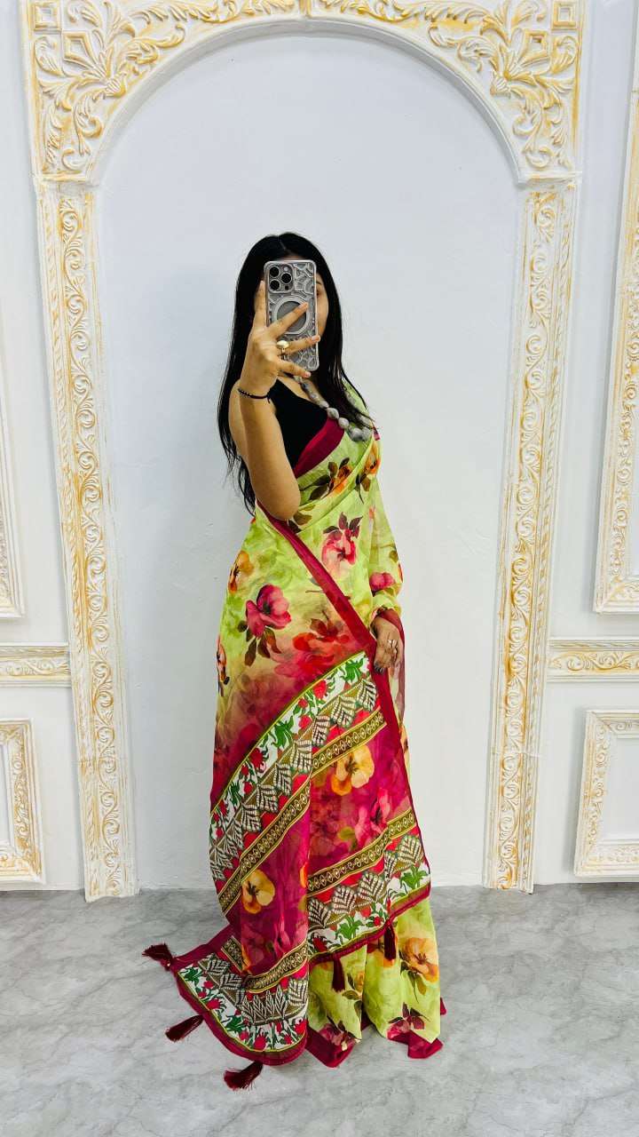 Work: Digital Print with Elegant Tassels on Pallu