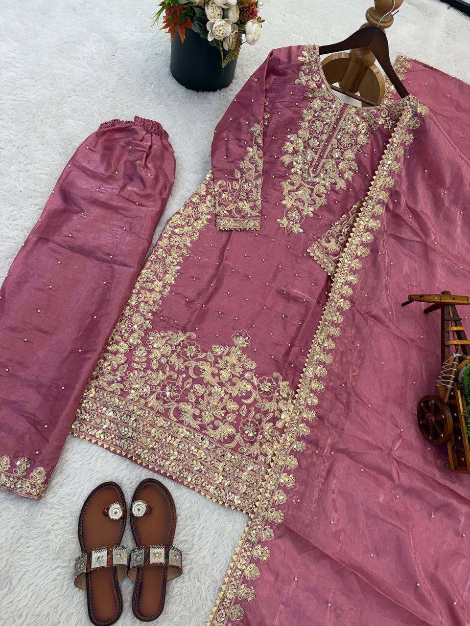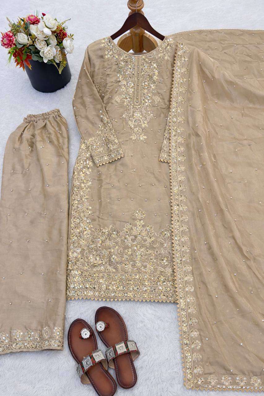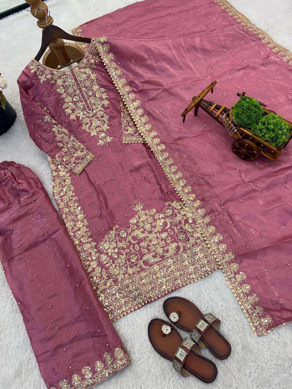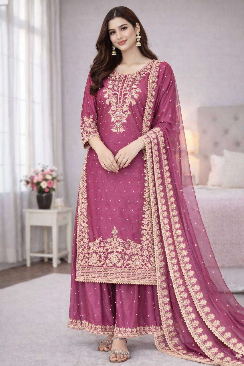 *Presenting New Designer Collection In GMY SILK With Heavy Embroidery Coding Sequence Work Top-Bottom And Dupatta Set Fully Stitched Ready To Wear