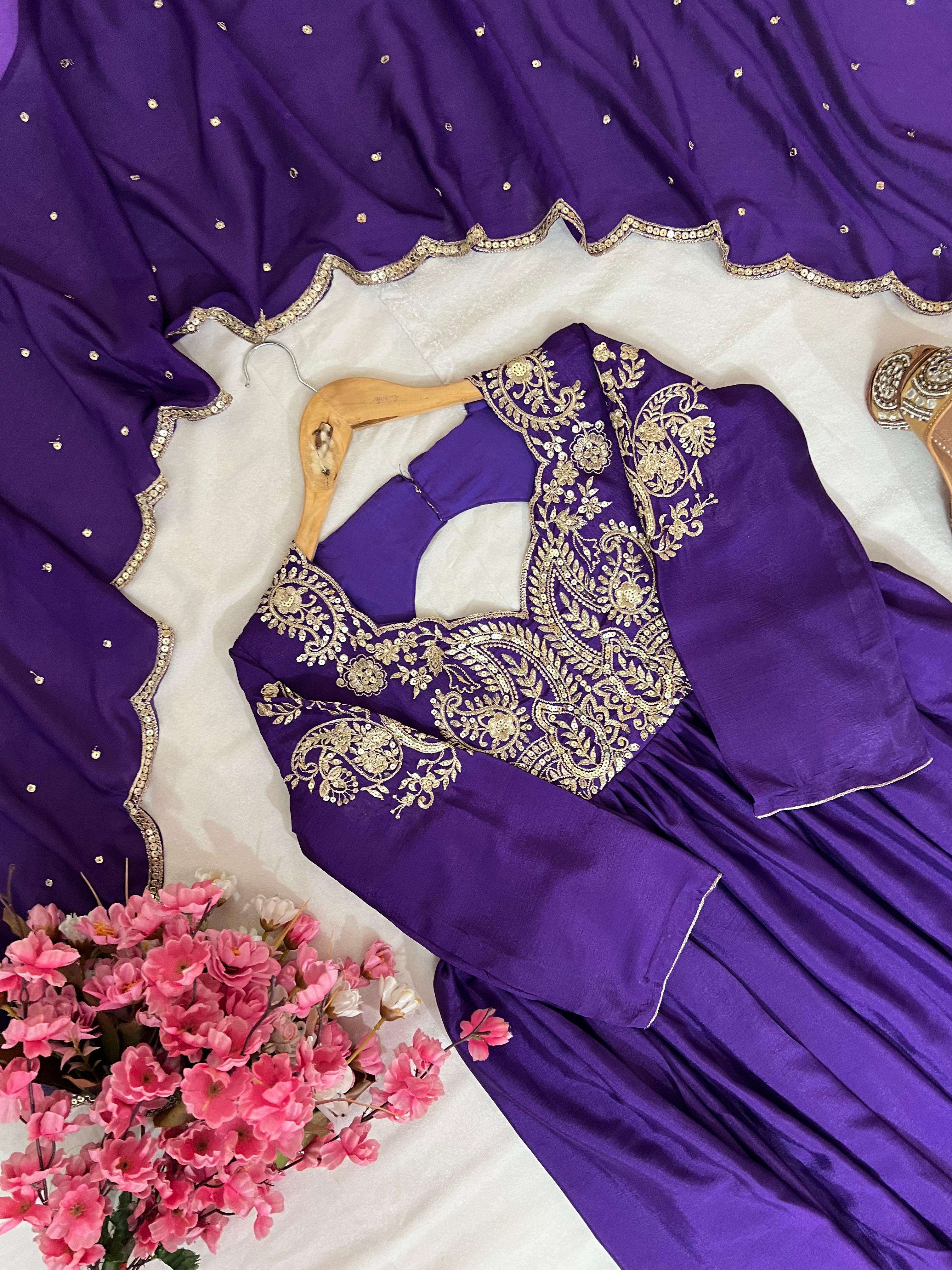 Work : zari, Thread & 5mm sequins embroidery work in front & back side as well
