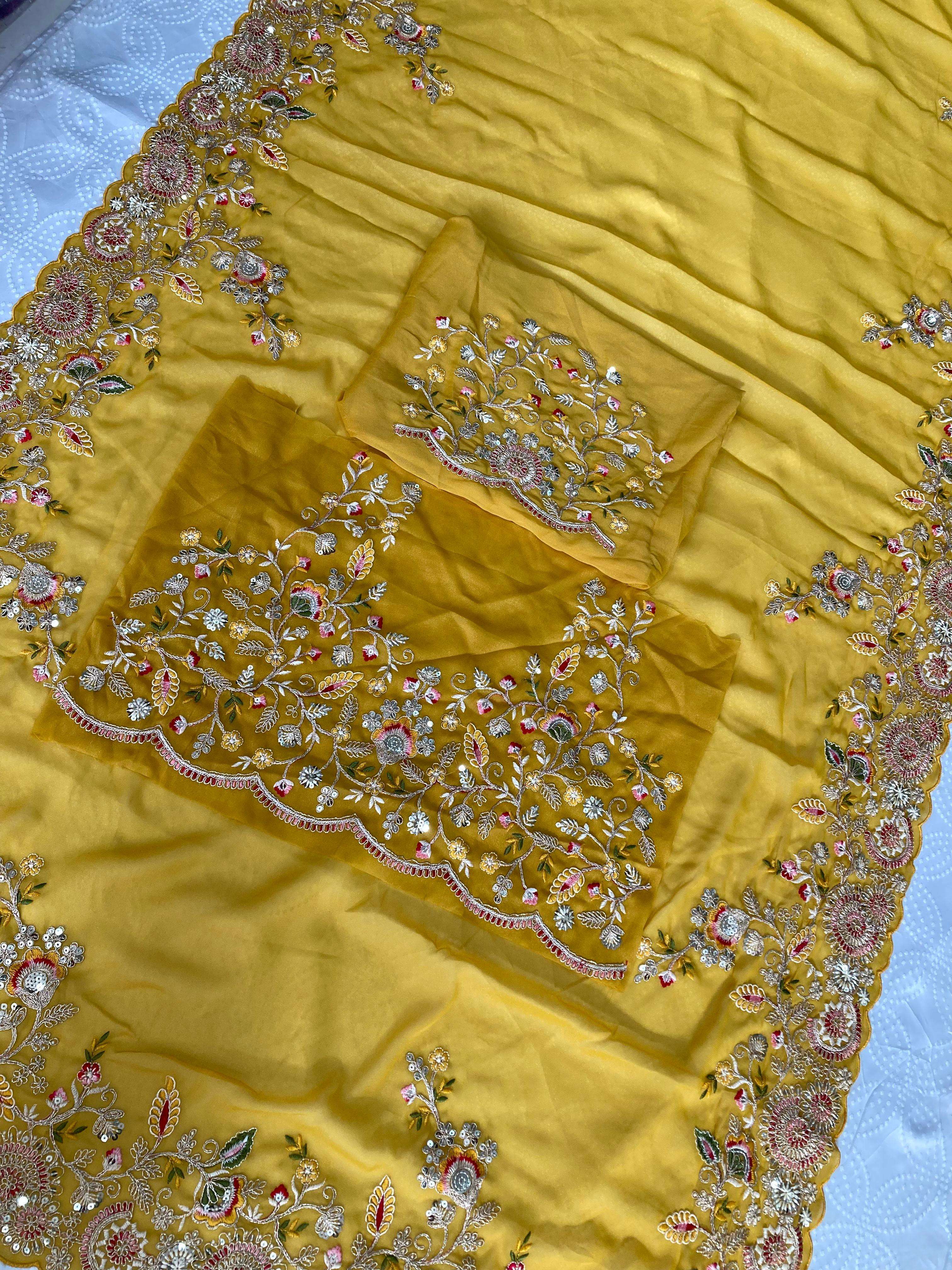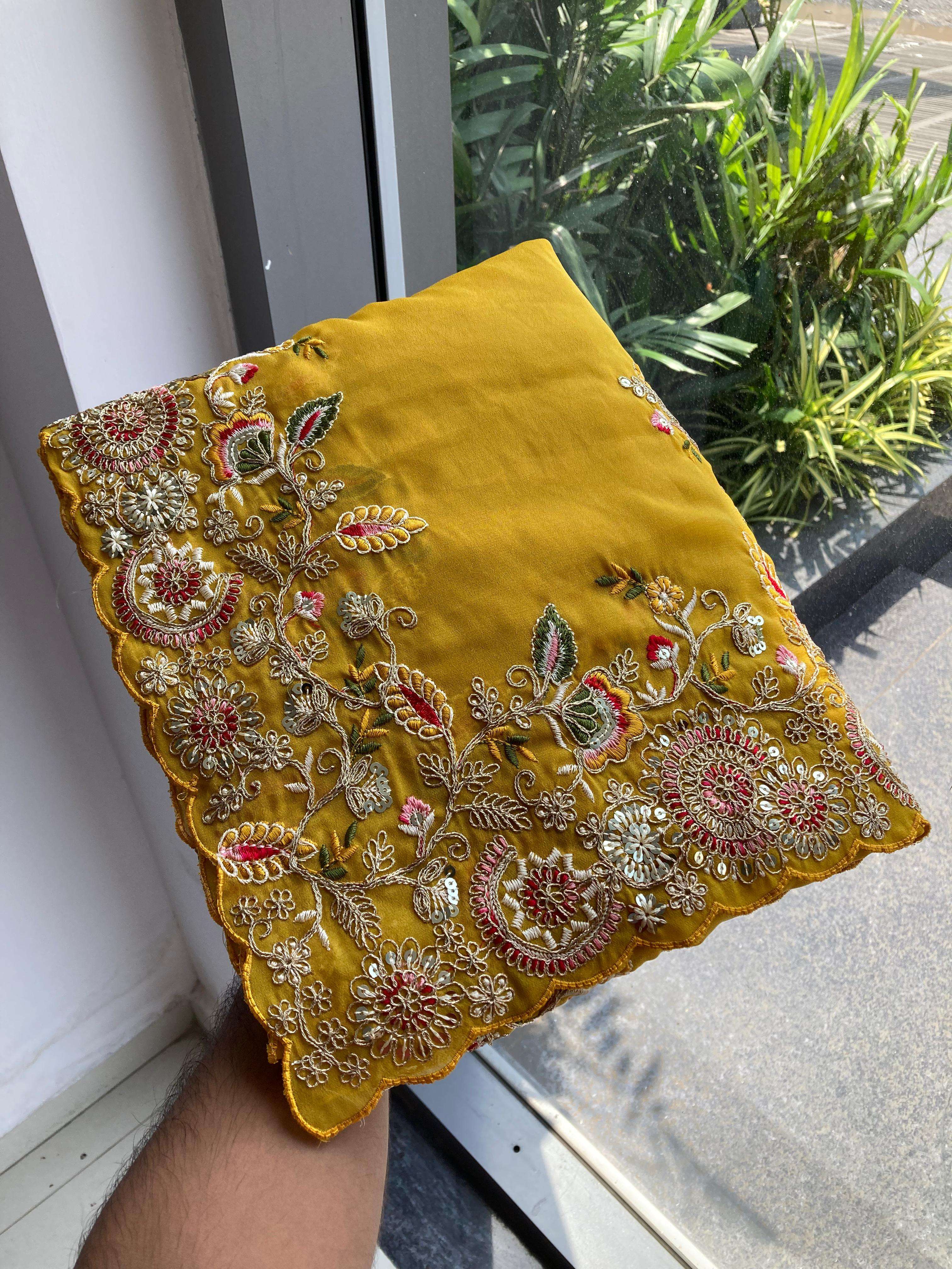 Looking some one for this same padding colour beautiful Saree for wedding on premium Soft Star Georgette fabric with Embroidery cut Work aarco Border With Running Work blouse Peice.