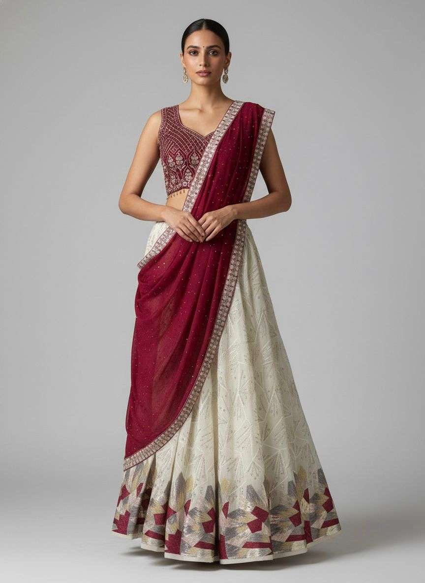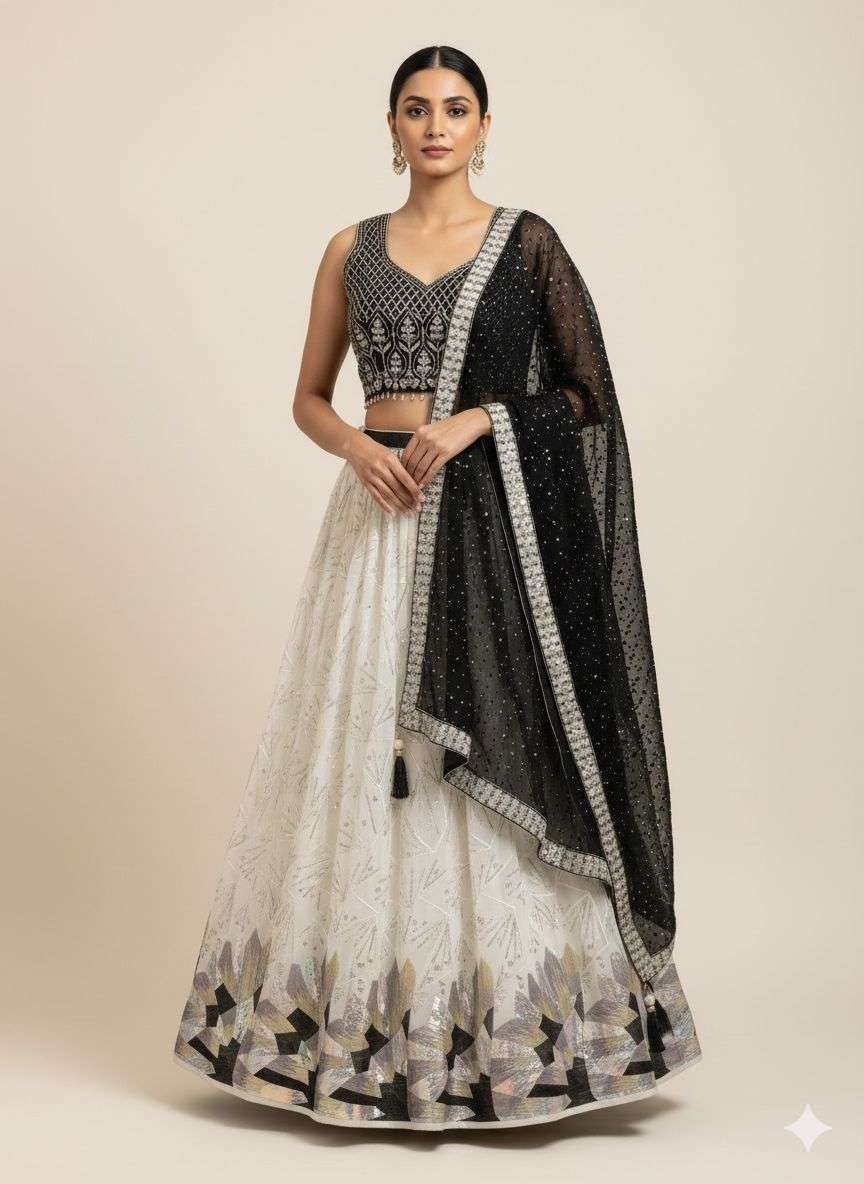| Catalogue: | Shri Balaji Emporium White Contrast Georgette Lehenga with Embroidery Choli and 6 colors Sequence Work |