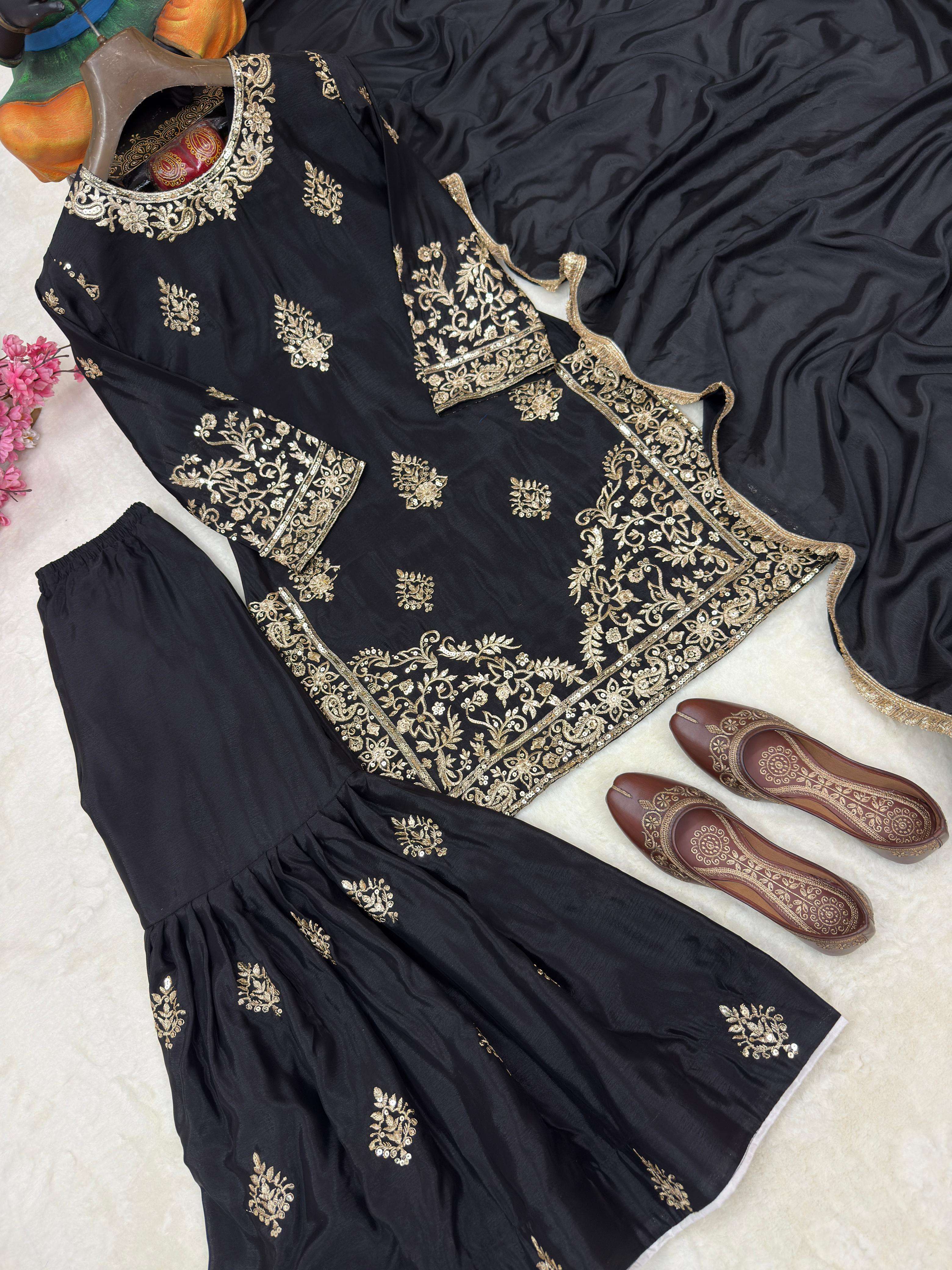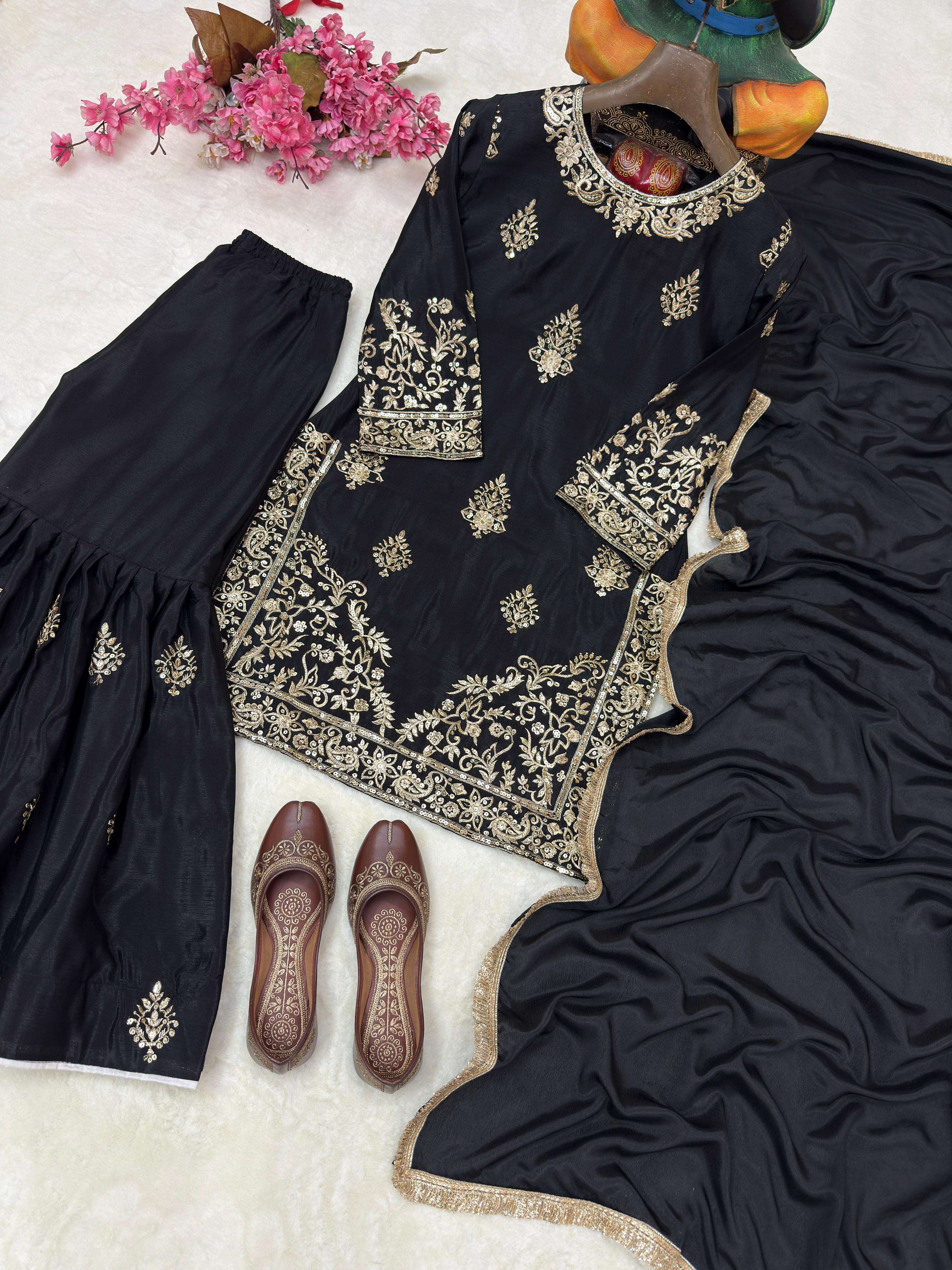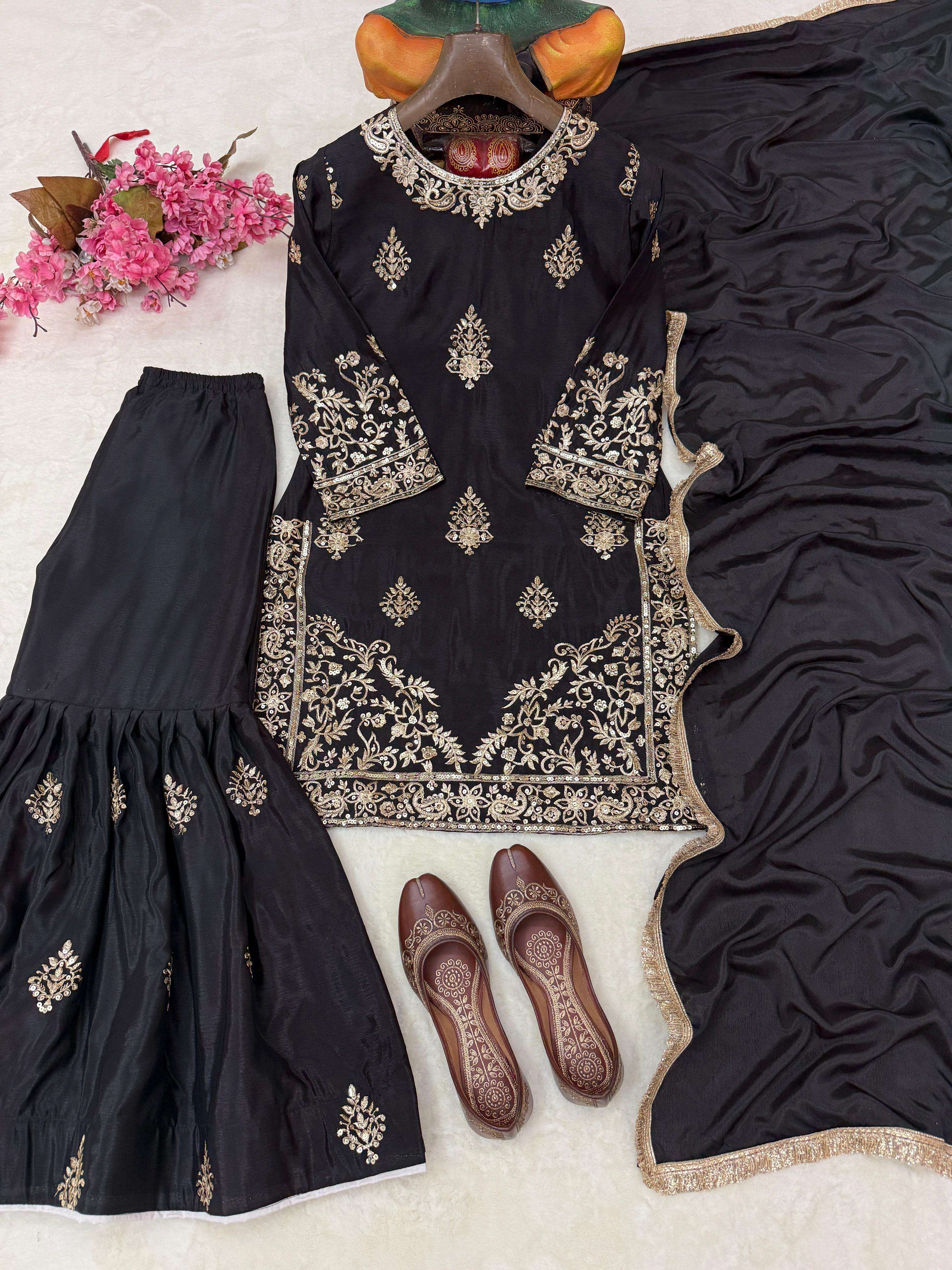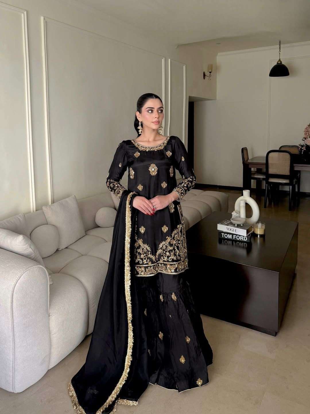 | Catalogue: | Shri Balaji EmporiumLC 1465 Beautiful Chinon Silk Pakistani Sharara Suit |