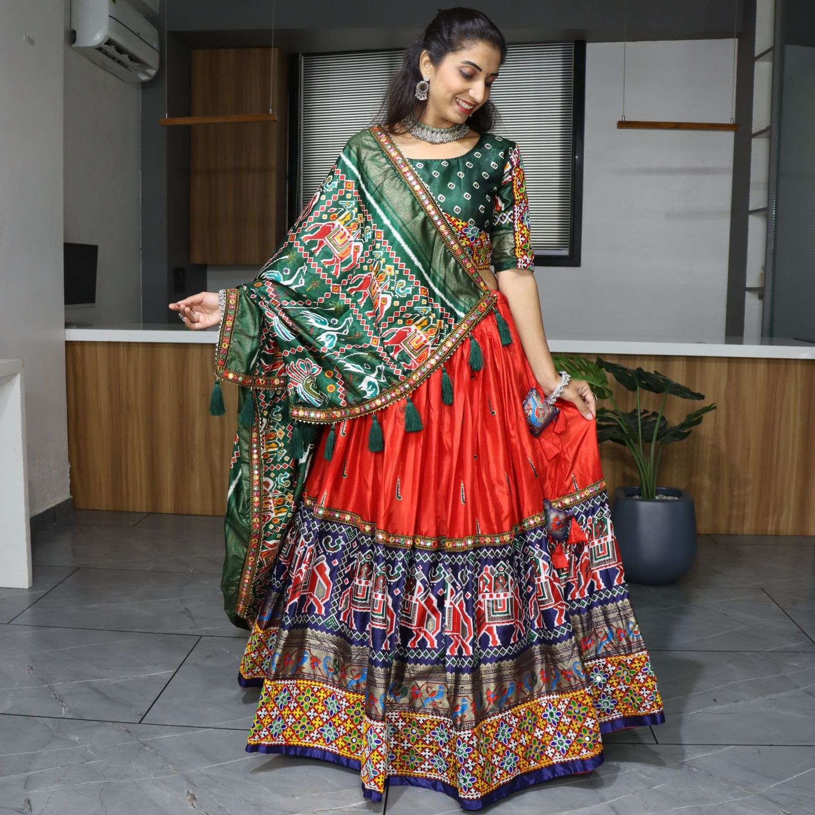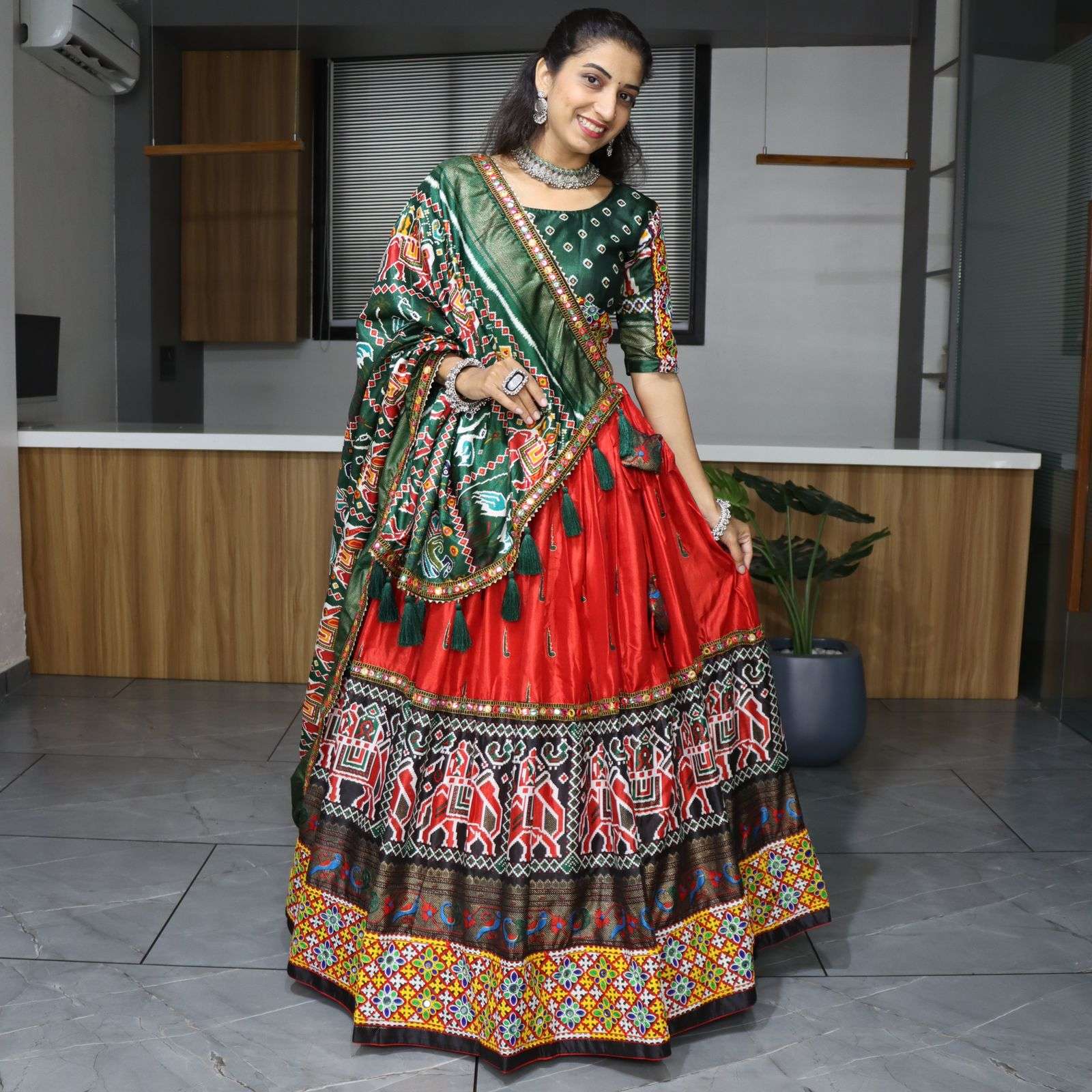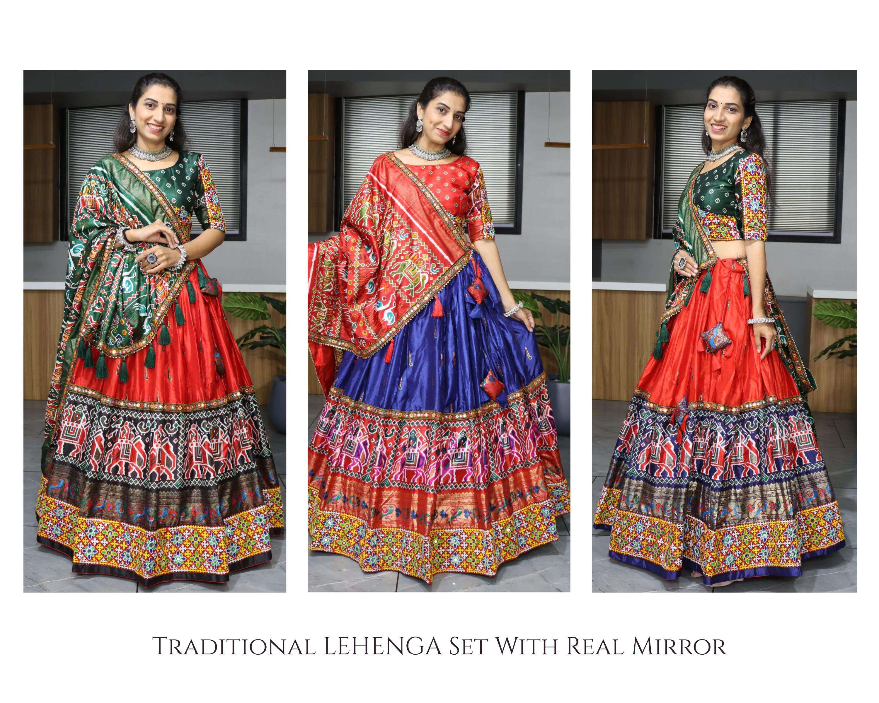 LEHENGA : Dola Silk Patola and paithni Print with Mirror Work Gamthi Border and Paper Mirror on Daaman ||