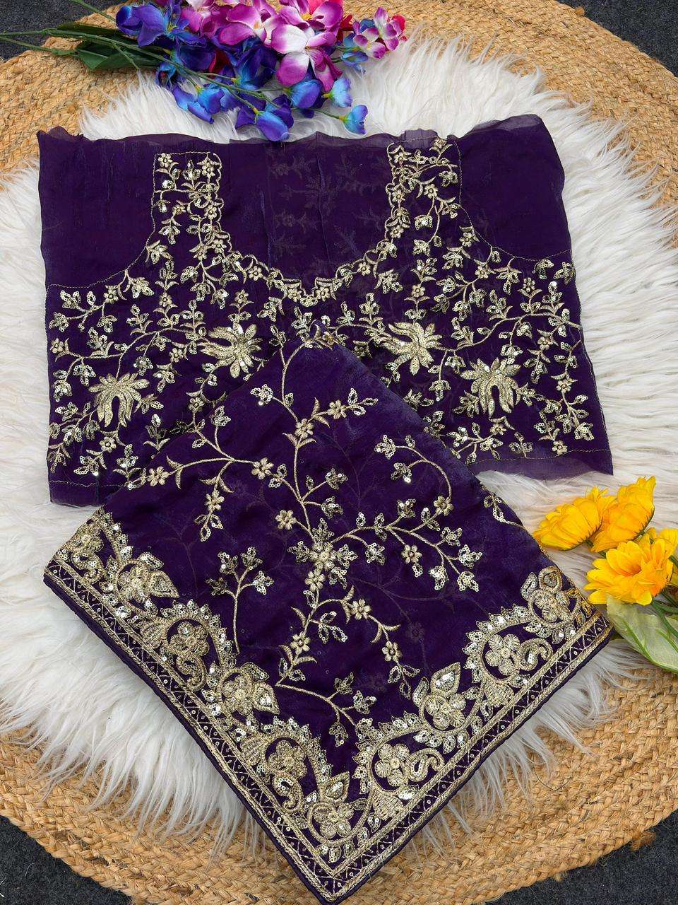 BLOUSE : PURE SOFT FANDY SATIN SILK FABRIC ON SEQUENCE AND ZARI WORK ON BLOUSE