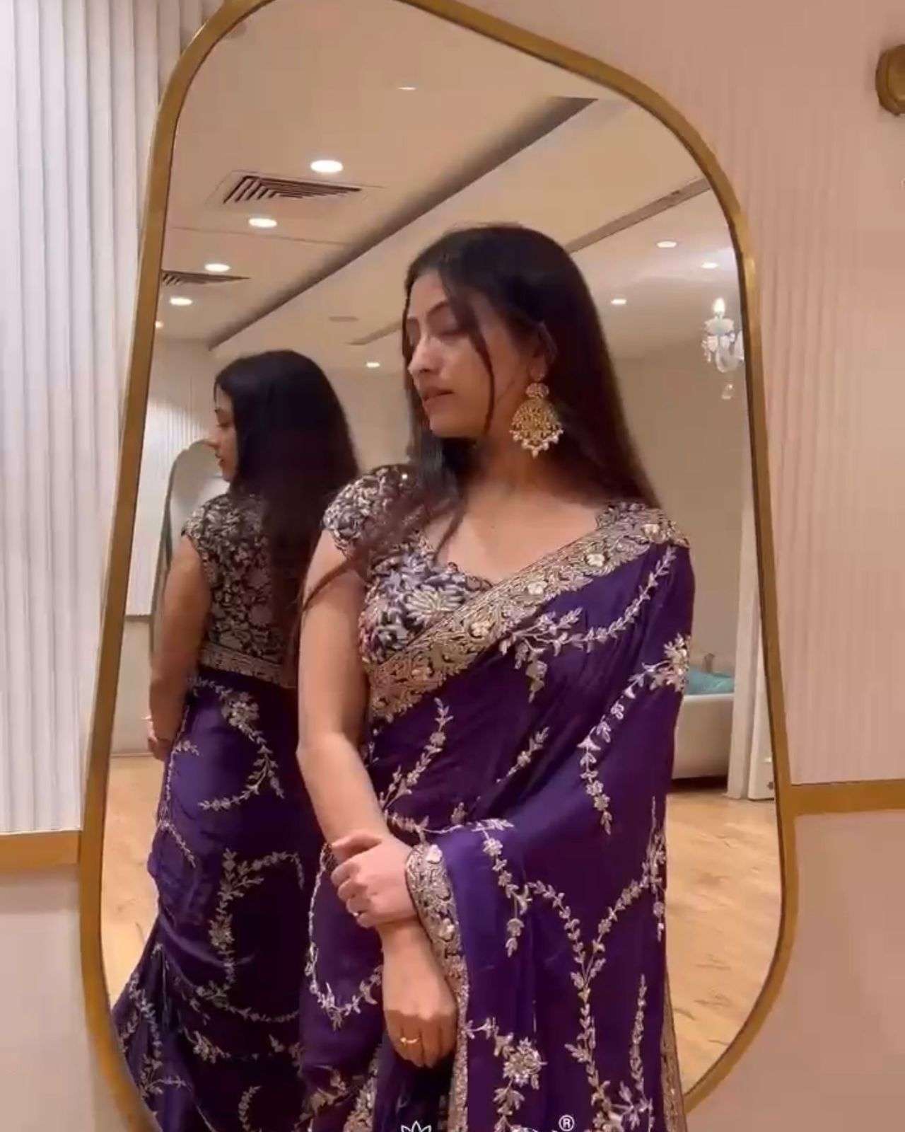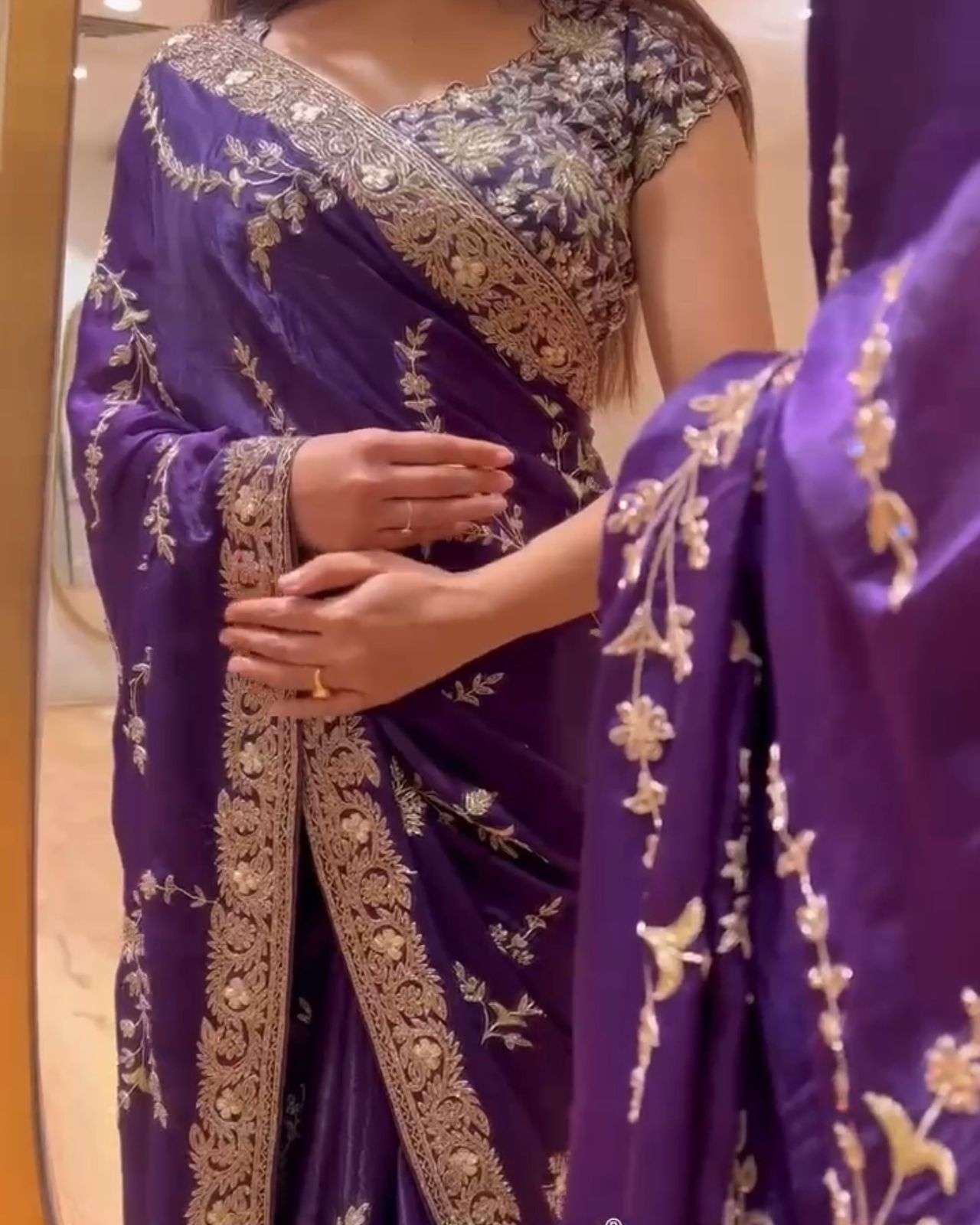 | Work : | embroidered,sequence work,zari border |