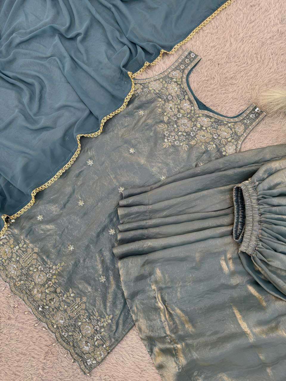 | Catalogue: | SHRI BALAJI LAUNCHES DESIGNER VILLA DV 25270 BEAUTIFUL SEQUENCE EMBROIDERED FENDI SILK SUIT |