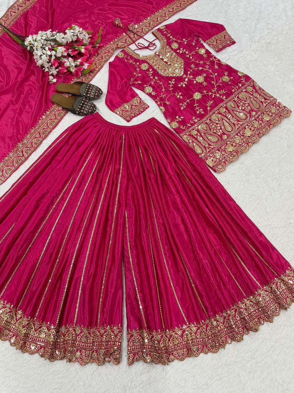 Sharara Palazzo: Heavy Chinnon Silk With Embroidery Sequence Work..