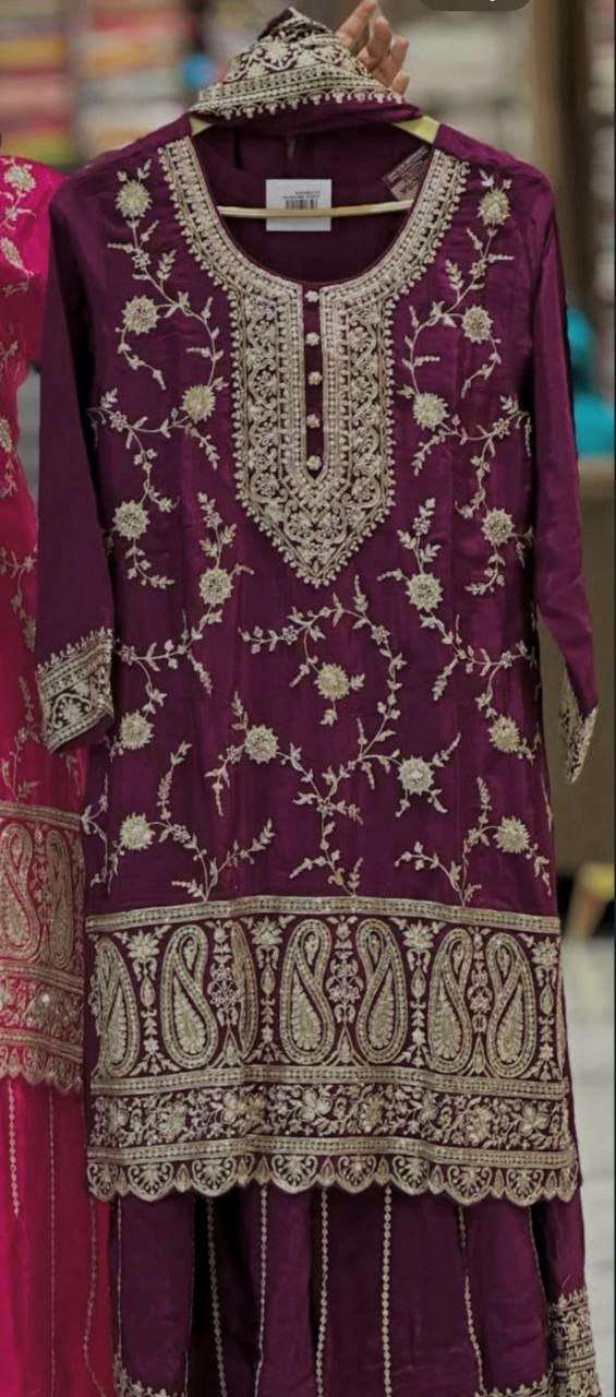 | Catalogue: | SHRI BALAJI LAUNCHES DESIGNER VILLA DV 25280 READY TO WEAR EMBROIDERED CHINON SILK SUIT |